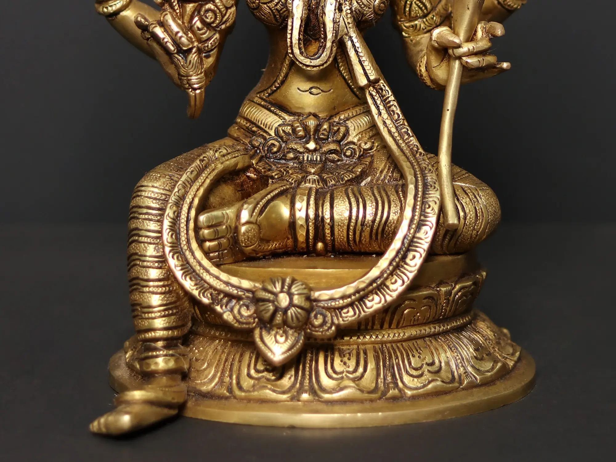 Ardhachandradharini (possessing the crescent moon) - Devi Tripurasundari is considered to be the epitome of beauty in its finest manifestation! Coming from the family of 10 Goddesses of supreme wisdom (Dasha Mahavidyas), she’s the beauty of three cities as informed by her name, symbolizing the three loka basically - Swarga, Prithvi, and Patala. Made in selective brass - she sits in the regally in a Lalitasana as Rajarajeshwari holding a noose, goad, sugarcane staff, and padma. She who emerged from the thor eye of Lord Shiva is the ultimate completion of reality known to her devotees.