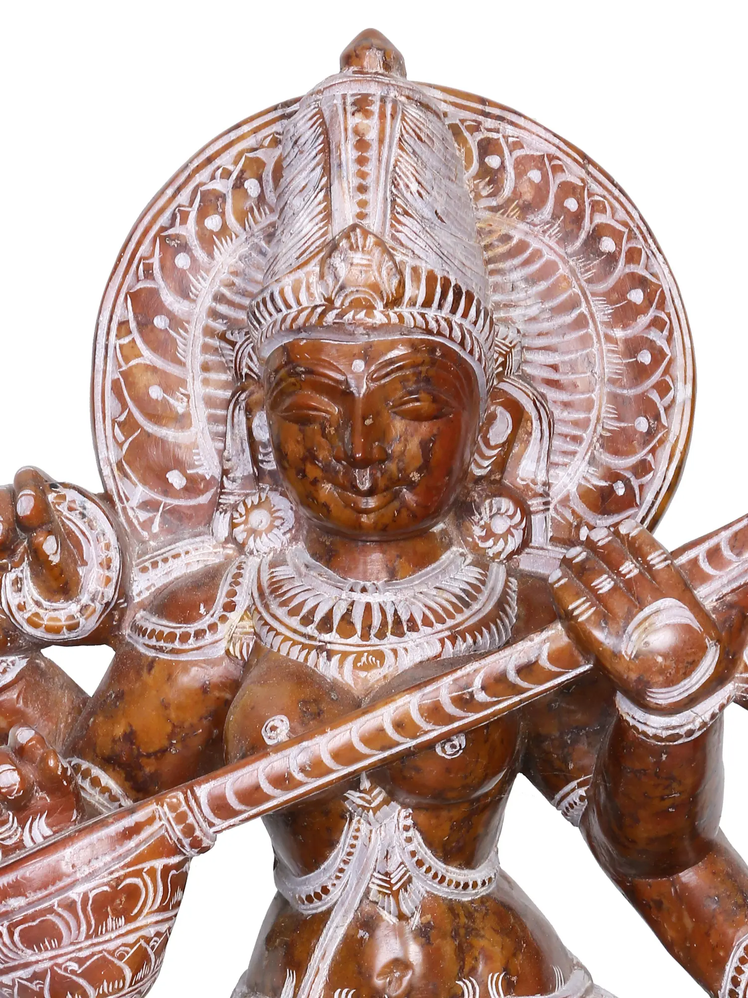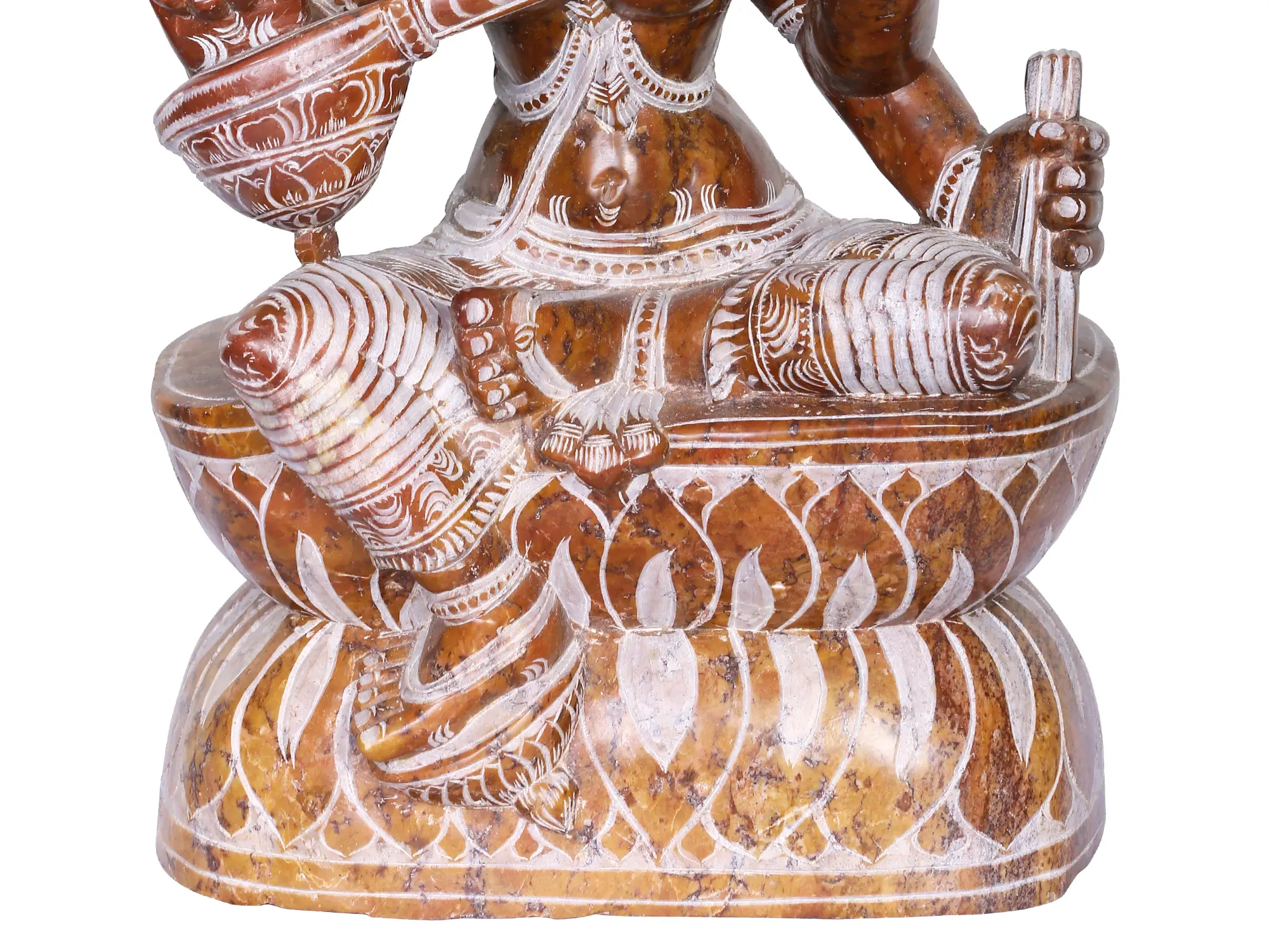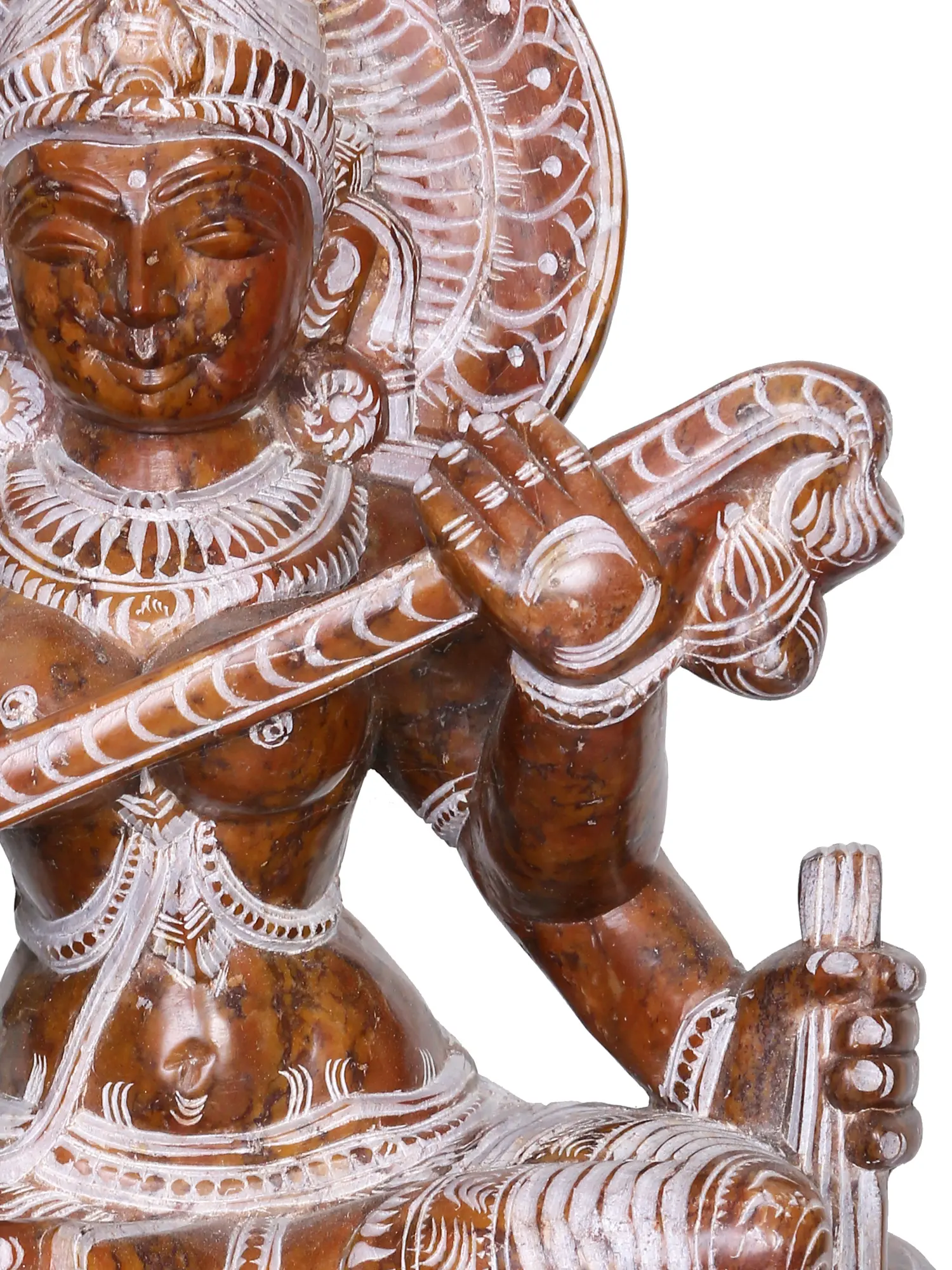 8" Goddess Saraswati Standing with Veena | Orissa Stone Statue | Hand Carved