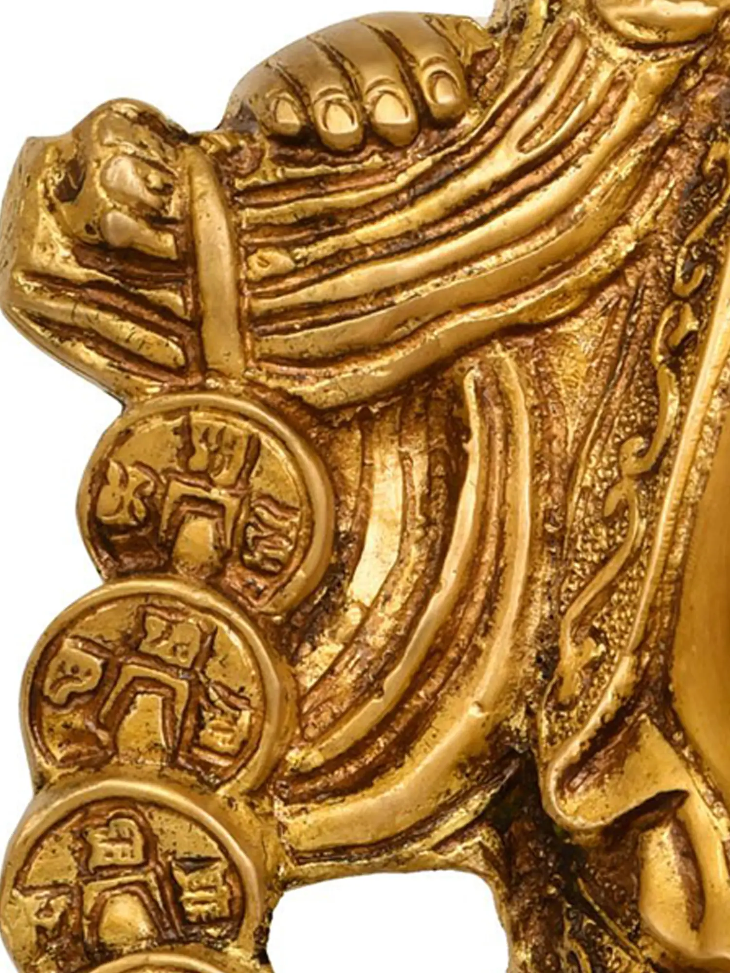 Handmade with precision and care in India, this brass statue is a masterpiece of traditional craftsmanship. The warm, lustrous glow of the brass is a perfect medium to convey the radiant spirit of the Laughing Buddha. The intricate detailing on the necklace, the robes, and the very expression on his face showcases the deep cultural understanding and artistic heritage that informs its creation. This is not merely a decorative object, but a piece imbued with spiritual significance and a dedication to preserving time-honored artistic traditions. Whether placed in a home, office, or meditation space, it serves as a constant reminder to embrace life with a joyful heart and to welcome good fortune.