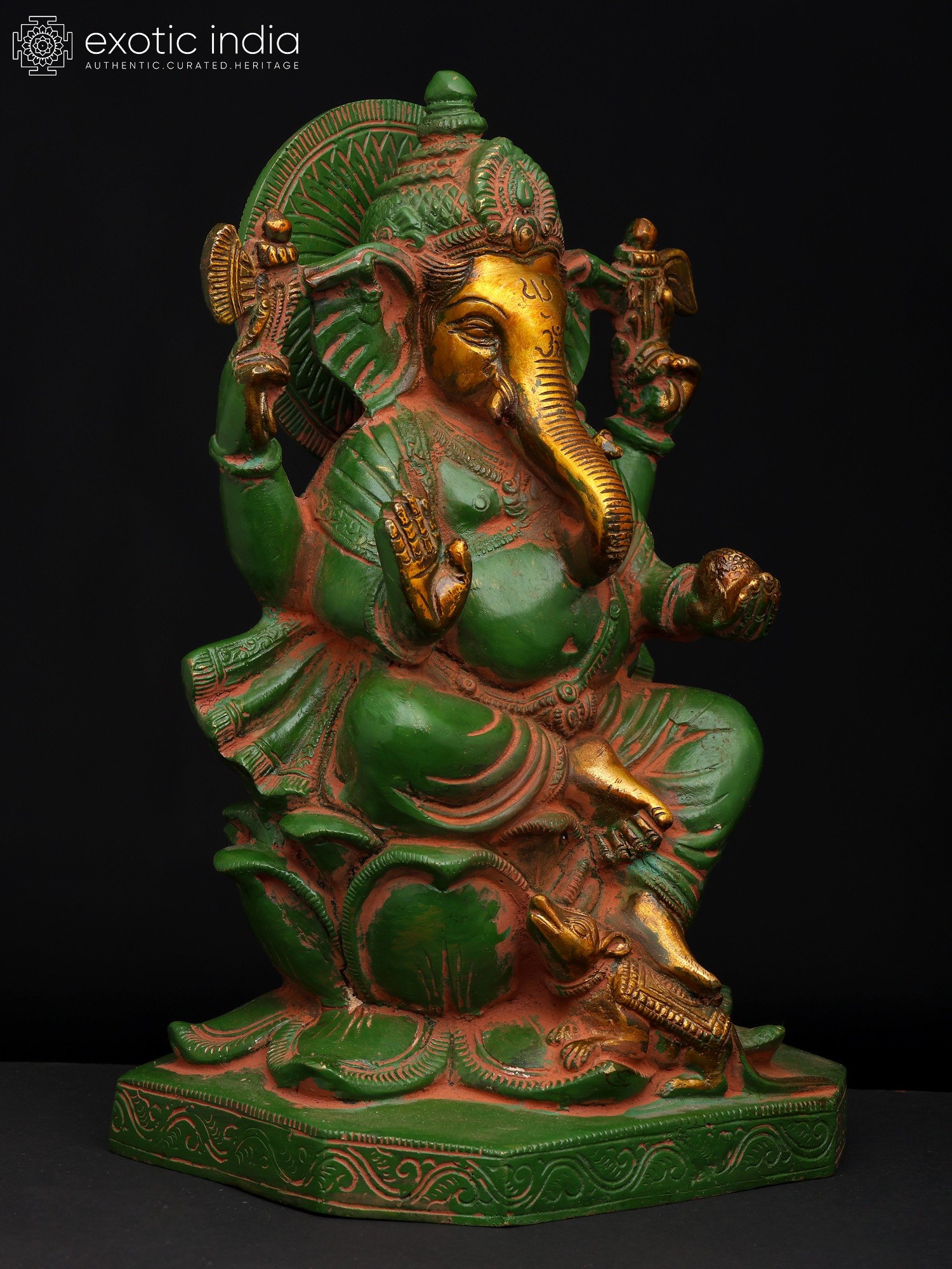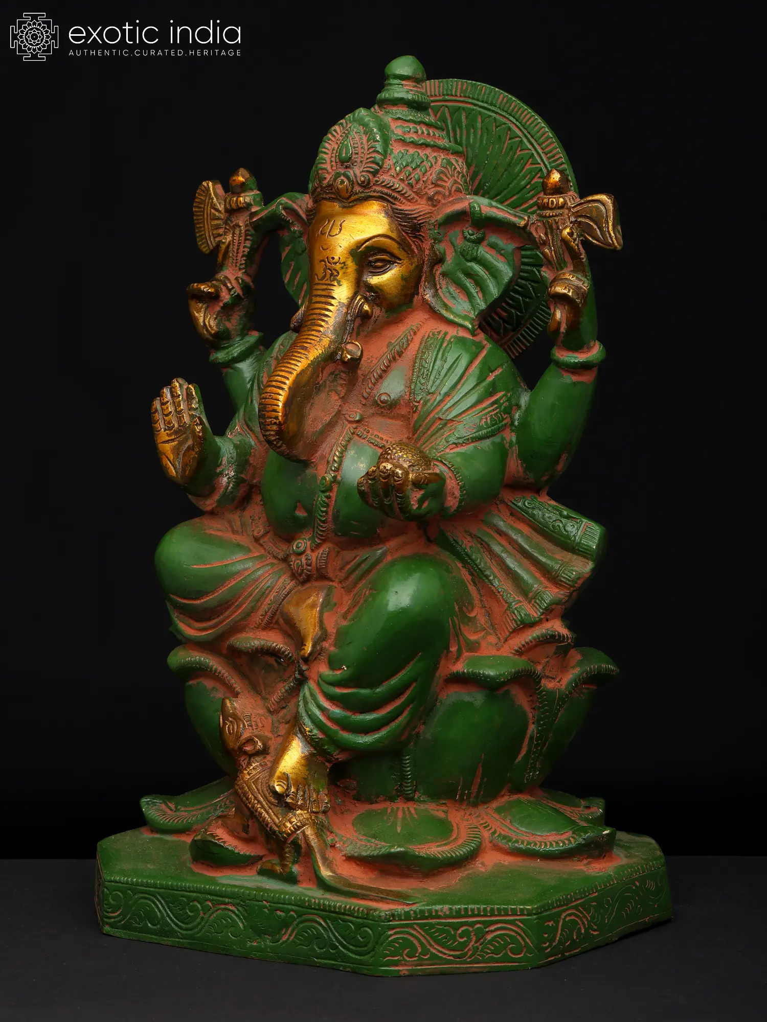 10" Kamalasana Ganesha In Brass | Handmade | Made In India