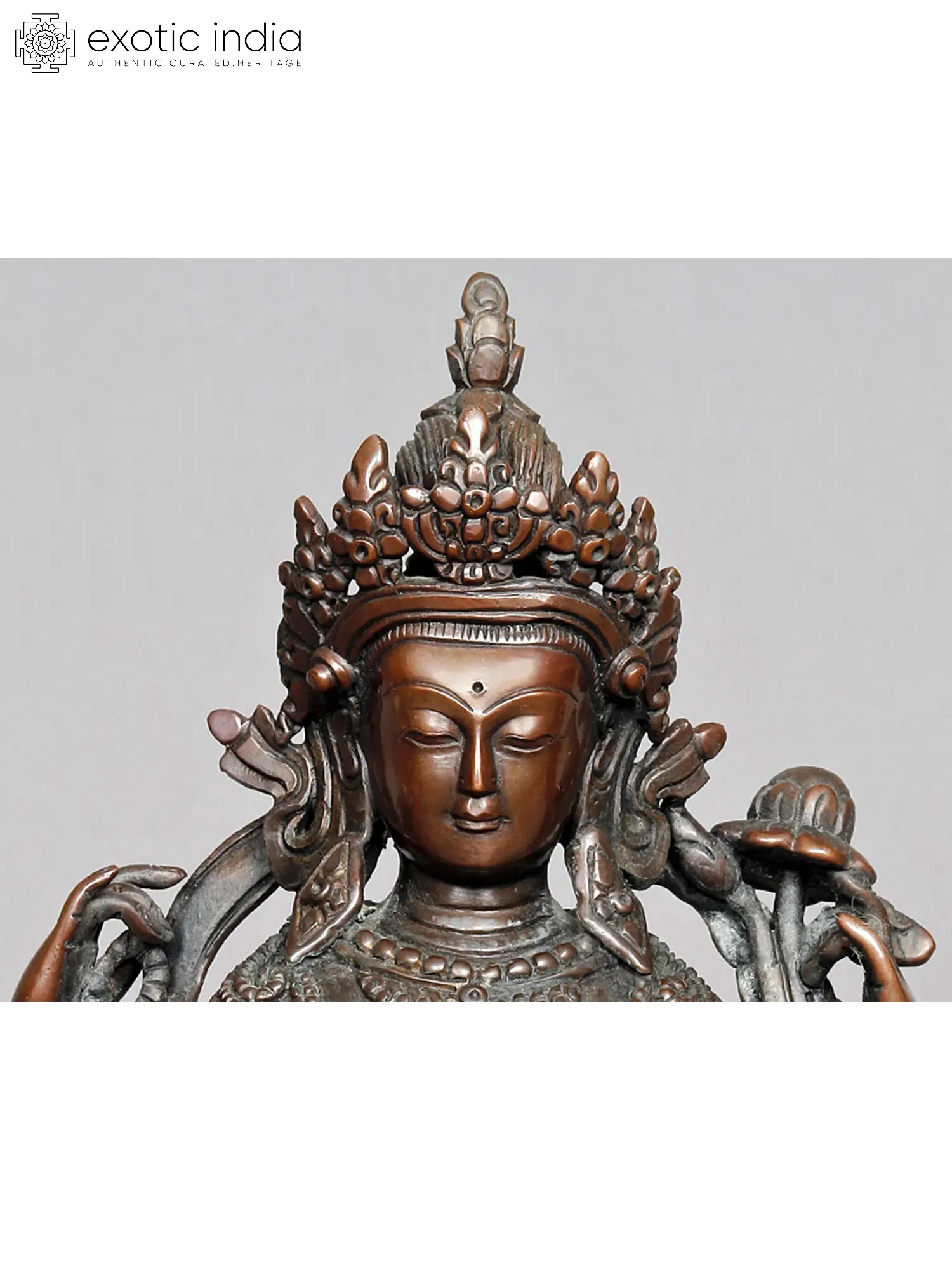 Kharchari is another form of Bodhisattva Avalokiteshvara. The Kharchari Statue is infused with copper and is depicted as four-armed enthroned on a beautiful lotus. He has a rosary in the right hand and a full-blown lotus in the left hand. The other two principal hands are in a namaskar mudra (salutation pose) holding Chintamani or the wish-fulfilling jewel, symbolizing knowledge. It is believed that inviting the divine energy of the Kharchari into your home can enchant prosperity, protection, and spiritual harmony in the household.