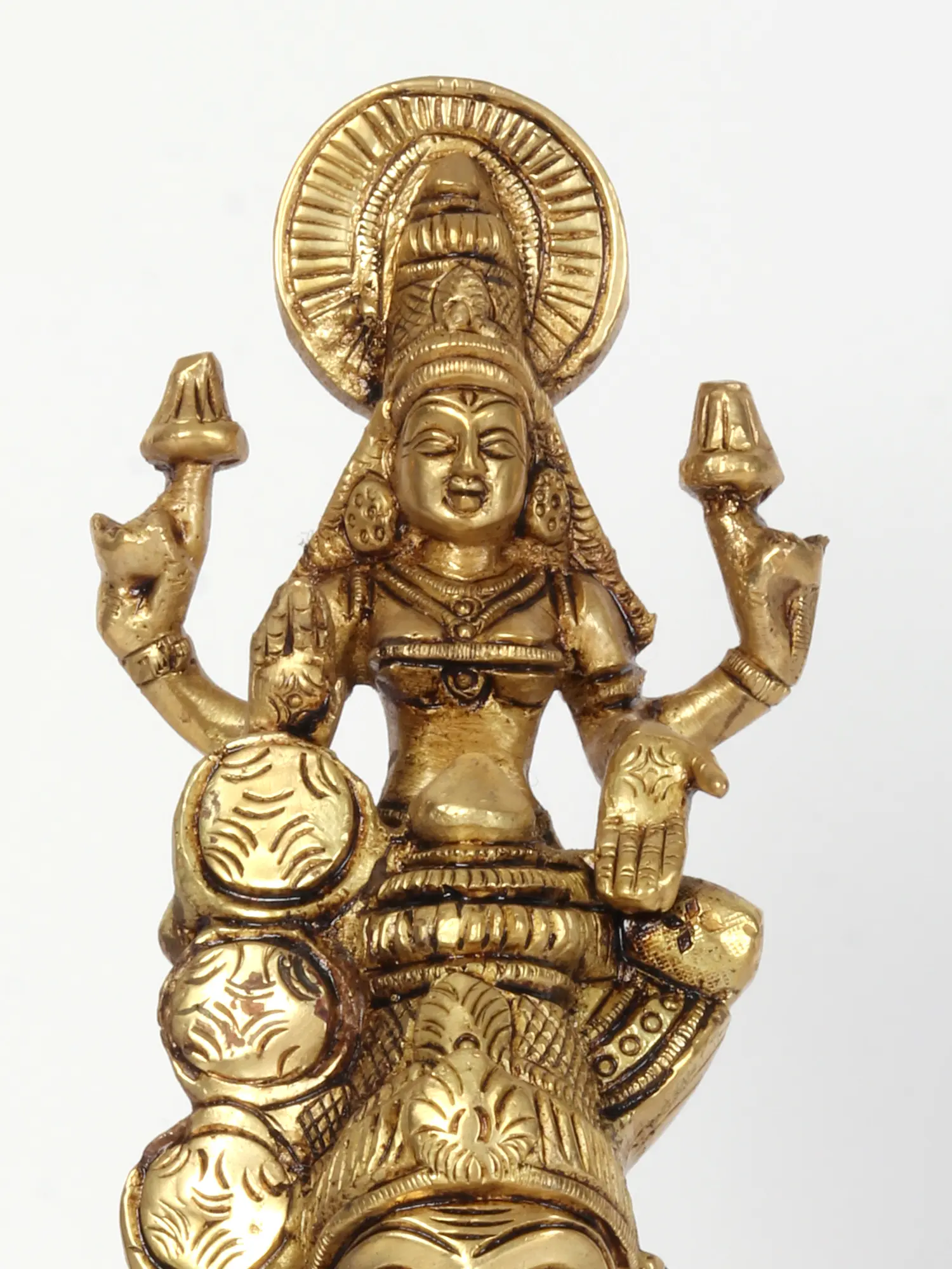 32" Large Four Armed Goddess Lakshmi Seated on Throne | Brass Statue | Made In India