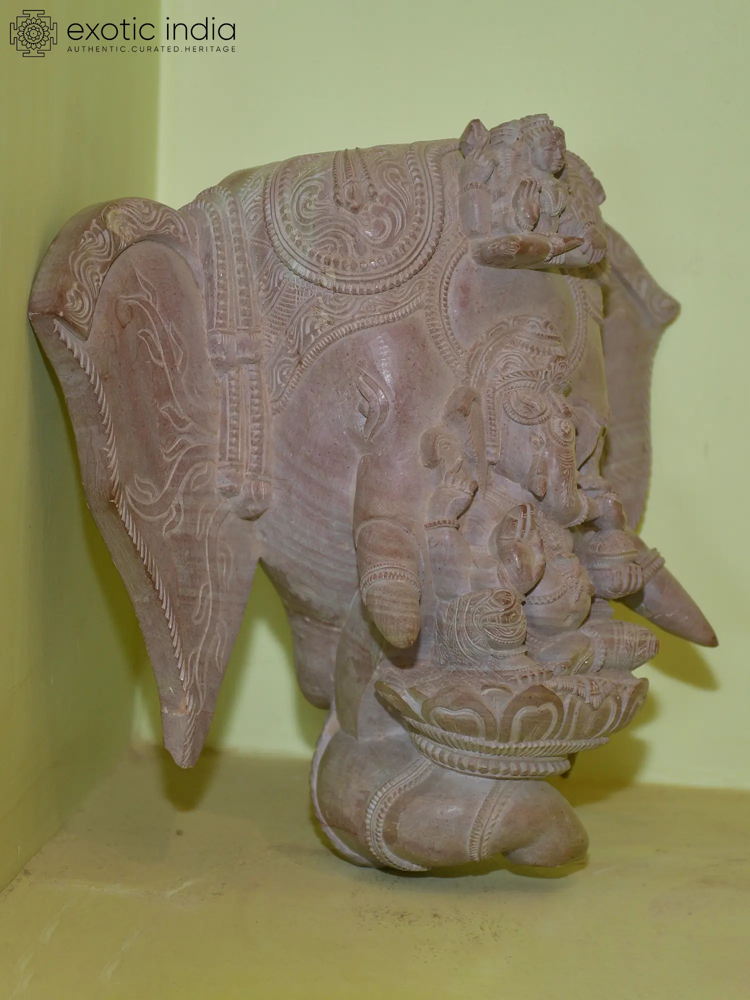 The choice of Orissa stone for this sculpture is significant. This material, sourced from the eastern Indian state of Odisha, has been used for centuries to create magnificent temples and deities. Its natural beauty and resilience allow for intricate detailing and a timeless appeal. The warm, neutral tones of the stone create a sense of groundedness and elegance, making this statue a perfect addition to any sacred space or art collection. The craftsmanship is evident in every curve and contour, from the delicate patterns adorning Ganesha's attire to the powerful rendering of the elephantine form, which itself is revered in Indian culture. Elephants are often associated with strength, royalty, and good fortune, mirroring the qualities of Lord Ganesha himself. ––––––––––