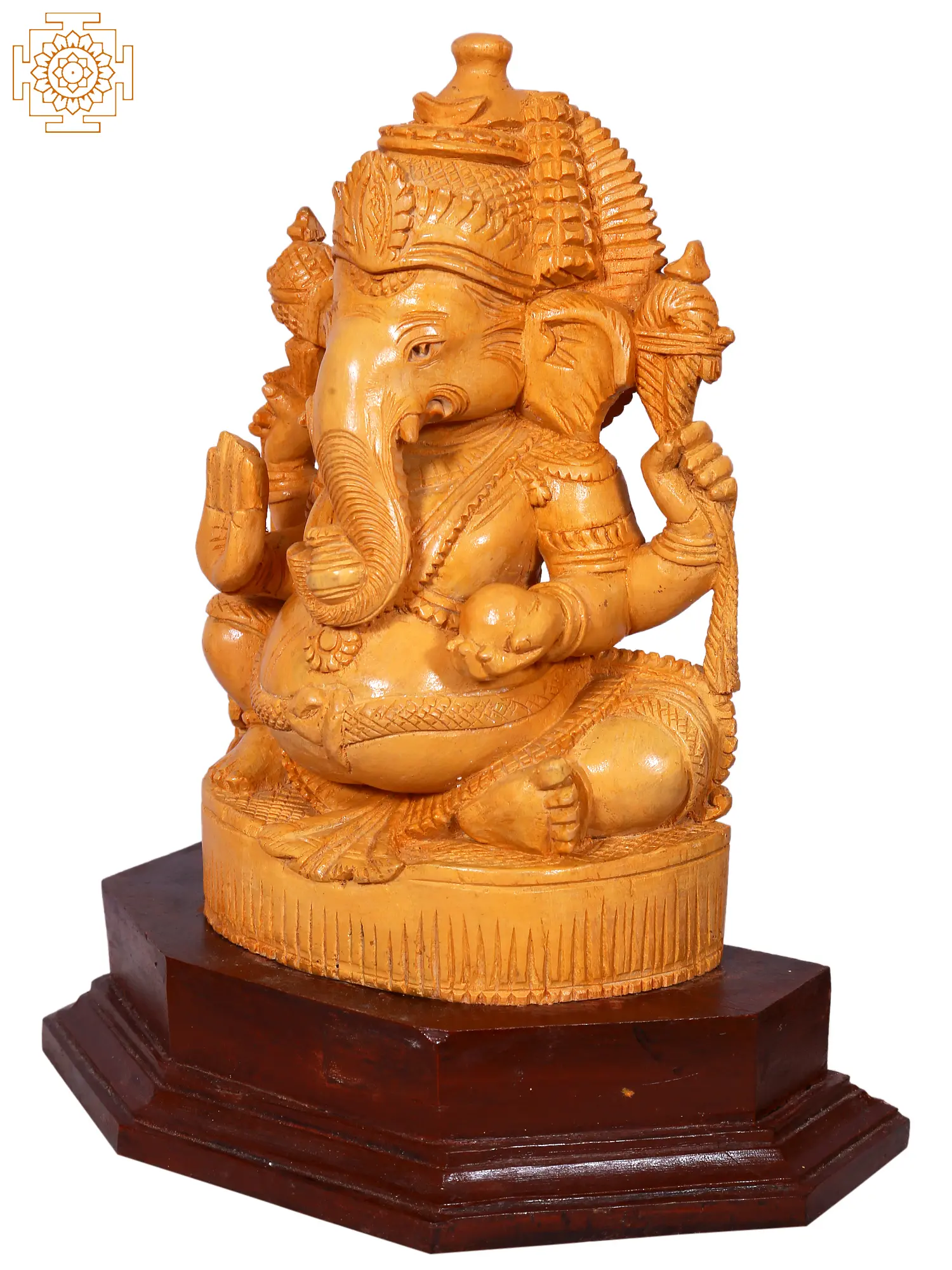 10" Lord Ganpati Seated On Throne | Wooden Statue