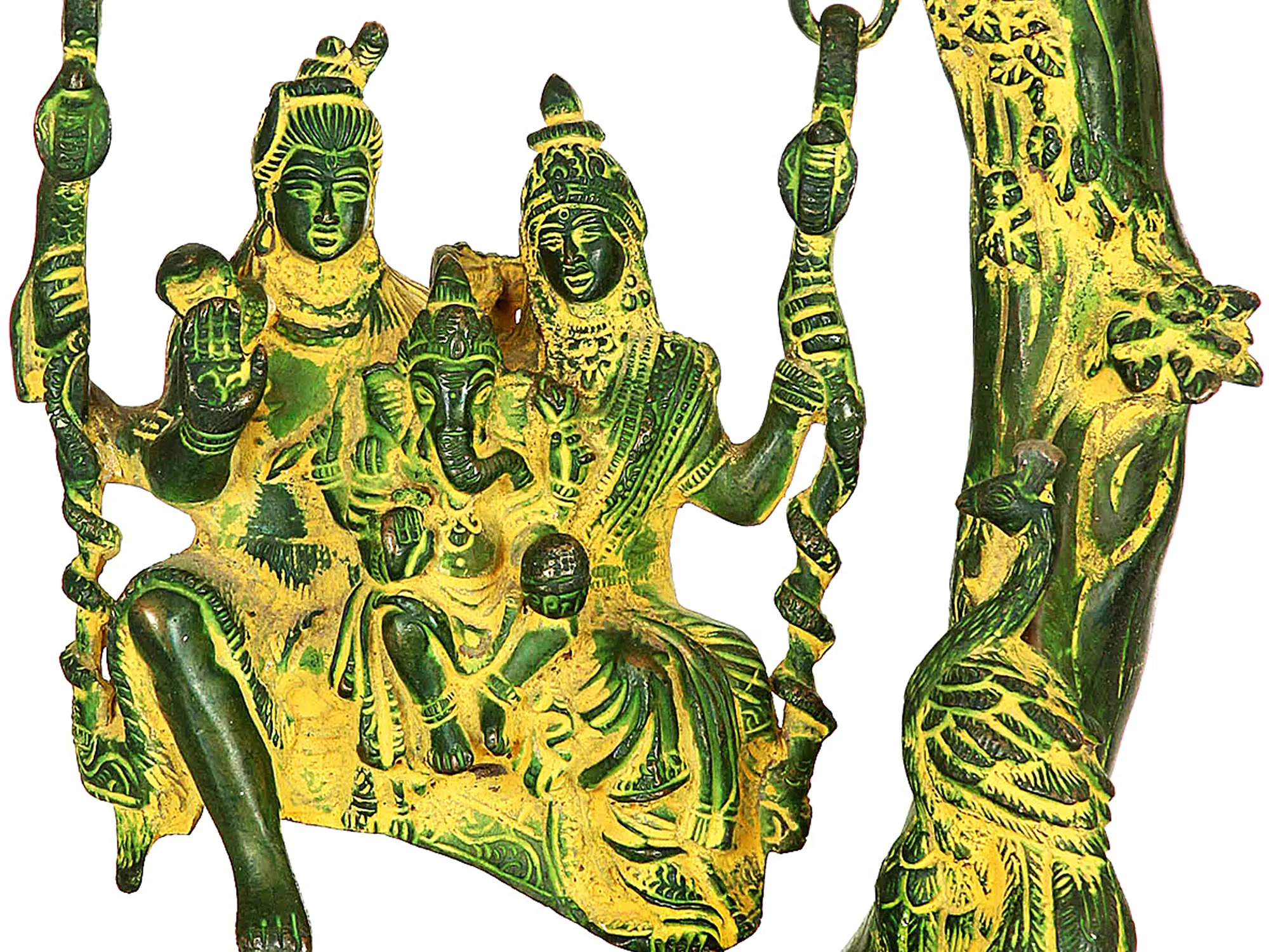 10" Lord Shiva Swings with Parvati and Ganesha In Brass | Handmade | Made In India