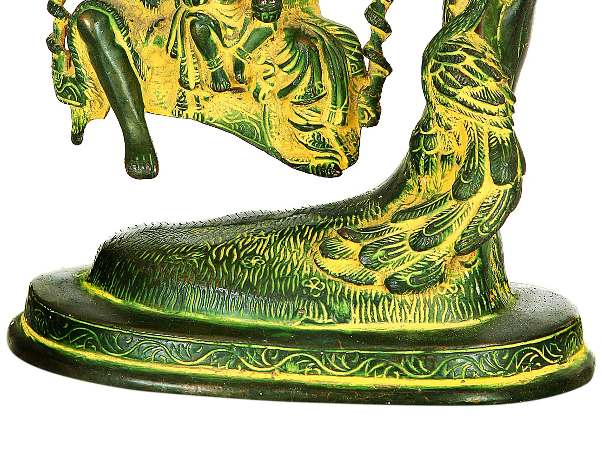 This sculpture is meticulously crafted in brass, an alloy revered for its durability, malleability, and golden hue. Brass has been used for centuries in Indian art and ritual objects, prized for its ability to capture intricate details and its association with auspiciousness and prosperity. The creation of such a detailed piece is a labor of love, requiring skilled artisans to mold the metal, carefully refine each feature, and apply the finishing touches that bring the deities to life. Each curve, each gesture, and each symbol is rendered with precision and devotion, making this a truly unique and captivating work of art.