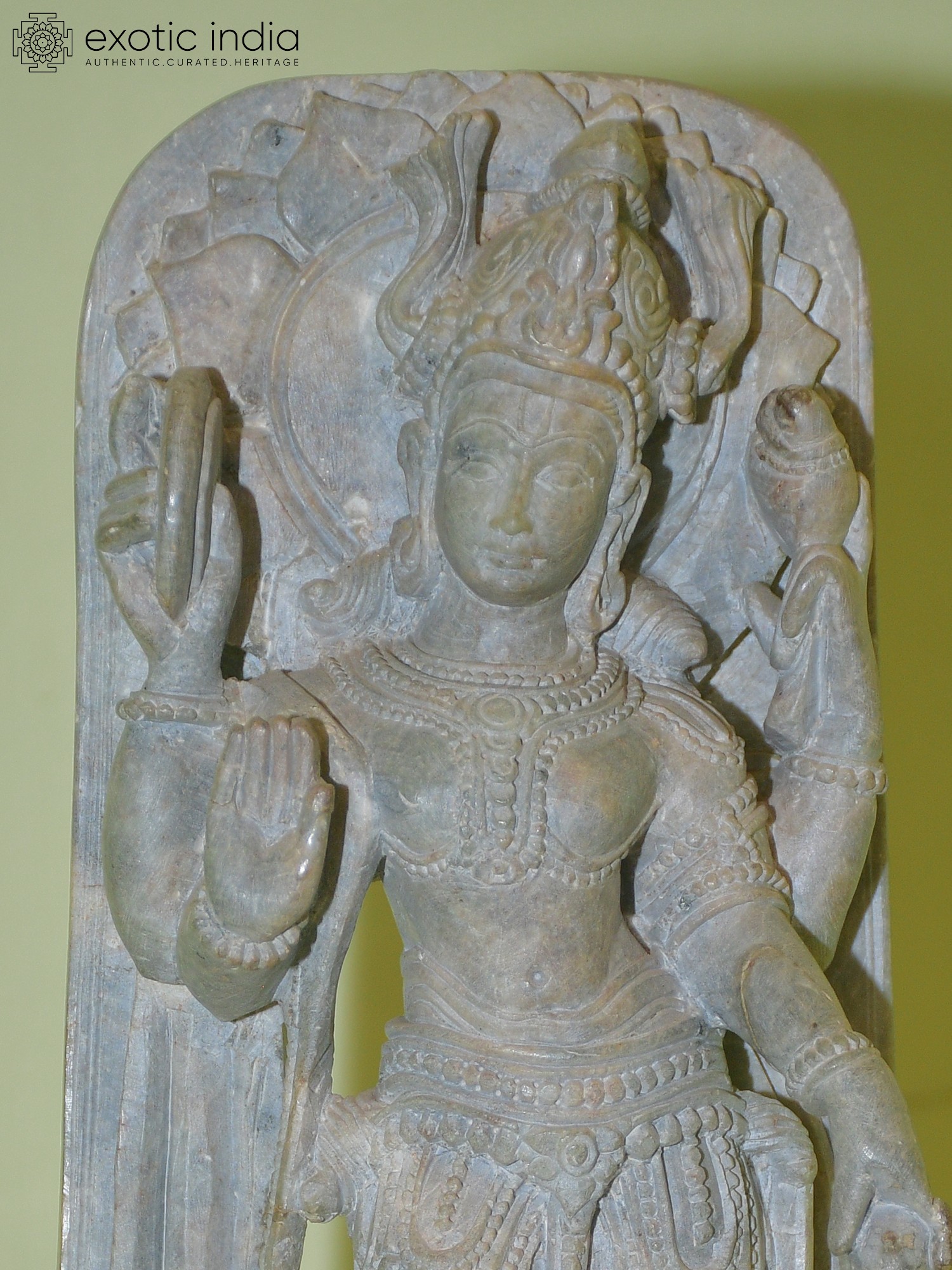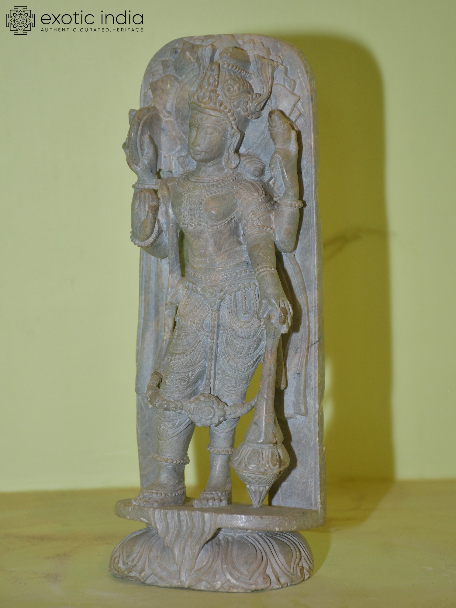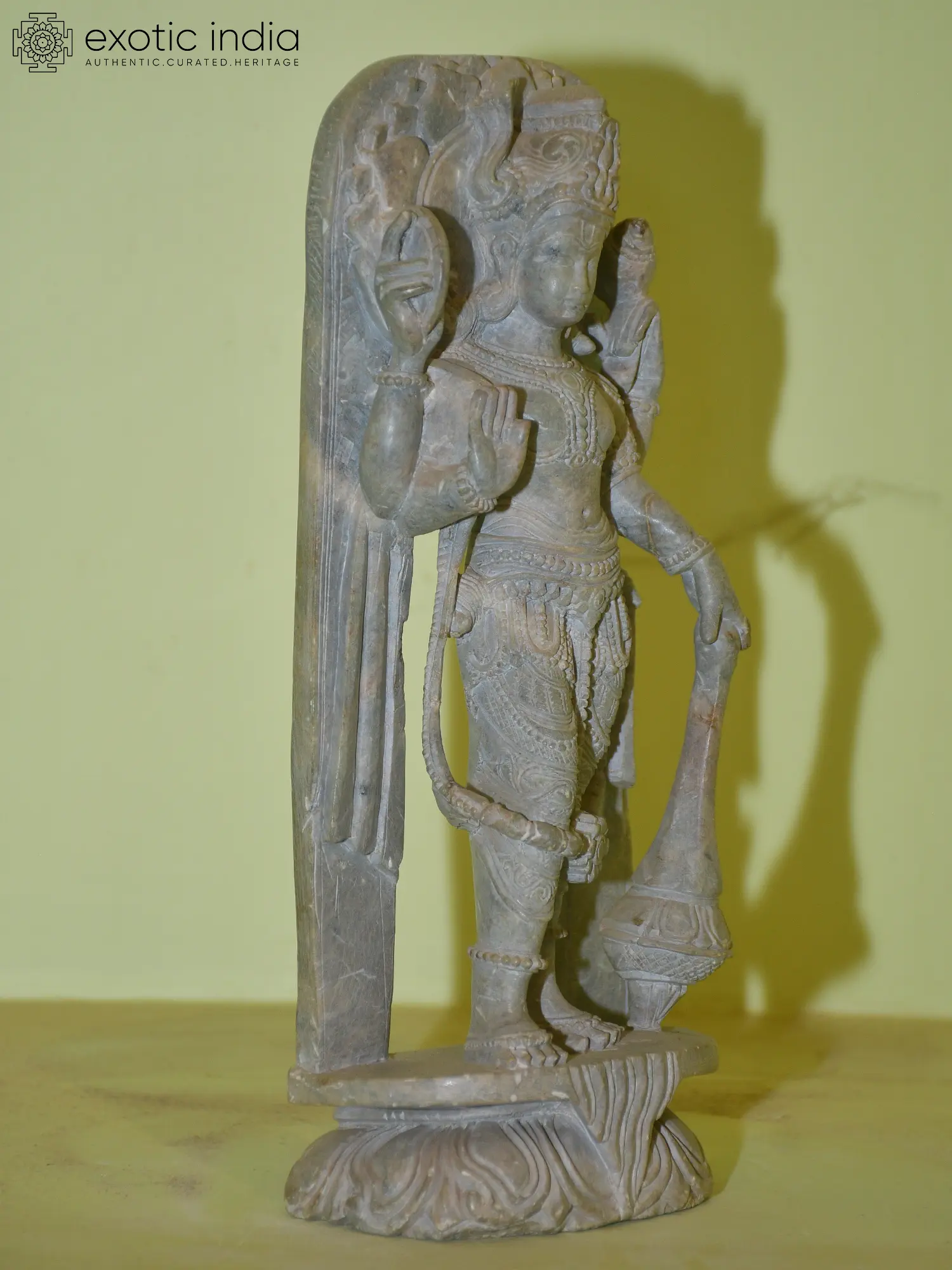 11" Radha Krishna Standing Together on the Pedestal | Green Stone Statue | Hand Carved