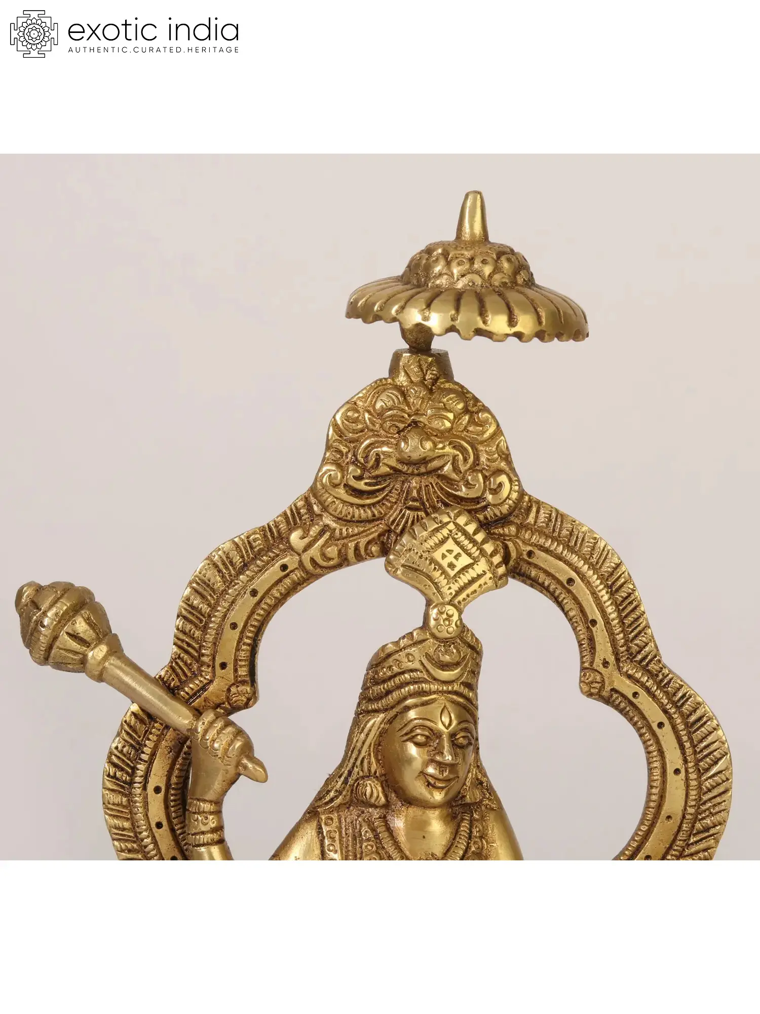 Crafted with devotion, this brass depiction of Mahavidya Bagalamukhi, one of the ten Tantrik deities known as the Mahavidyas, radiates the spiritual power of transformation. She is revered as the paralyzer of evil and ignorance, her right hand wielding a club ready to shatter misconceptions, and her left hand pulling at the demon's tongue, symbolizing the silencing of foes and the cessation of misguidance. Adorned in a radiant golden hue, she sits majestically on a throne, encompassing the ultimate knowledge and wisdom. This statue is a tribute to her divine role as the harbinger of truth and the vanquisher of delusions.