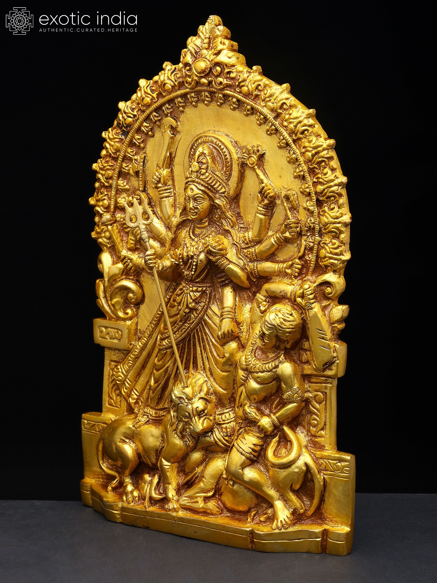 12" Ten-Armed Mahishasuramardini Goddess Durga Brass Statue | Handmade | Made in India