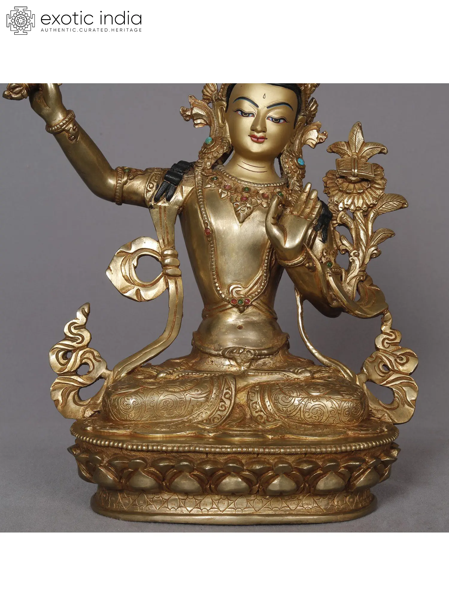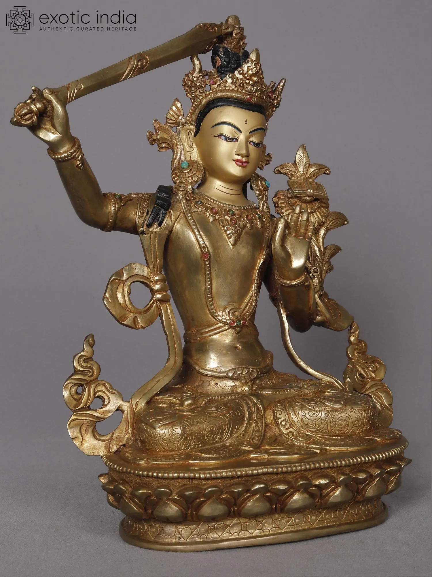 Manjushri holds a paramount place within Mahayana Buddhism, embodying the revered role of the Bodhisattva of Great Wisdom. In the realm of Esoteric Buddhism, he is revered as the "Meditational Deity." Manifesting as a male Bodhisattva, he wields profound symbolism with his dynamic attributes.