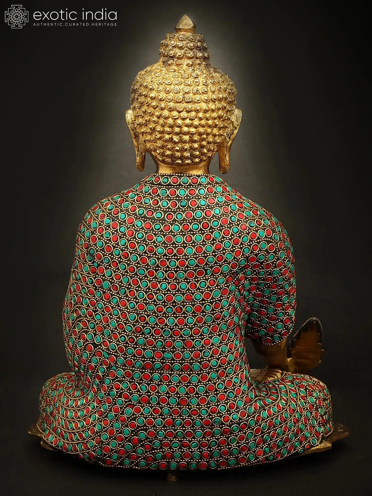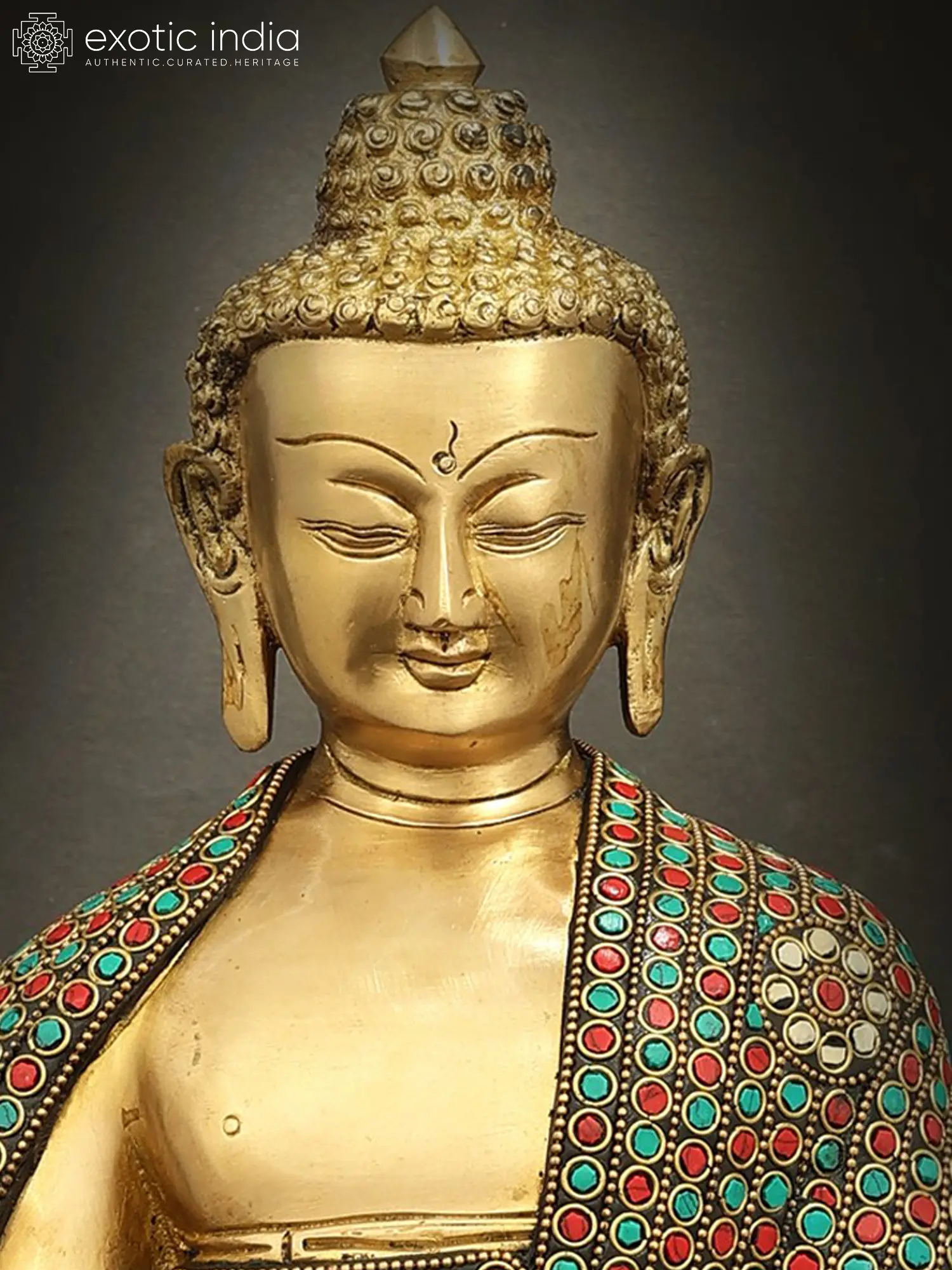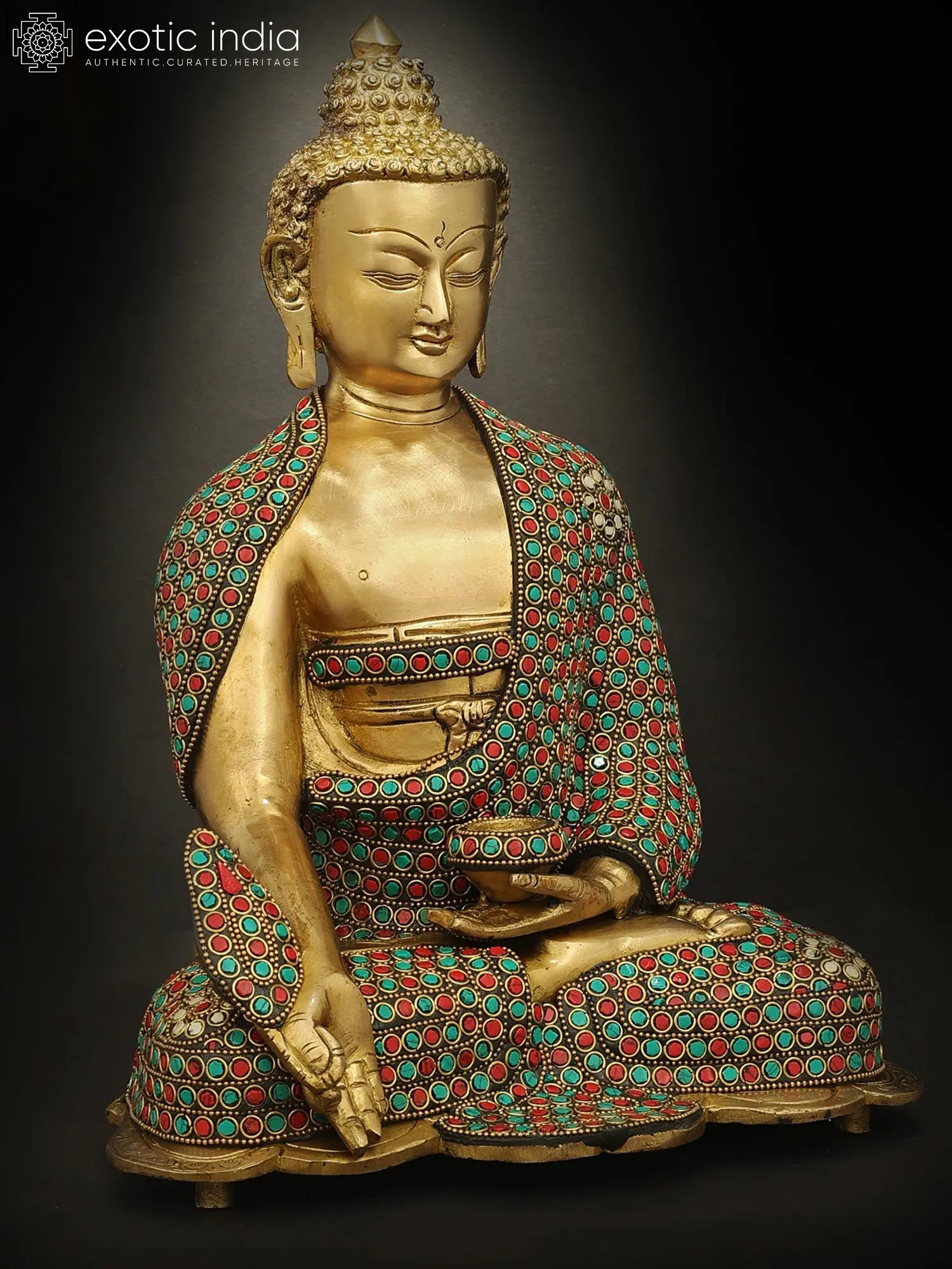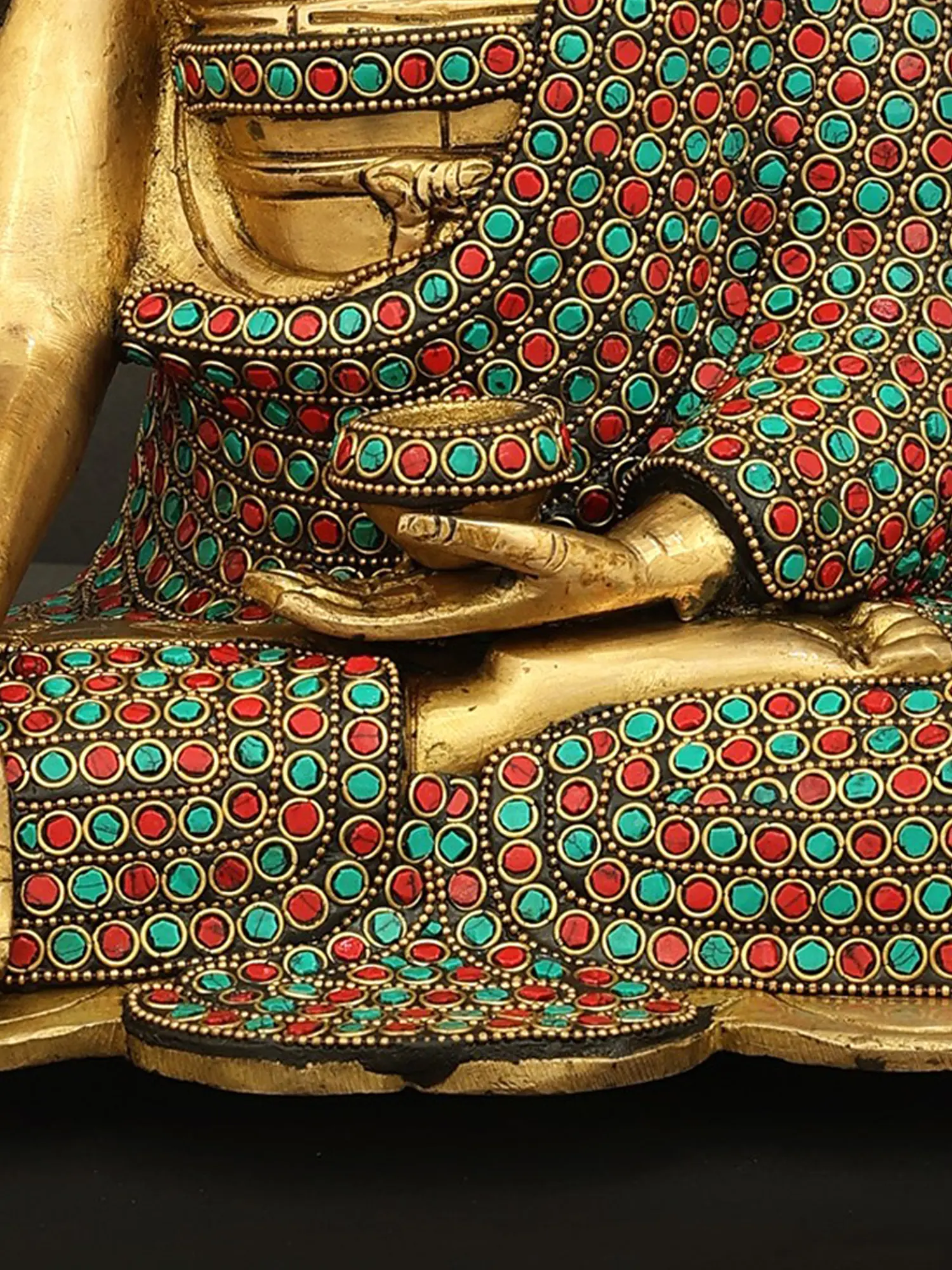 10" Medicine Lord Buddha With Ring Inlay Work In Brass | Handmade | Made In India
