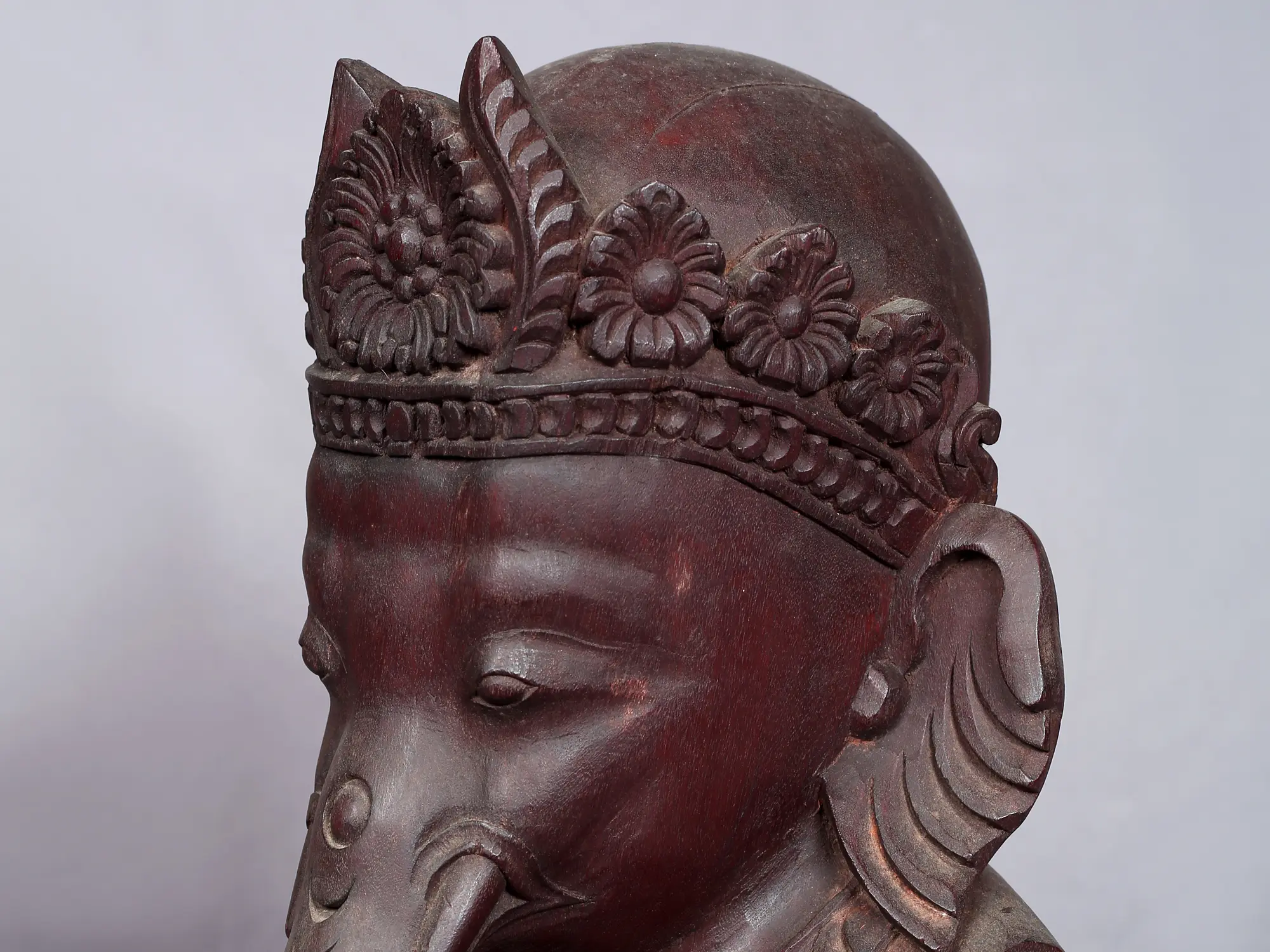 Lord Ganesha, also known as “Vighnaharta”, the divine embodiment of wisdom and prosperity, graces us with his presence through a mesmerising wooden statue from Nepal. His visage, a symphony of divine artistry, commands reverence. With a coiled trunk that symbolises adaptability, He breathes life into the intricate grains of the wood. Large ears, attuned to the whispers of devotion, beckon seekers to confide their deepest desires. Beneath a regal crown, He dons an aura of cosmic authority. This masterpiece captures the essence of Lord Ganesha, inviting us to bask in the serenity of his presence and the promise of blessings he bestows upon those who seek his divine guidance.