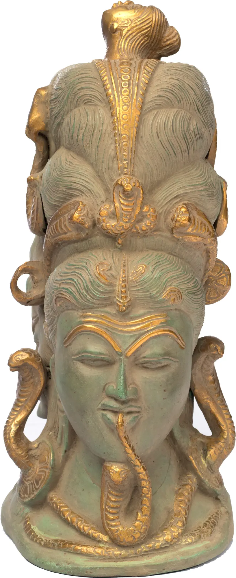 Unlock the gates to spirituality with the Mukhalingam (Patanjali on Rear Side) in Brass. Handmade with meticulous devotion in India, this isn't just a sculpture, it's a portal to the divine. Mukhalingam, a sacred symbol of Lord Shiva, finds its residence in this brass masterpiece. With the rear side graced by Patanjali, the father of yoga, it encapsulates a harmonious fusion of spirituality and artistry. As you bow in reverence, it becomes a conduit for your prayers, enriching your spiritual space with a sense of serenity and devotion. This Mukhalingam is a testament to the timeless traditions of Indian craftsmanship and spirituality, inviting you to embrace the beauty of devotion and artistry.