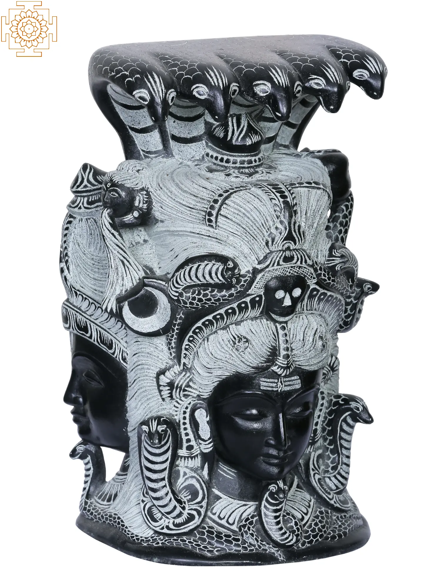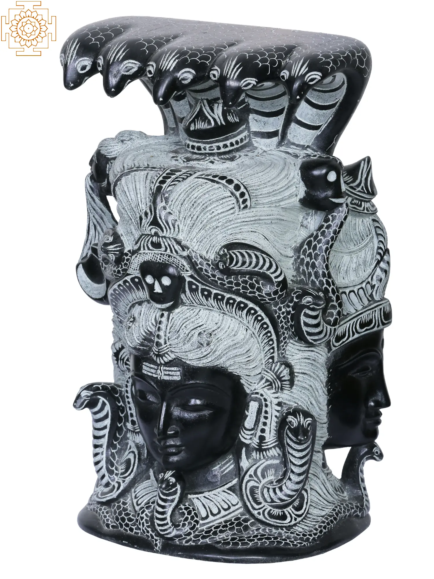 9" Mukhalingam (Three Heads Lord Shiva) | Black Stone Statue