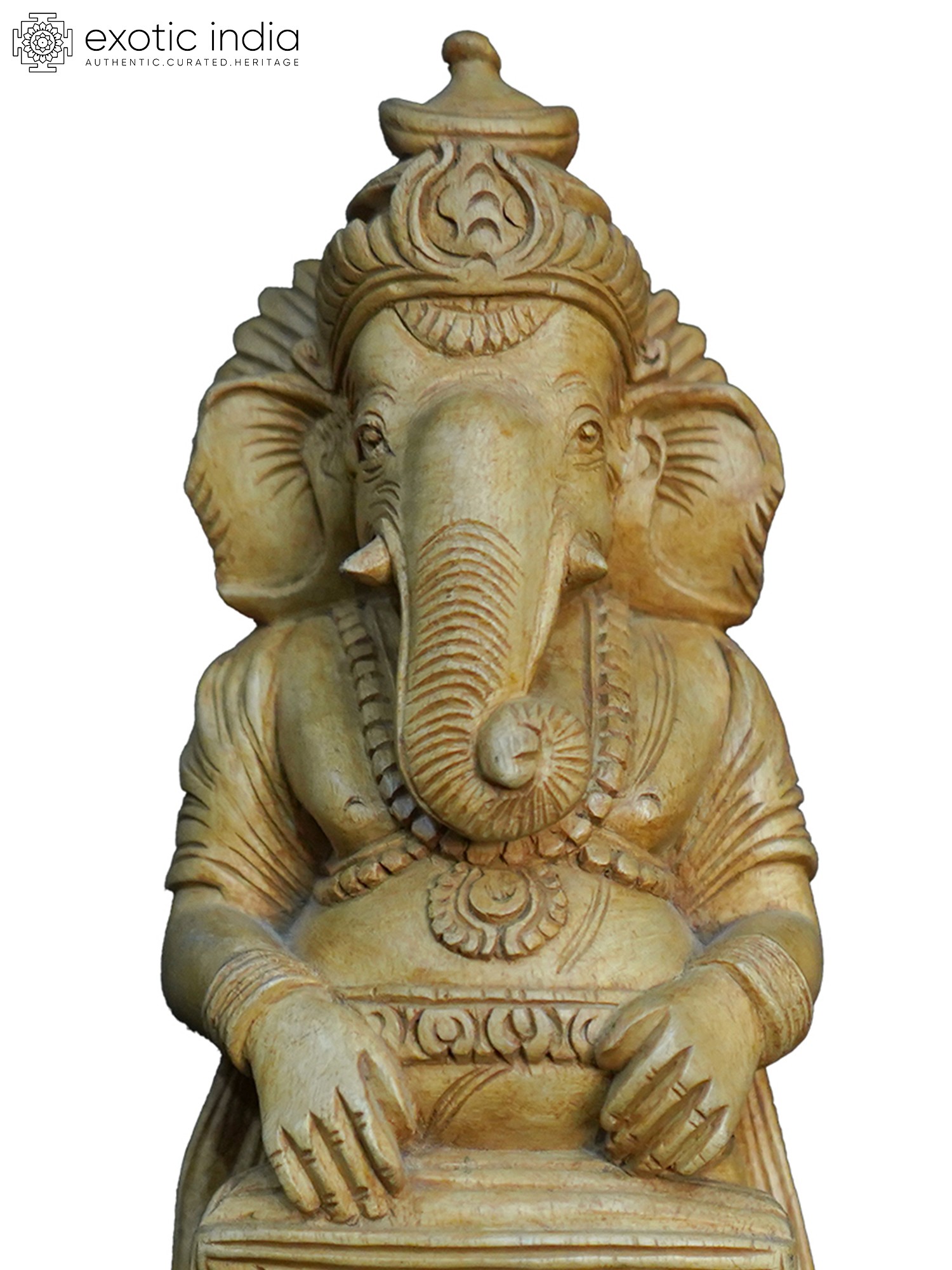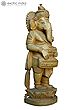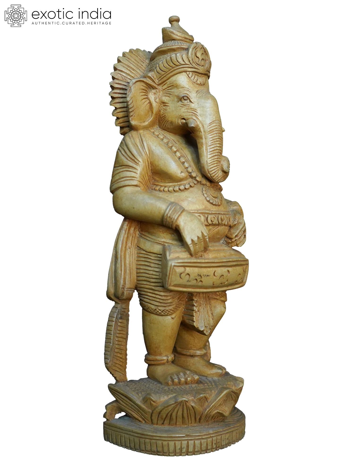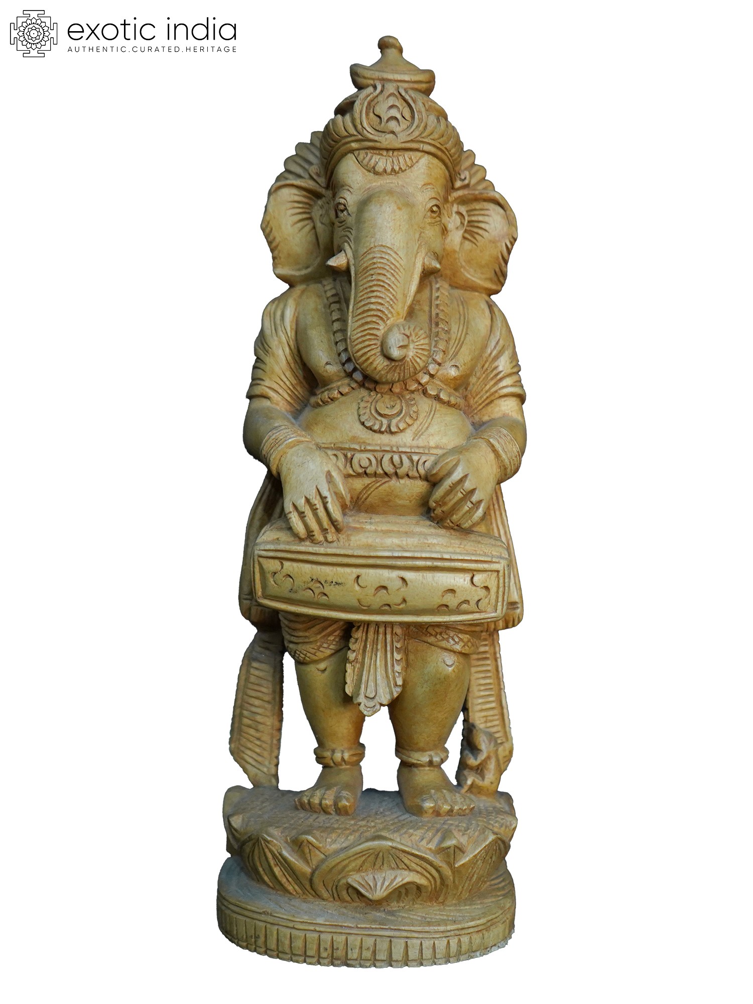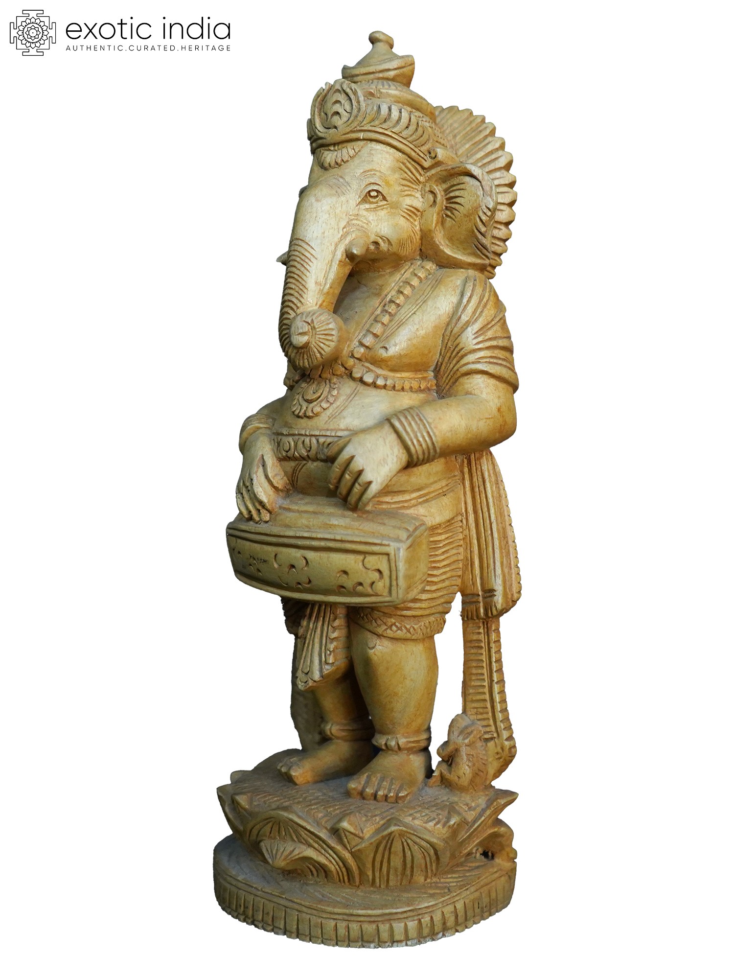 30" Musical Ganesha Playing Drum | Wood Carved Statue