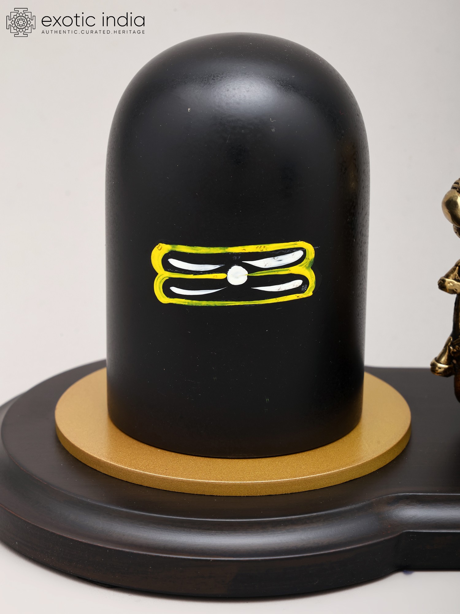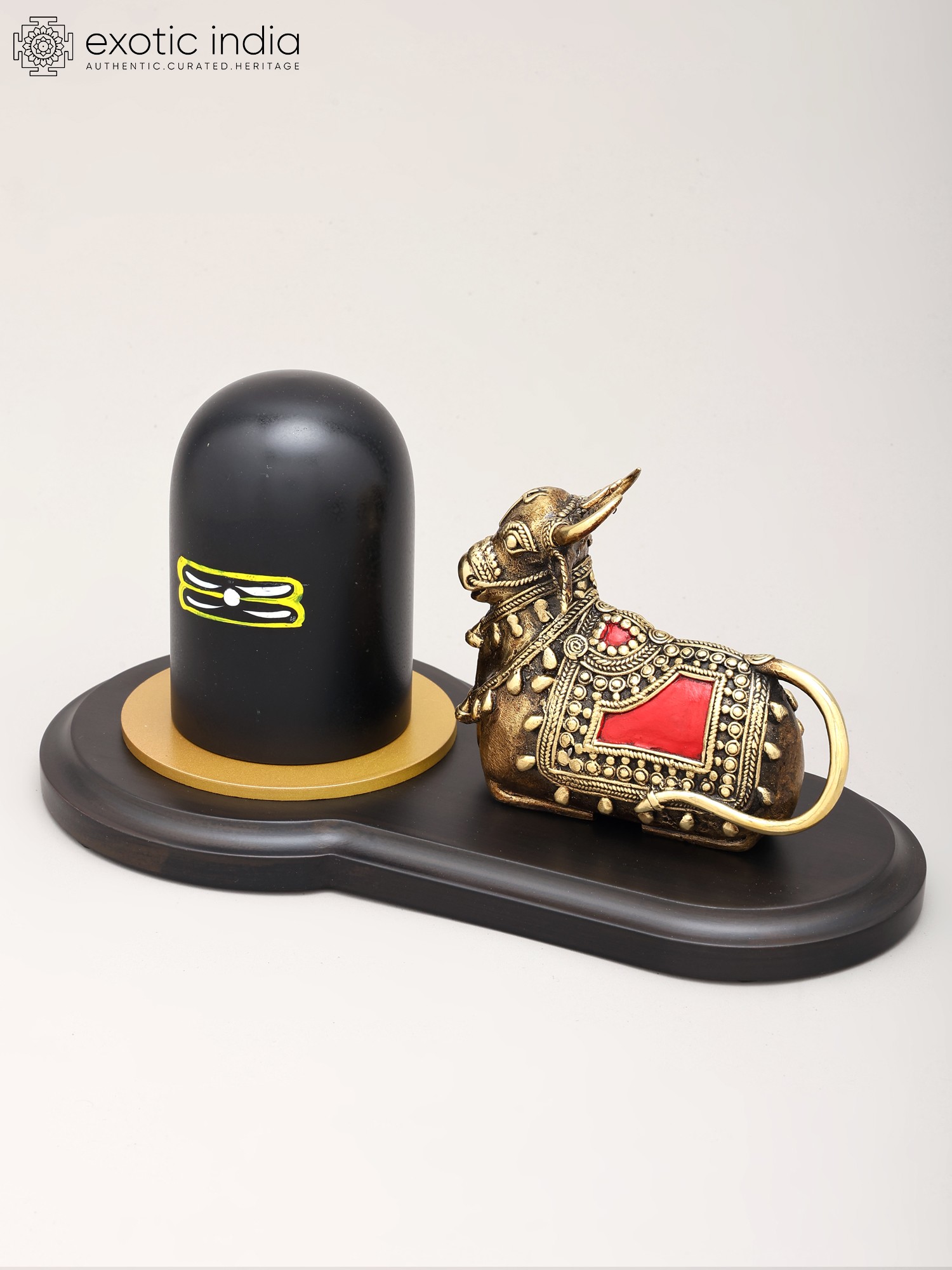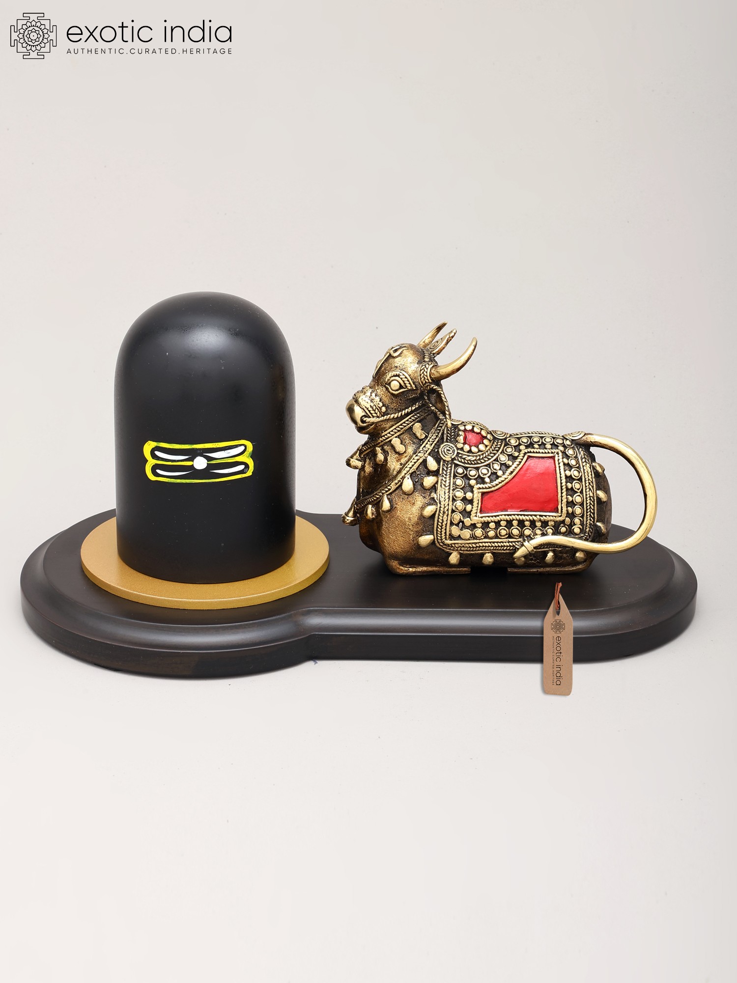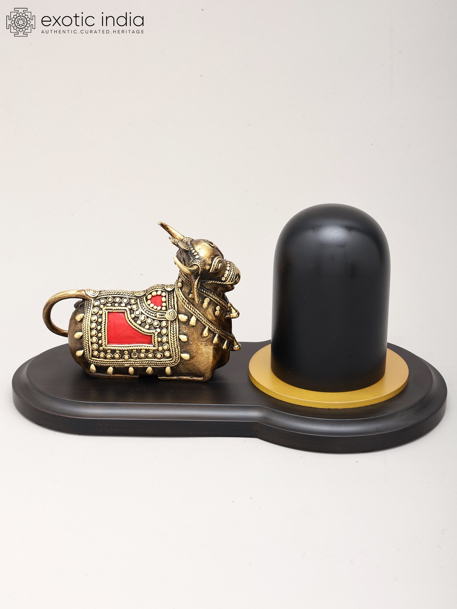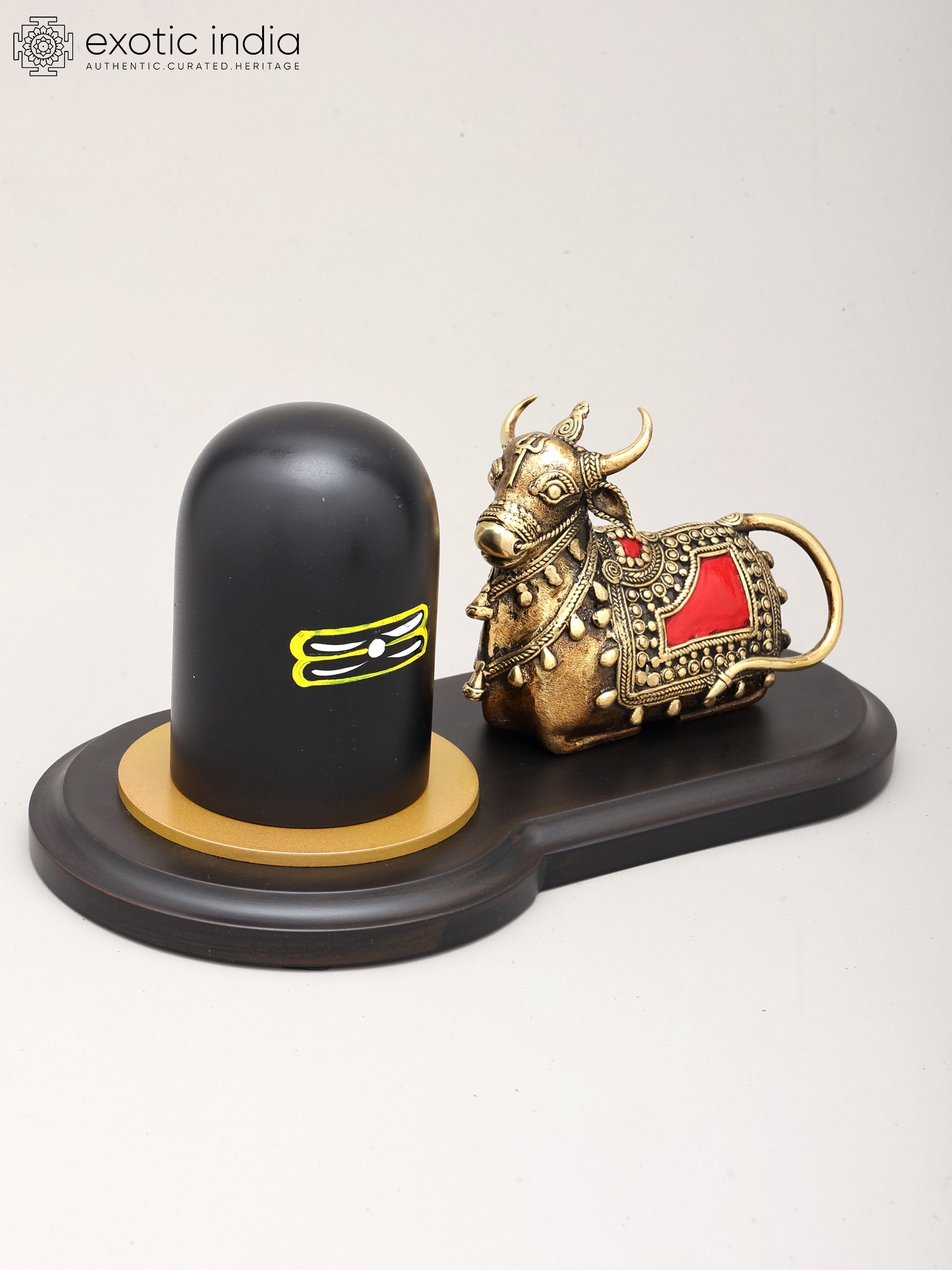 9" Brass Superfine Lord Shiva with Nandi and Shivalinga on Wood Base