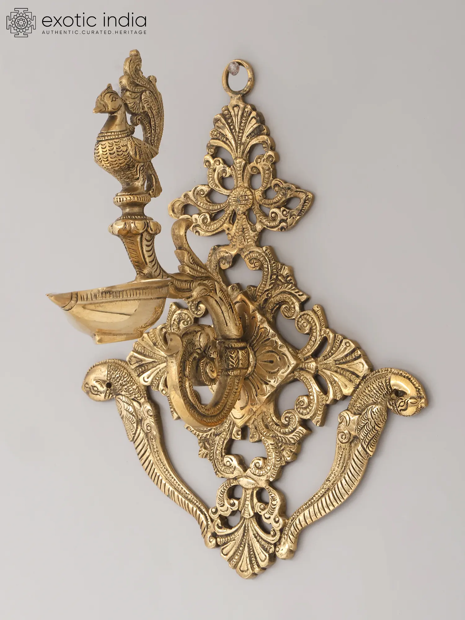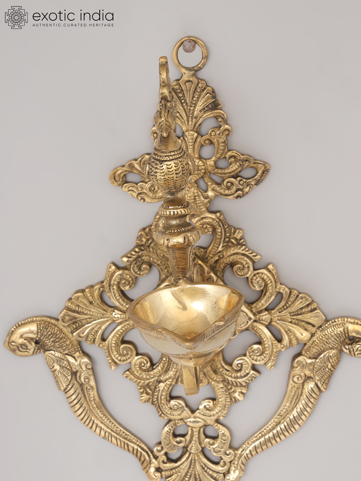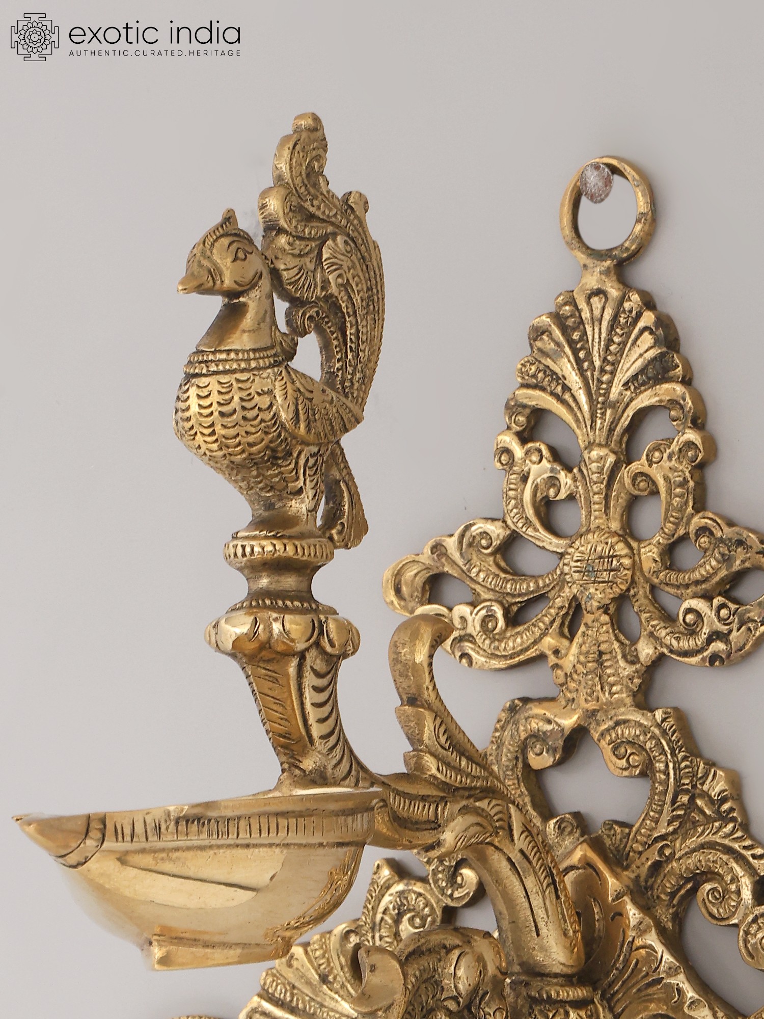 5" Five Wicks Peacock Design Oil Lamp (Deepam/Diya) in Brass