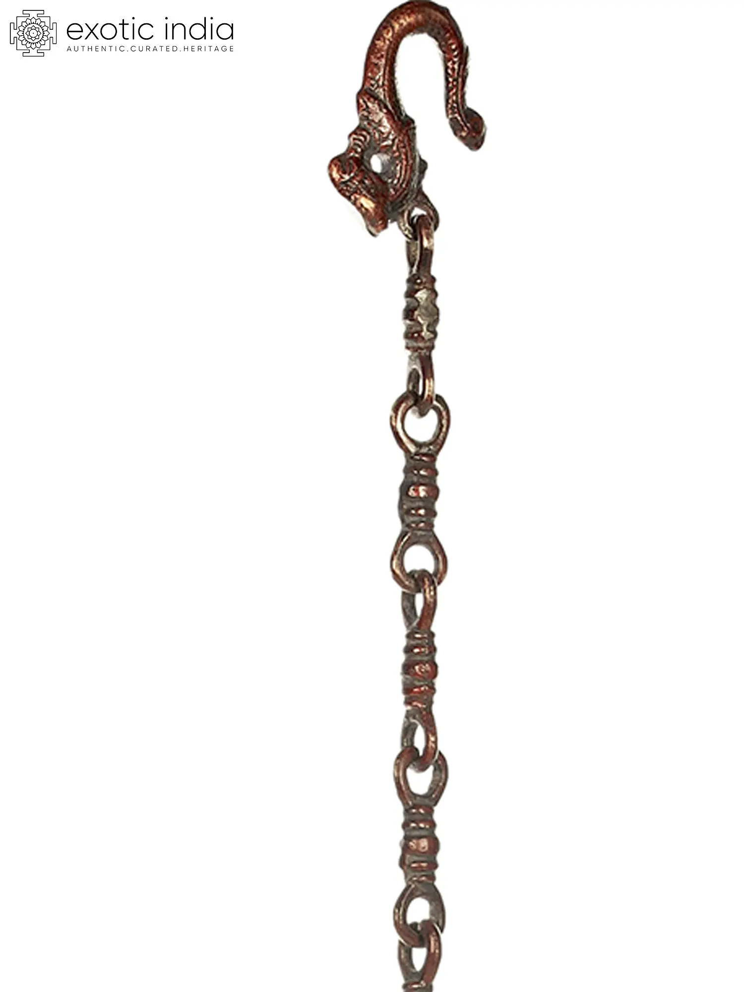 Each curve, each feather, each bell on this hanging has been shaped and fashioned by hand, a process that imbues it with a unique character and warmth. The use of solid brass not only ensures durability but also lends a timeless elegance to the piece, allowing it to age gracefully and develop a beautiful patina over time. The contrast between the polished brass of the peacocks and the darker, antique finish of some of the detailing adds depth and visual interest. This hanging is designed to be a captivating focal point, whether suspended in a doorway to welcome guests with its gentle chime, in a living room to add a touch of regal elegance, or in a spiritual nook to enhance its sacred ambiance. Its substantial yet finely detailed construction speaks to the enduring legacy of Indian metalworking traditions, bringing a piece of authentic, curated heritage into your modern living space.