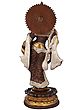 In this image, a richly adorned Radha is shown beckoning her Lord by a graceful gesture of the right hand, in which she holds a slab of butter, a favorite with Krishna. Standing in the classical tribhanga posture, where the delicate tilt of the head, waist and knee conform to the traditional Indian ideal of beauty, the bronze figure truly captures the adoration of Radha for Krishna.