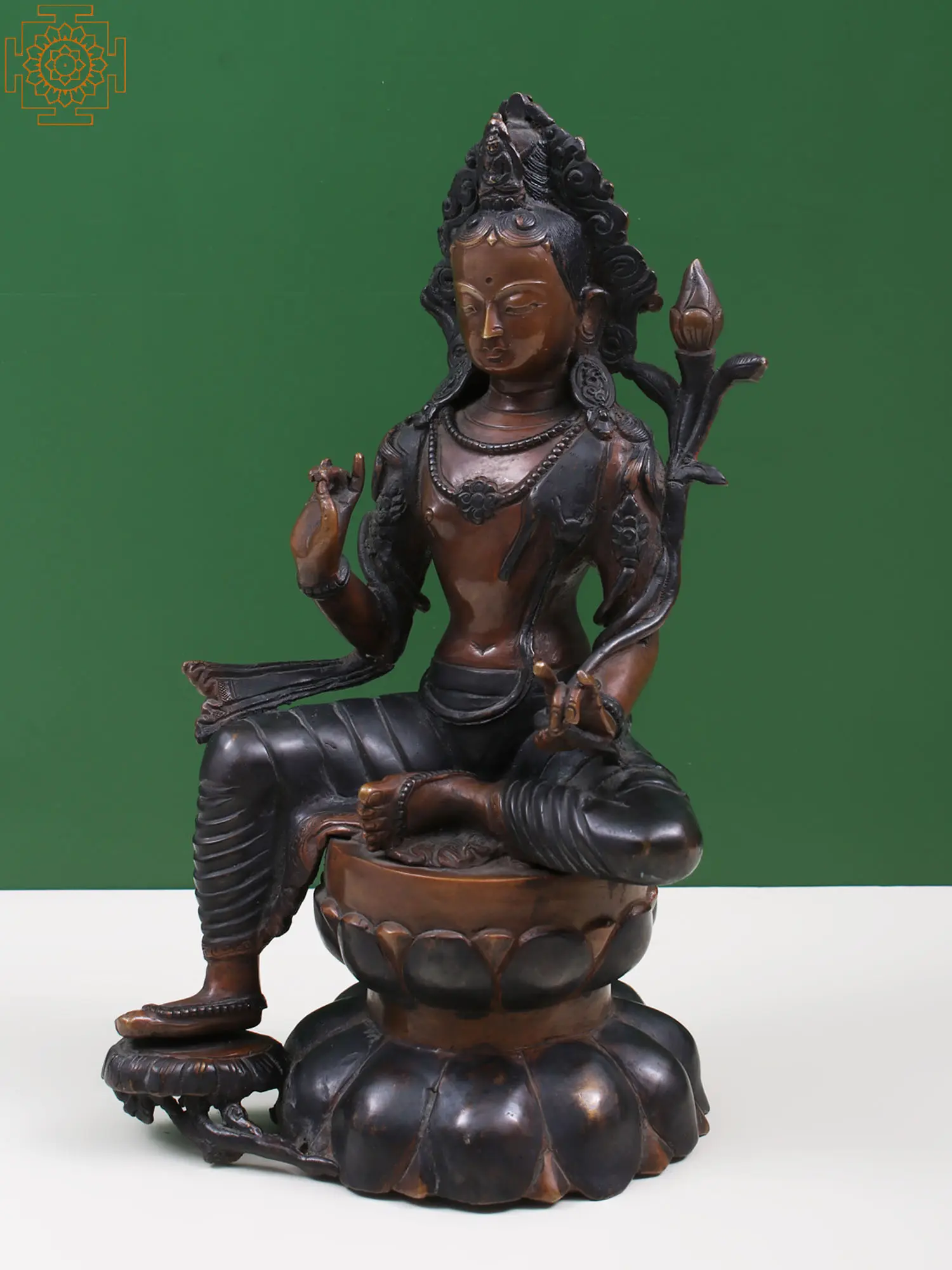 14" (Tibetan Buddhist Deity) Goddess White Tara In Brass | Handmade | Made In India