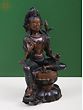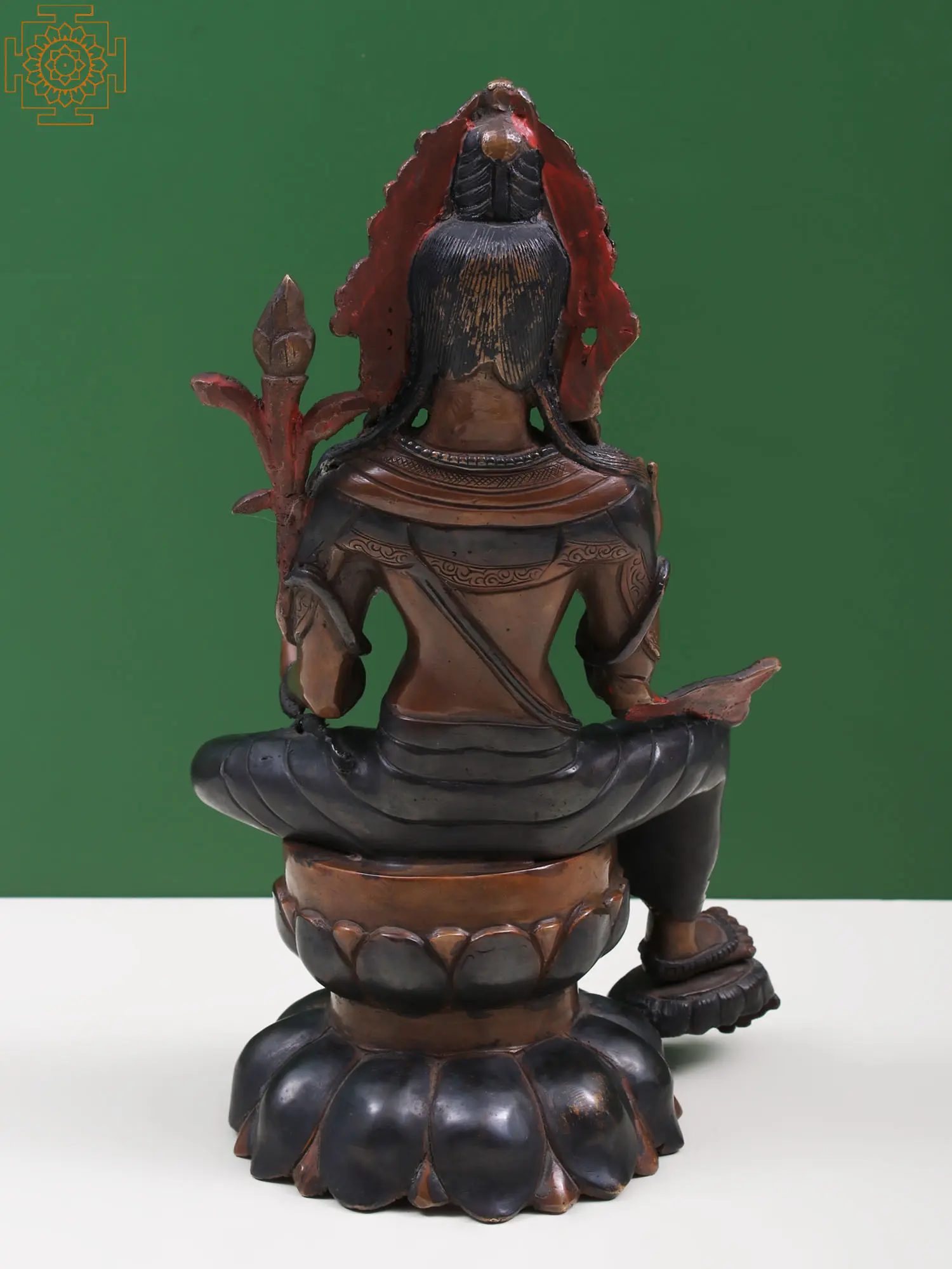 14" Tibetan Buddhist Deity Green Tara Brass Statue, Steeped in Dhyana on a Wood Pedestal