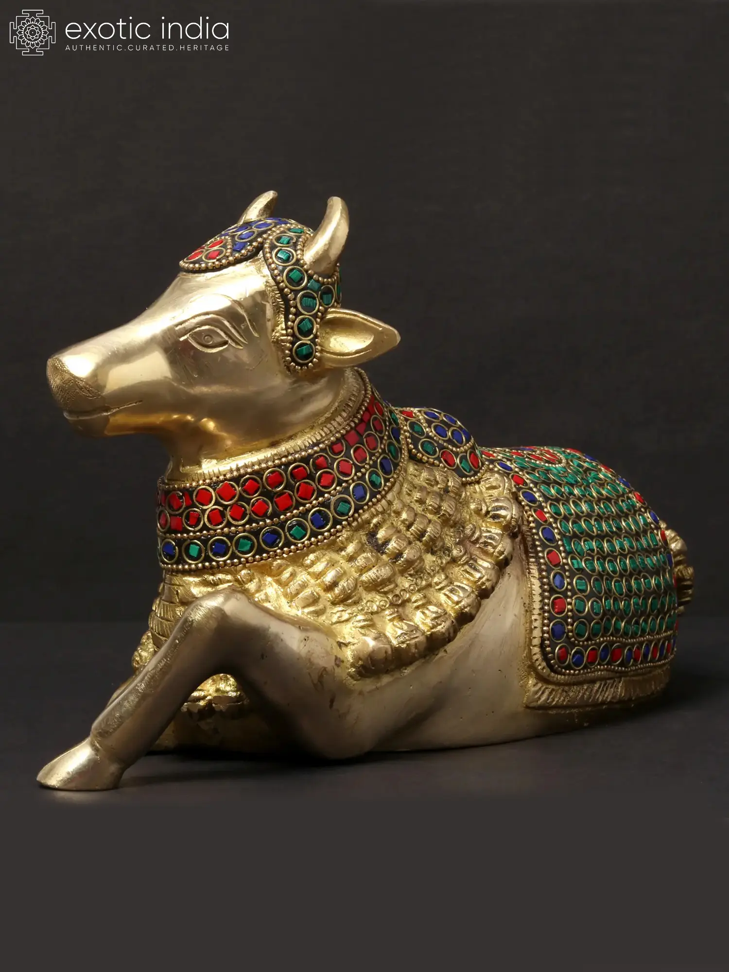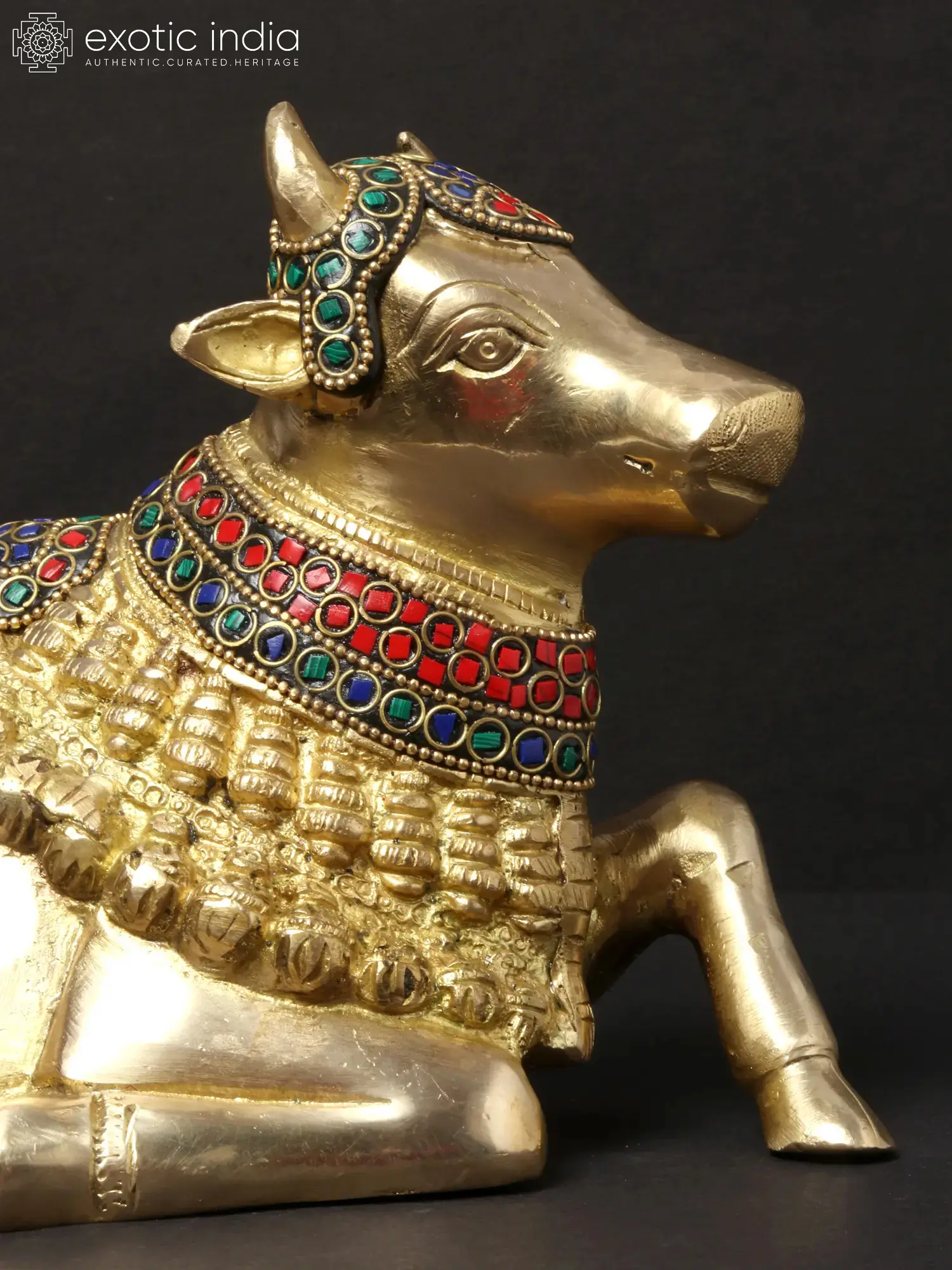 The Divine Mount: A Brass Nandi Statue Adorned with Inlay Work
