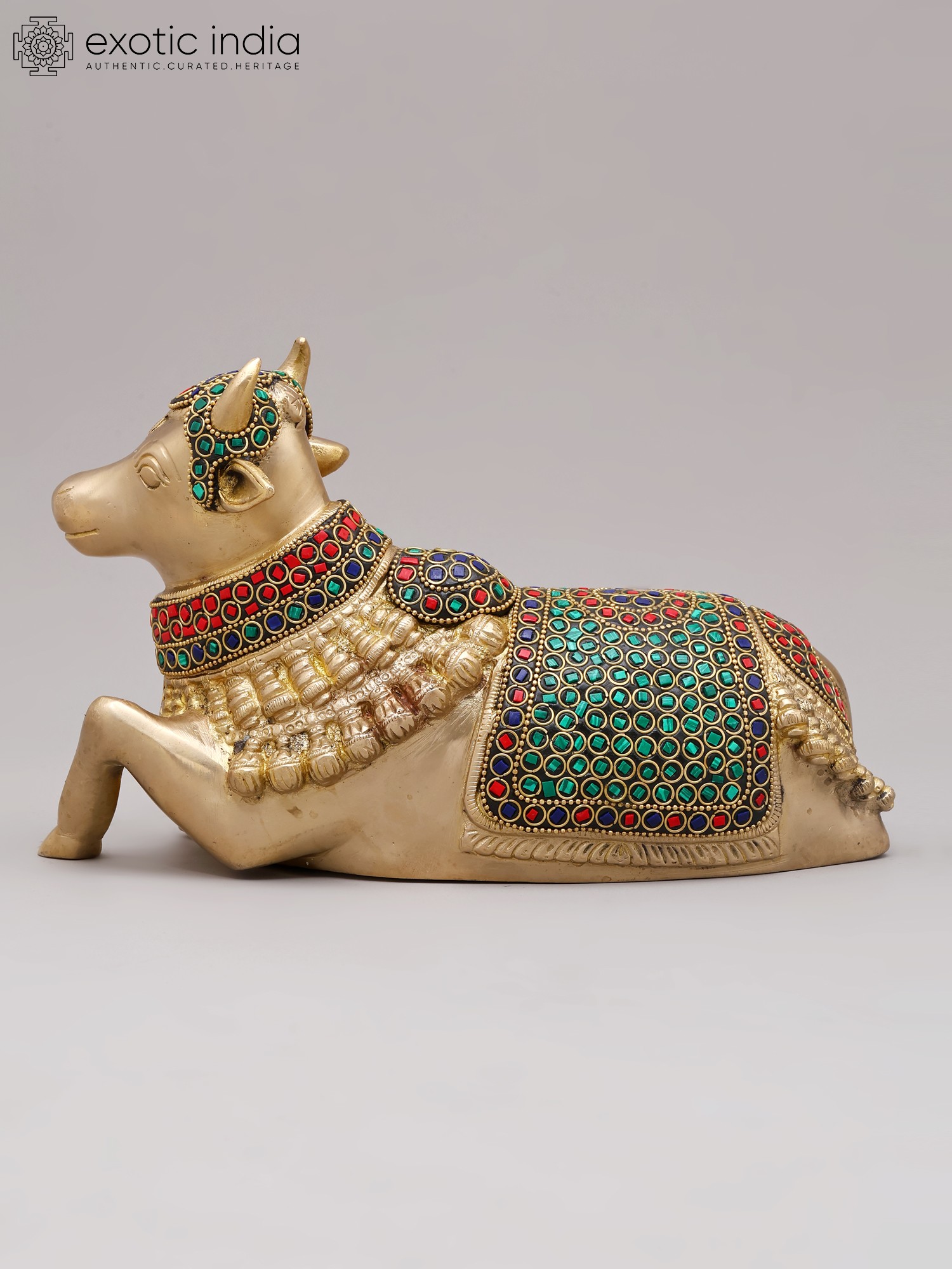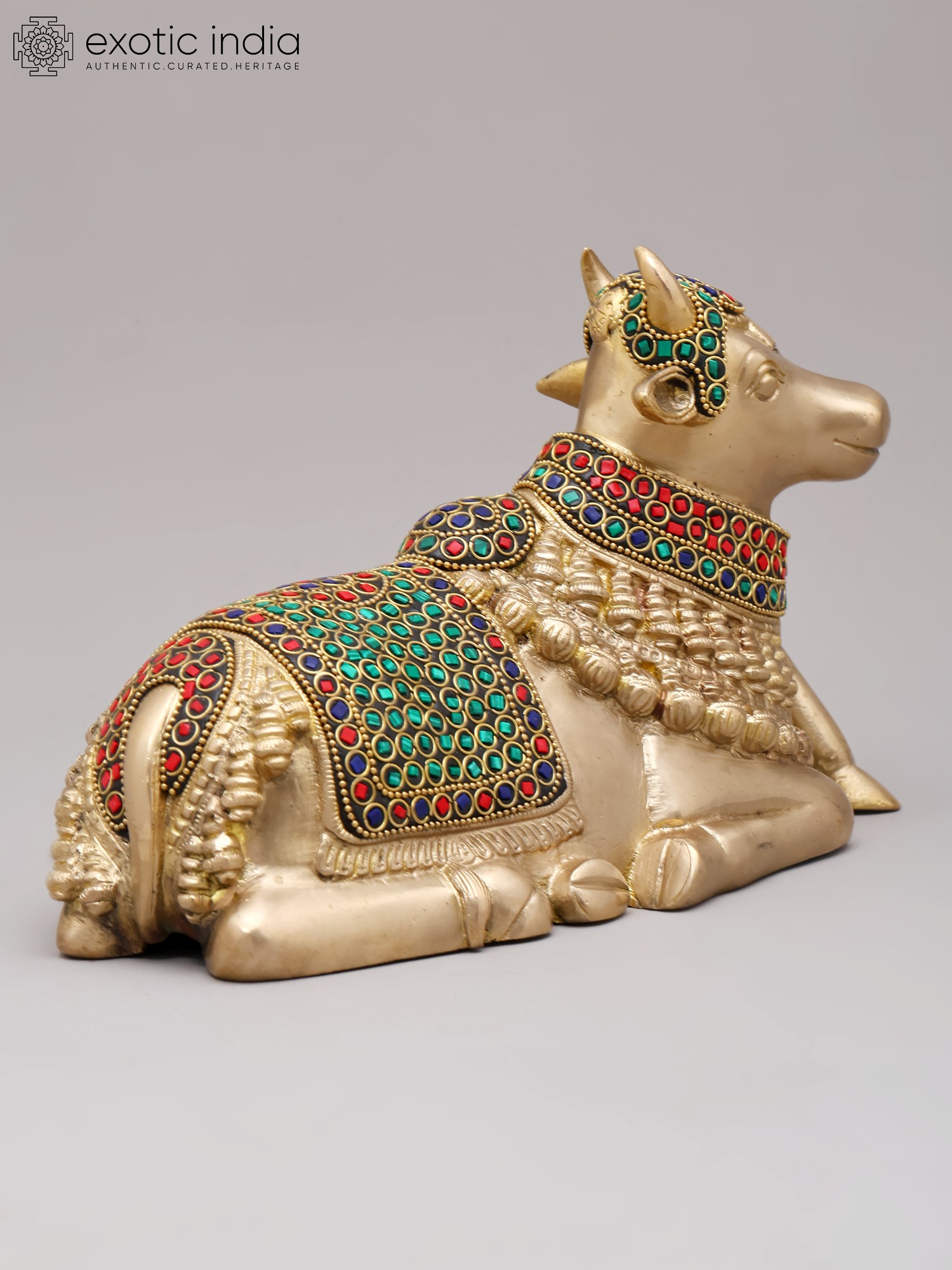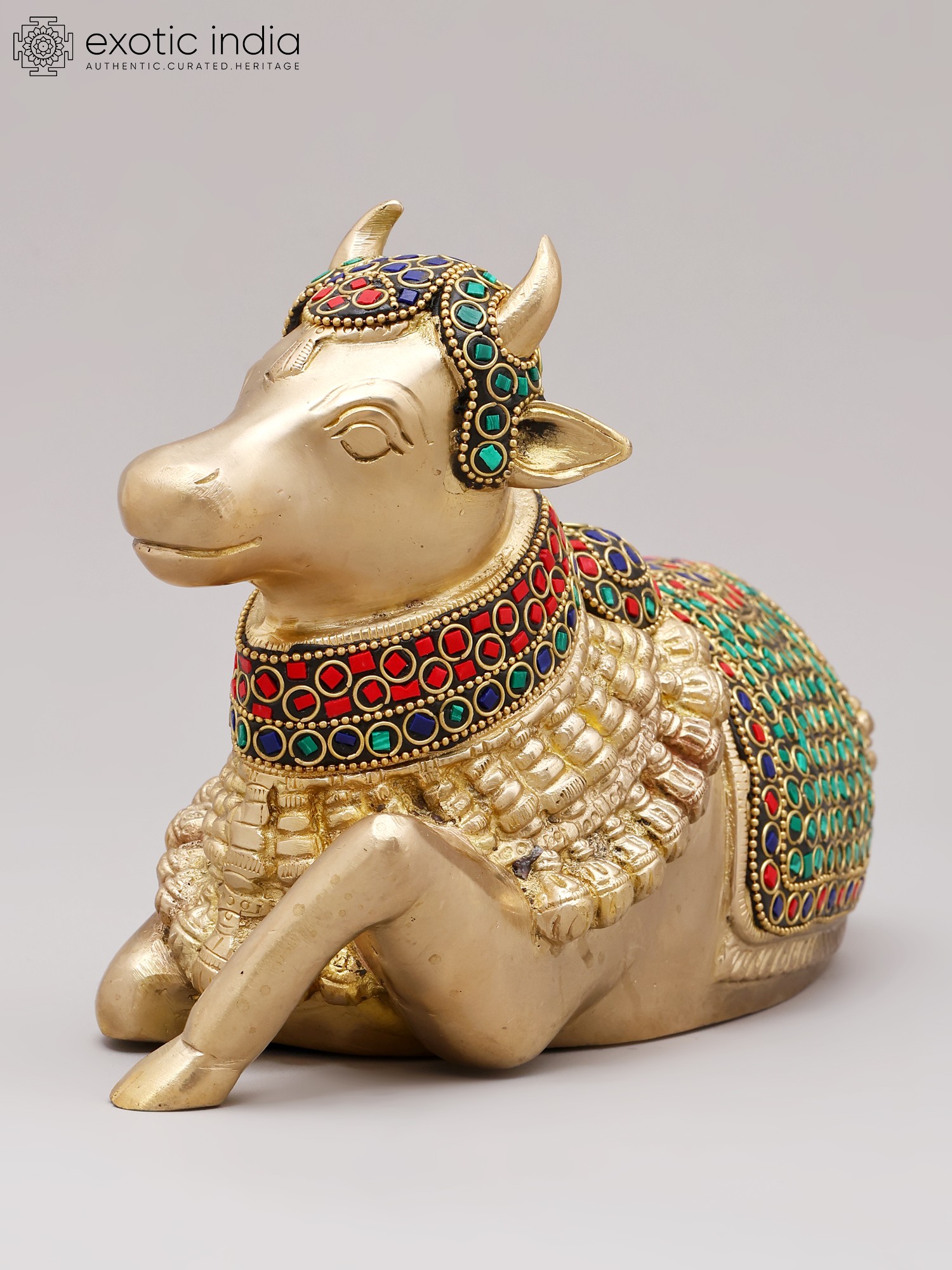 10'' Seated Nandi | Brass With Inlay Work