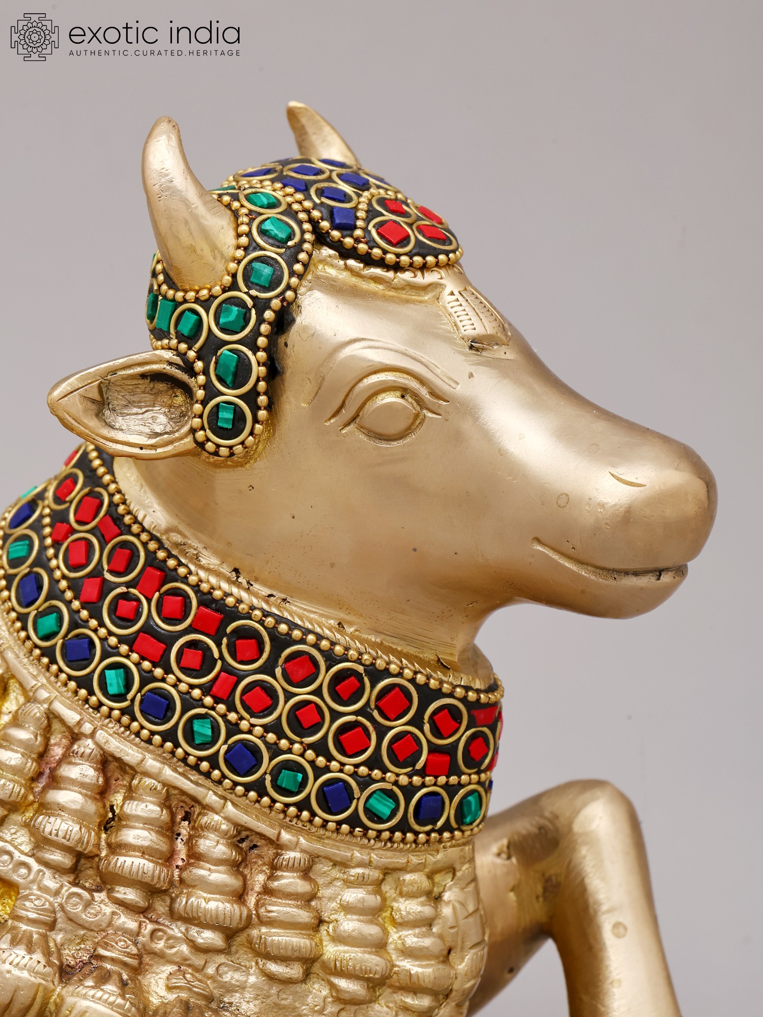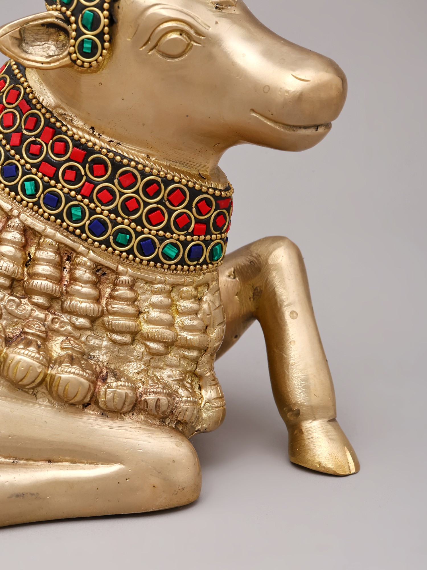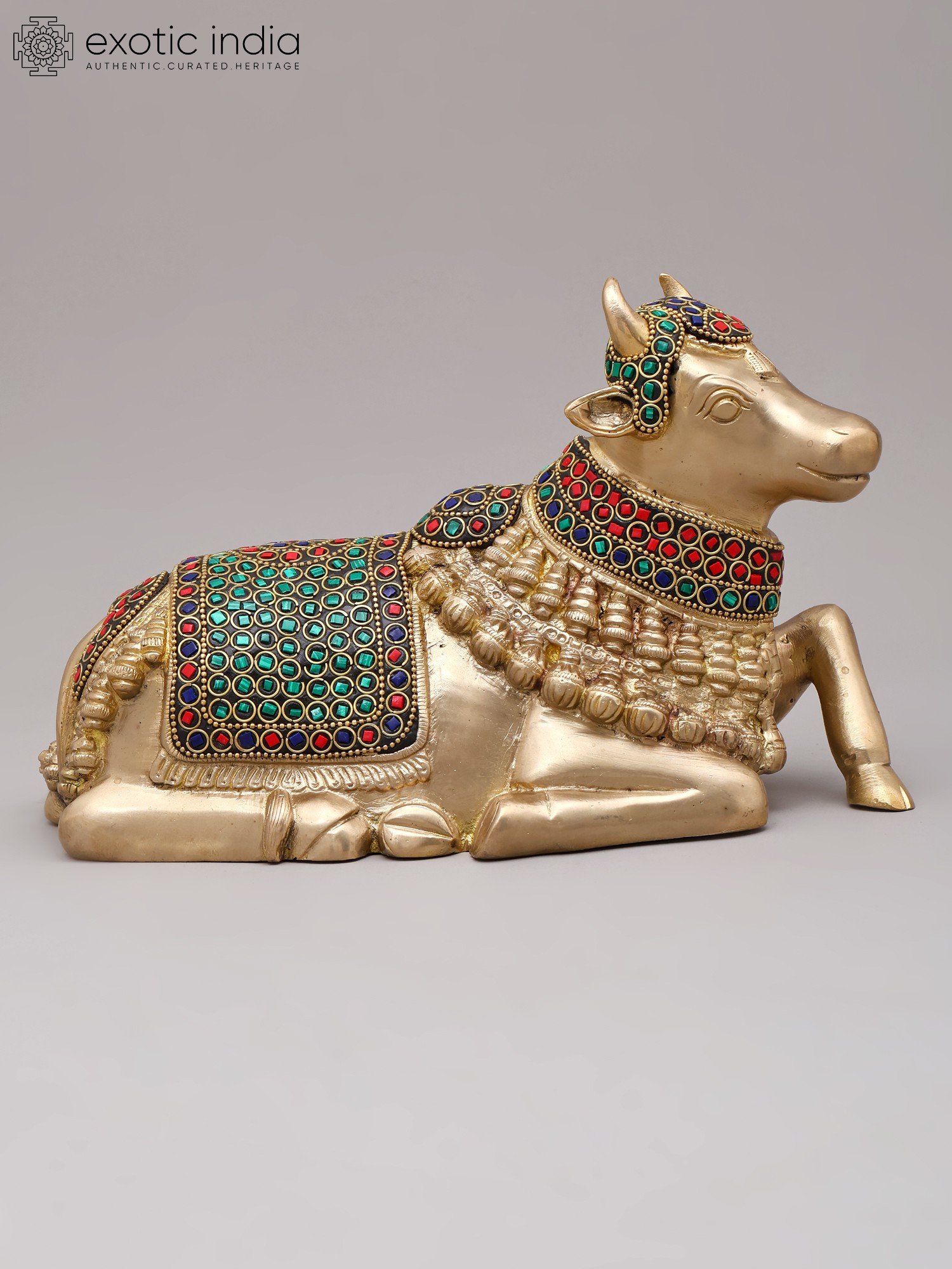 10'' Seated Nandi | Brass With Inlay Work