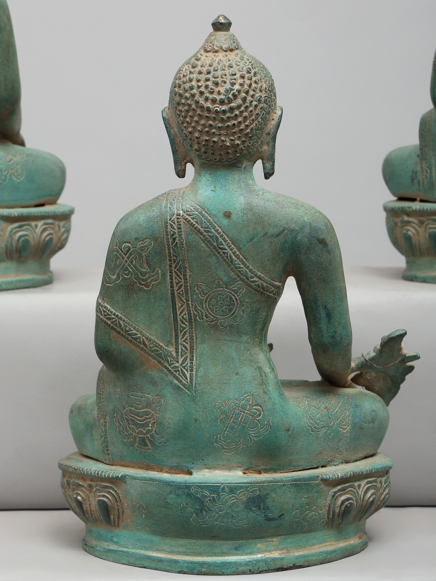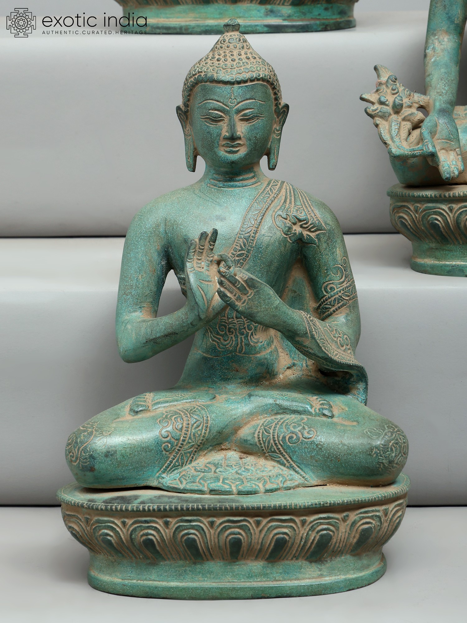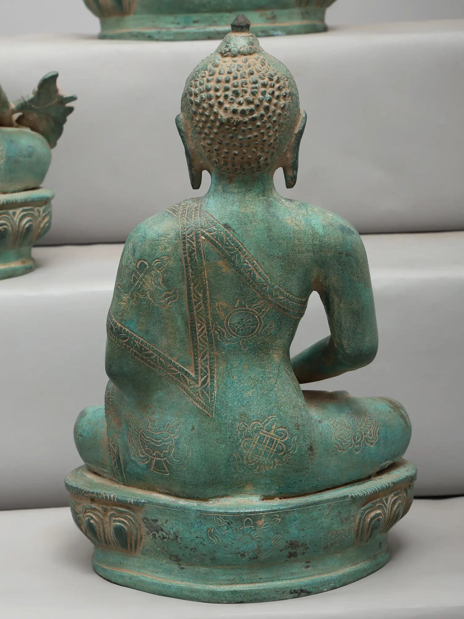 This exquisite set of five brass statues captures the profound essence of Buddhist teachings, each figure meticulously rendered to embody a distinct mudra, or symbolic hand gesture. These are not mere decorative objects but potent conduits of spiritual energy, designed to bring peace, wisdom, and compassion into your living space. The aged patina, a testament to the skilled artistry and traditional casting techniques, evokes a sense of antiquity and deep spiritual resonance. The verdigris finish, reminiscent of ancient bronze unearthed from sacred sites, hints at the timeless nature of the Buddha's message.