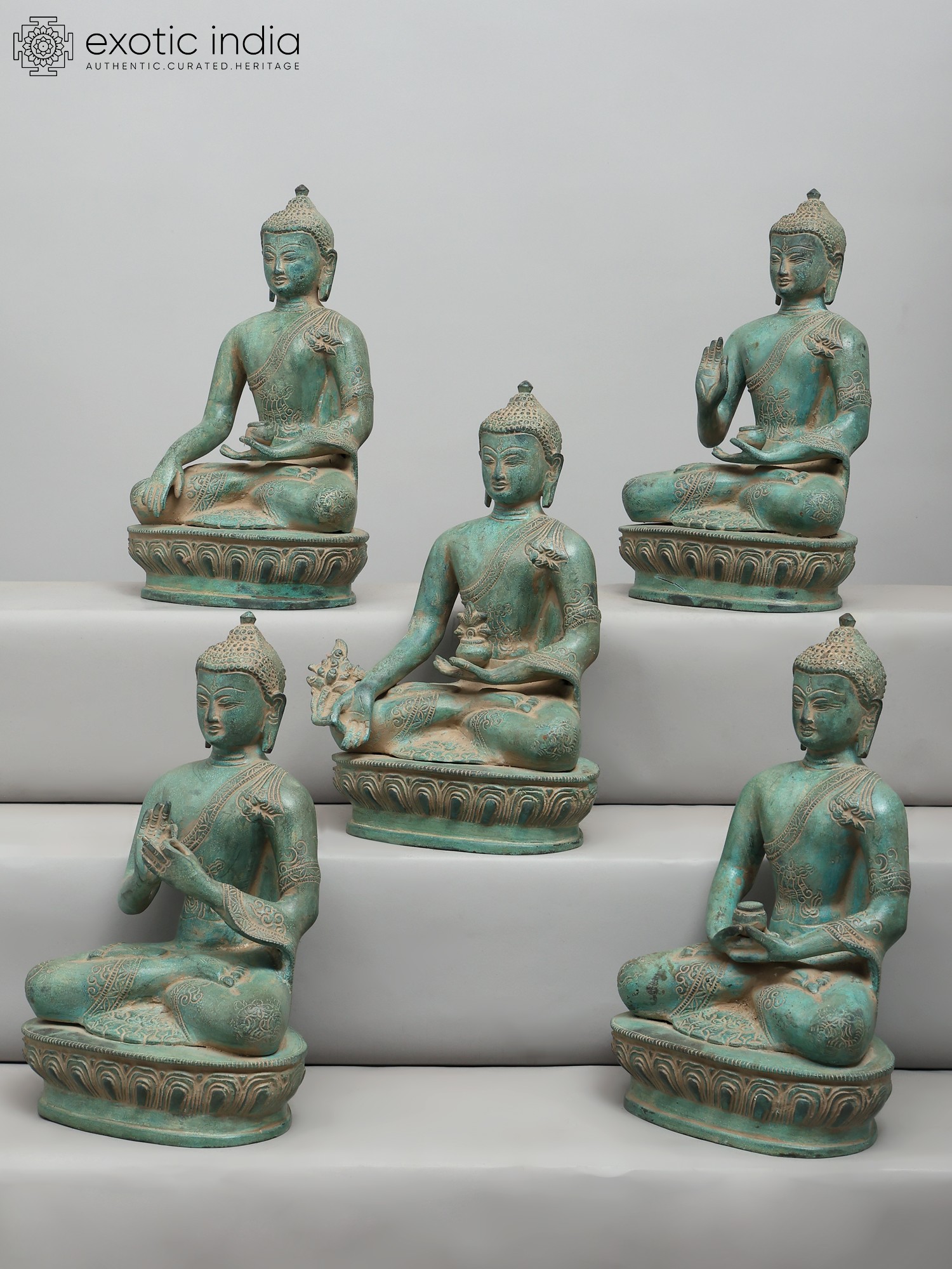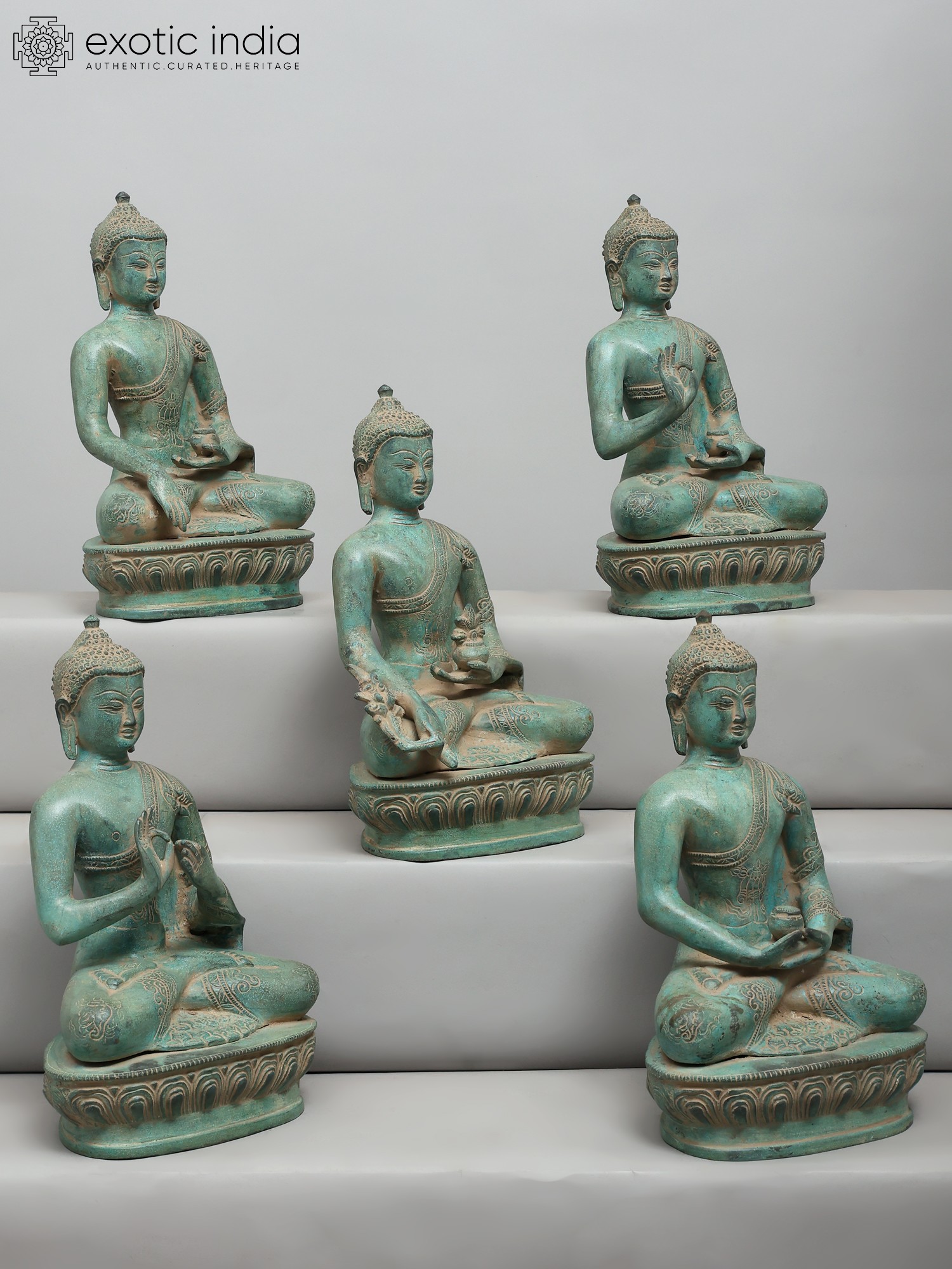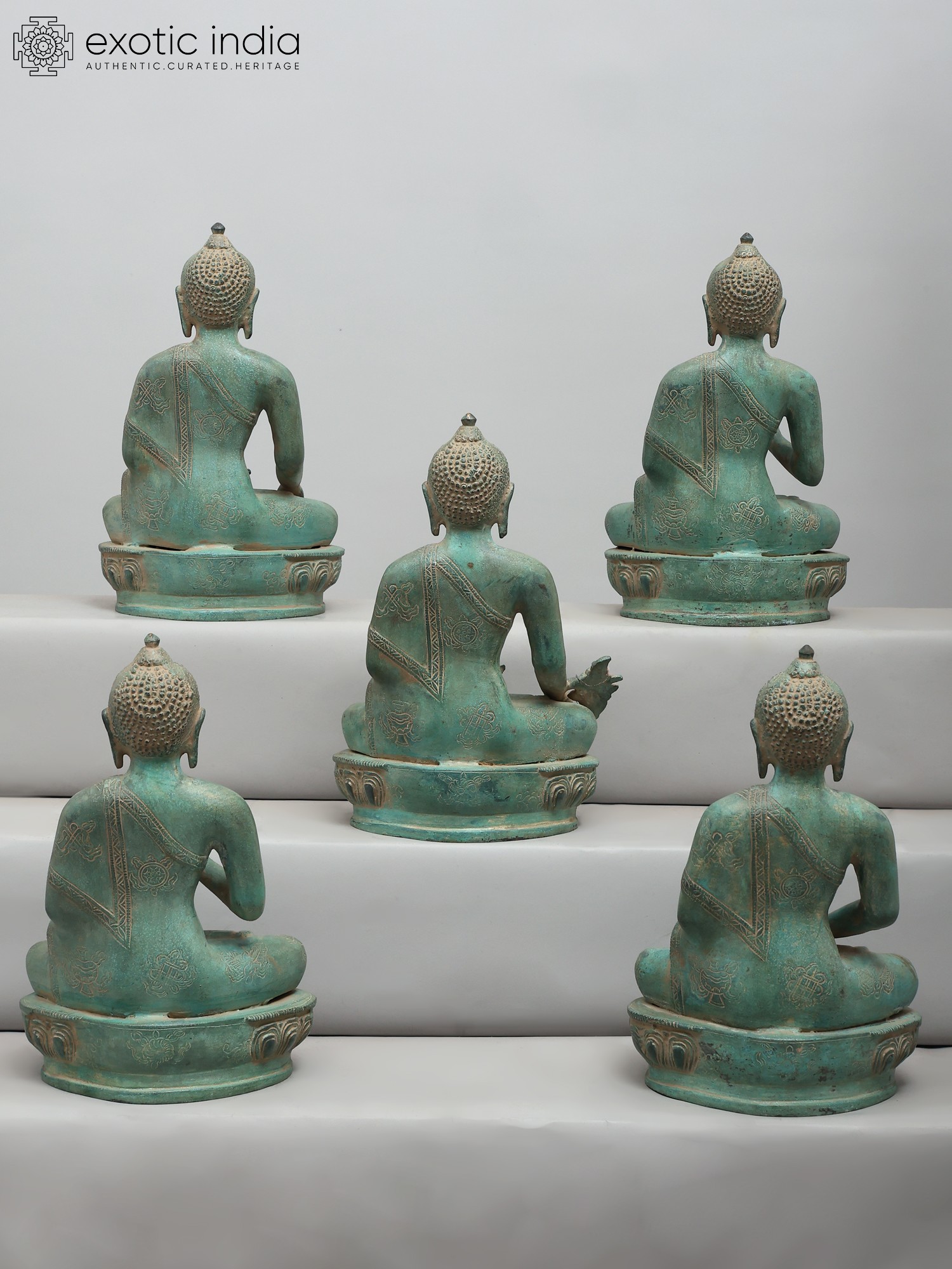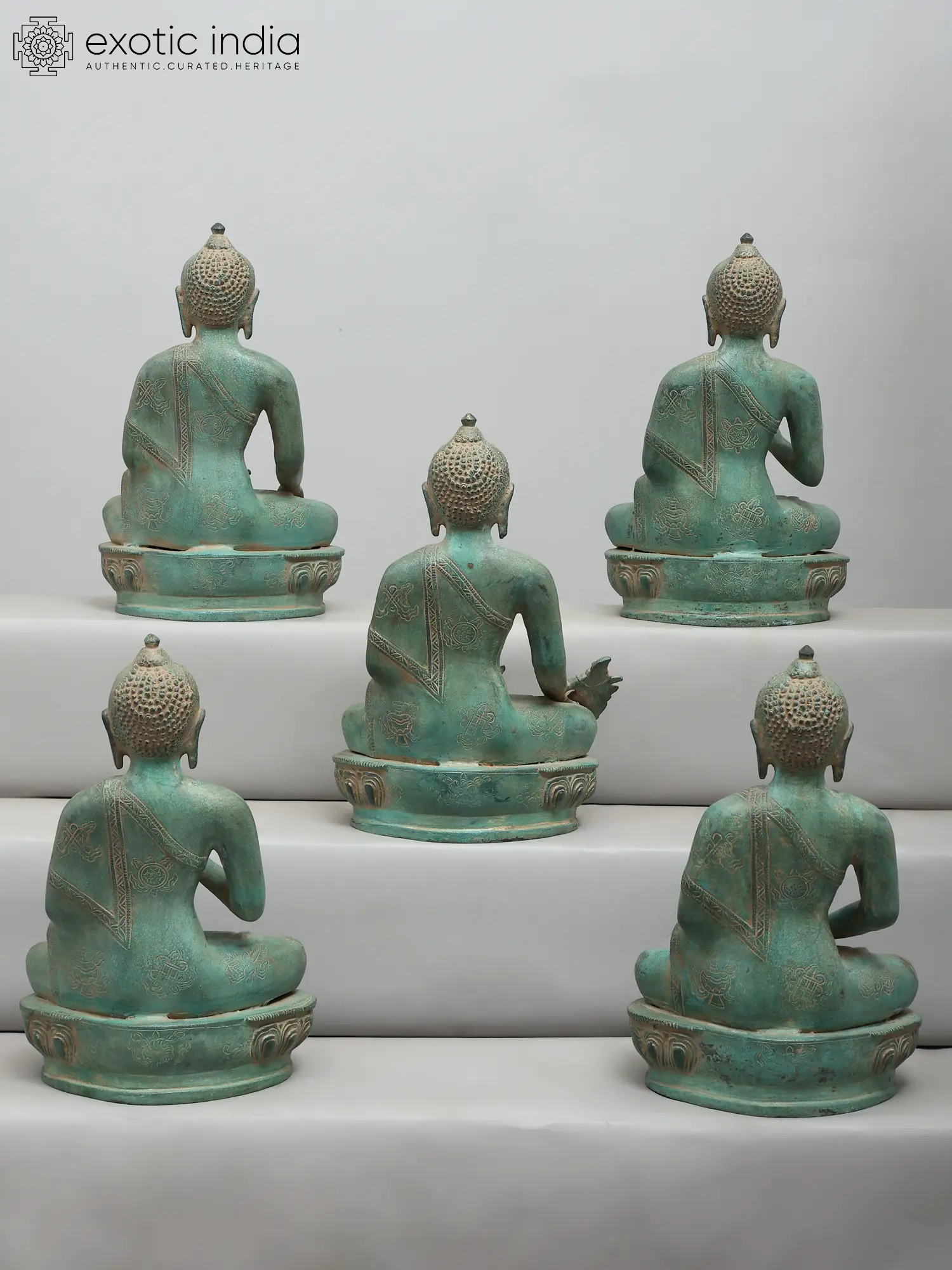 10" Set of Five Buddha Seated in Different Mudras | Brass Statues