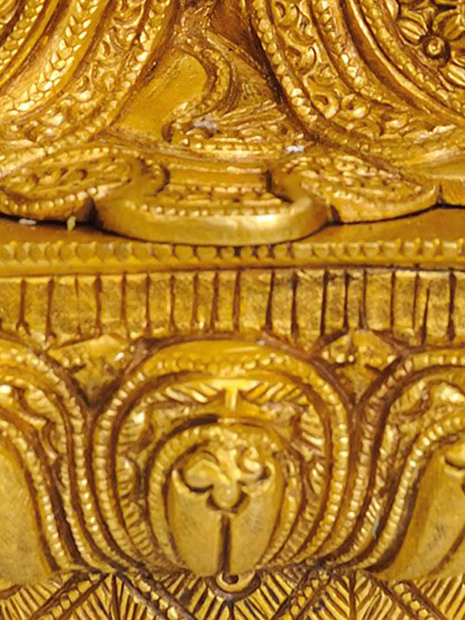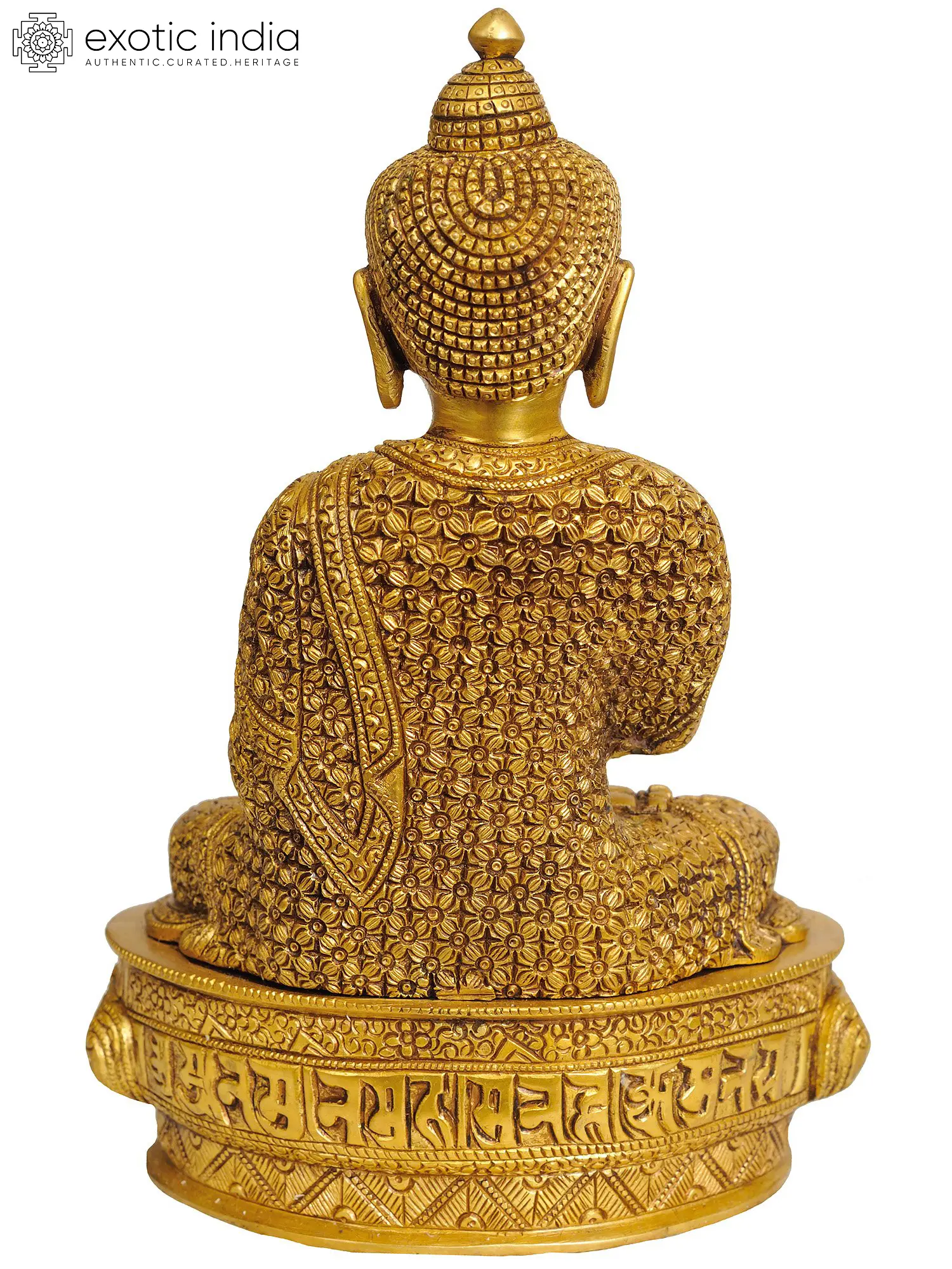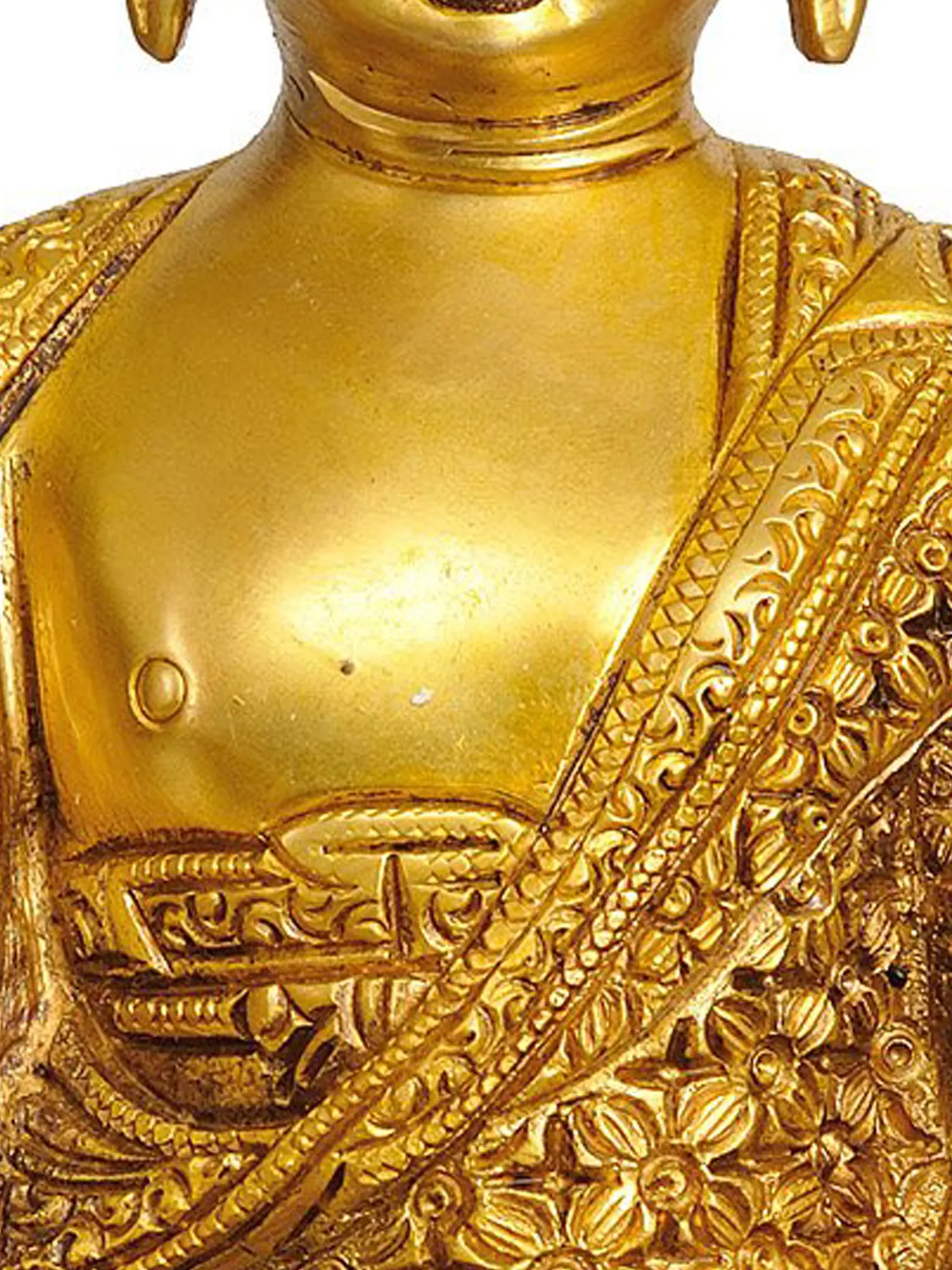 10" Shakyamuni Buddha Preaching His Dharma (with Decorated Robe and Auspicious Symbols on Reverse) In Brass | Handmade | Made In India