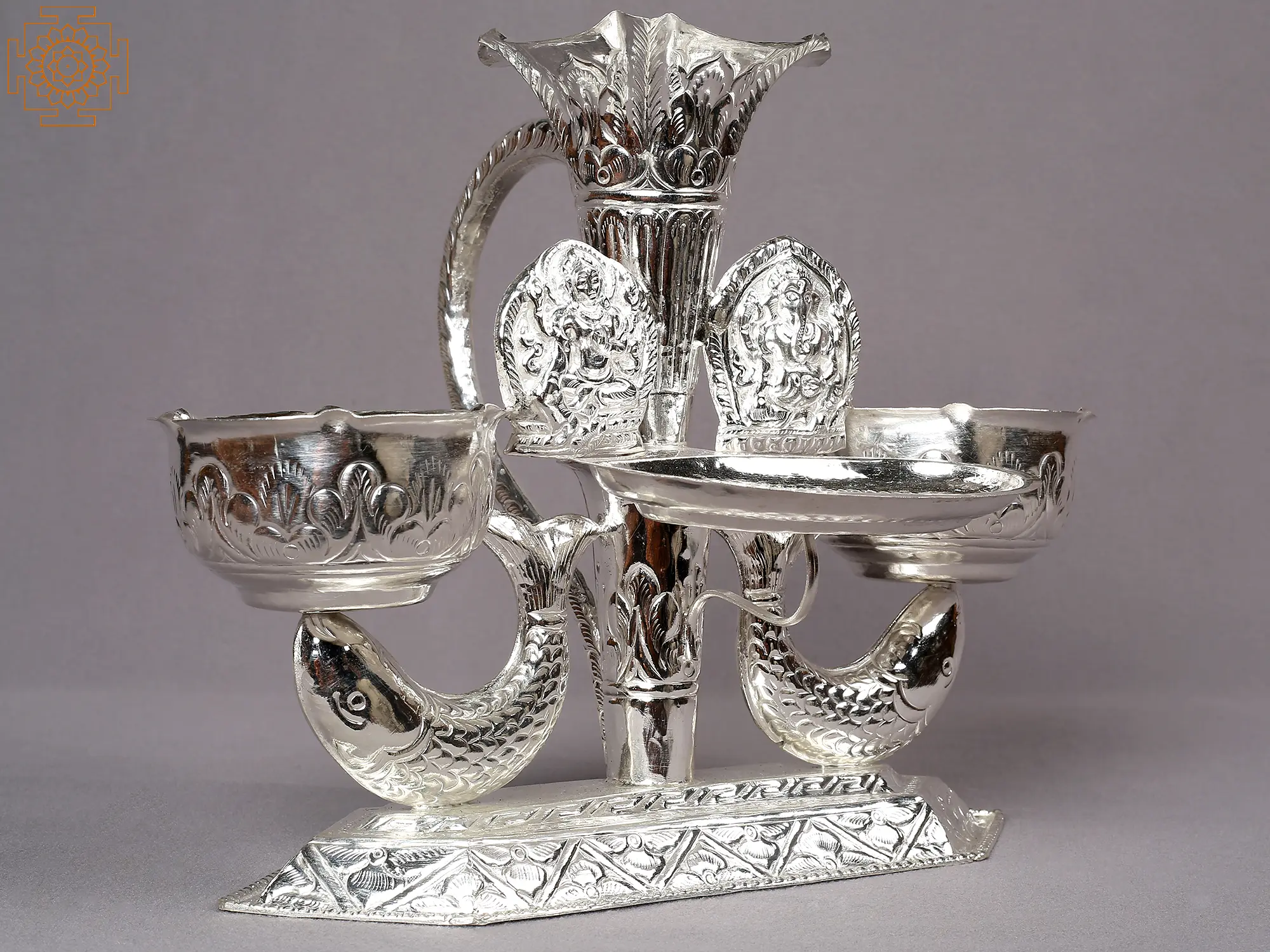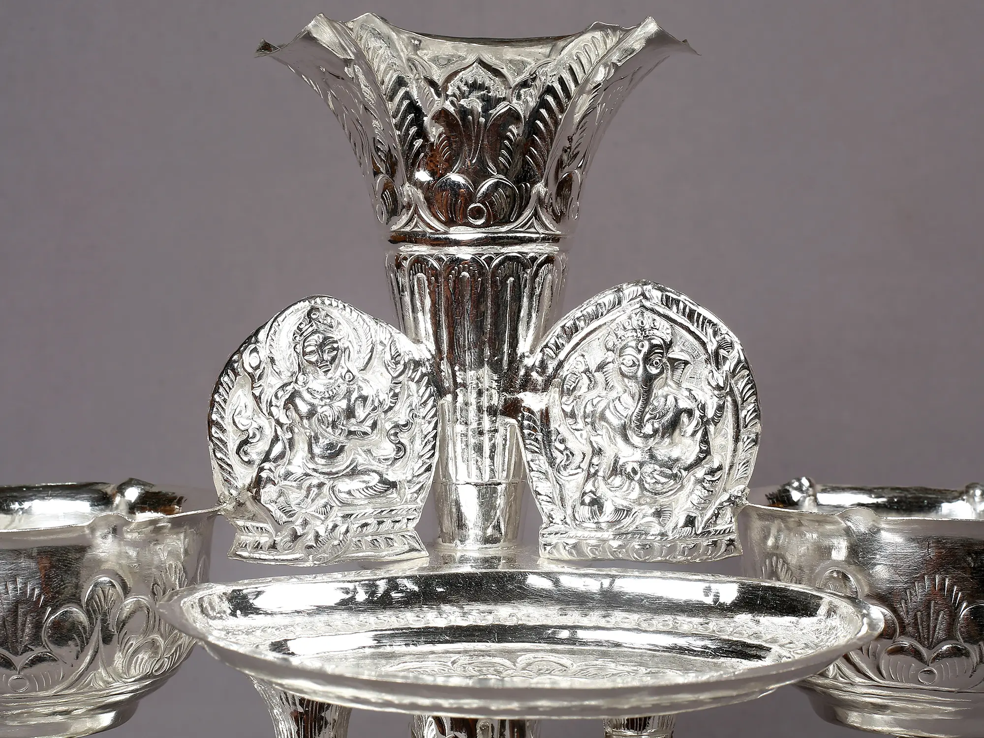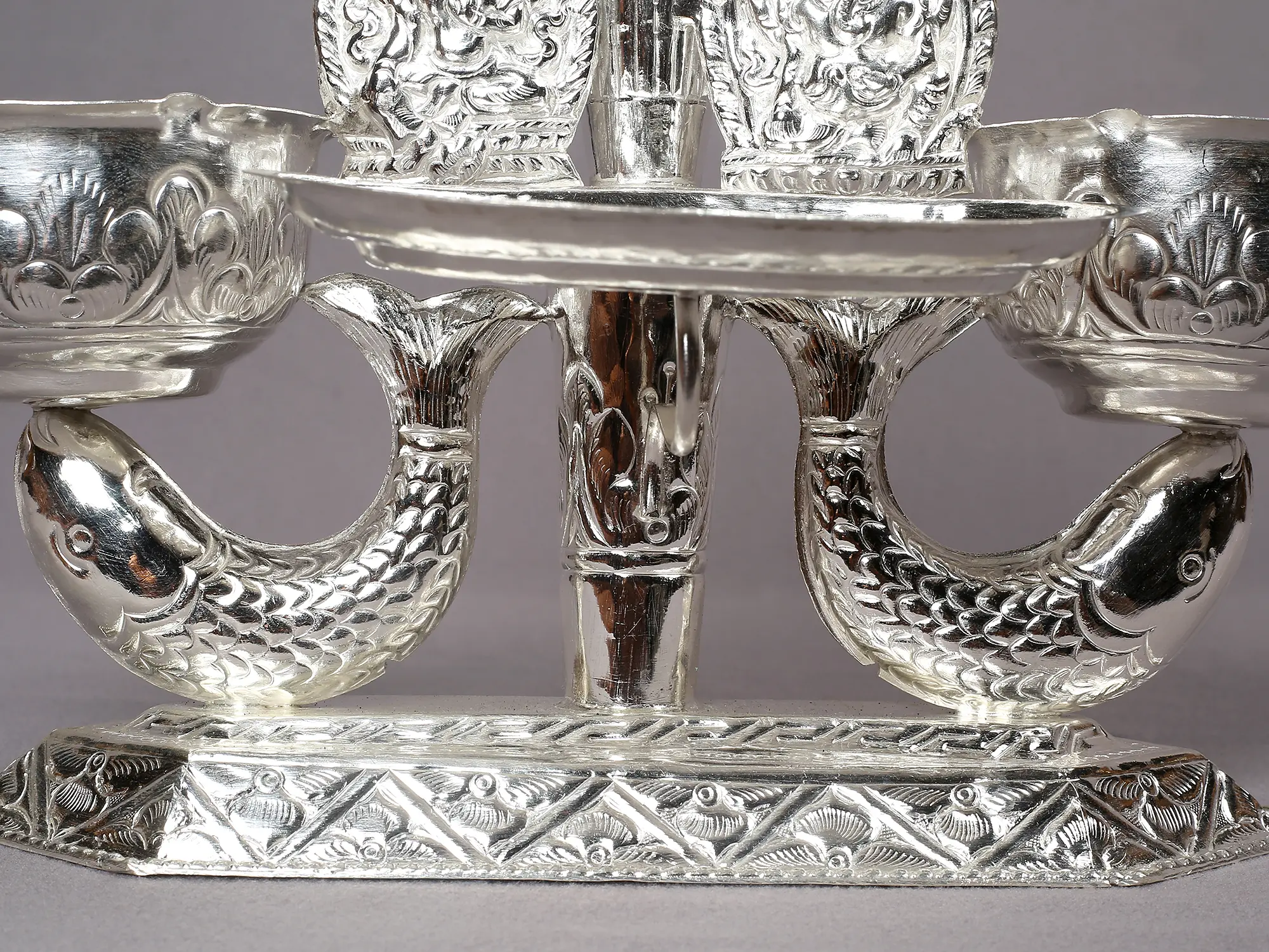 A distinctive silver utensil called a Tikadani is used specifically during Dashain in Nepal. According to Nepalese tradition, it has been used by the people of Nepal for prominent festivals and customs. The goddess Lakshmi and the god Ganesha are engraved on the silver in this masterpiece, which is joined to silver bowls that are held up by a lovely fish image at the bottom. It is extremely glossy due to the pure silver plating. Tikadani is a holy component of Nepalese customs, especially when the start of celebrations like Dashain takes place.