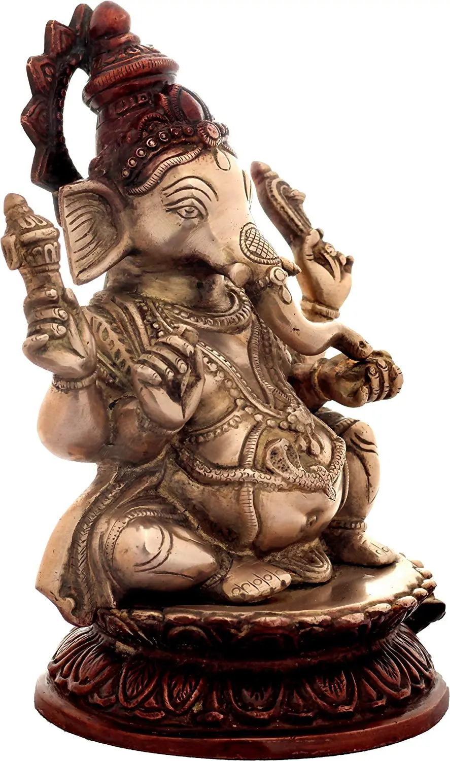 Invite the benevolent presence of Lord Ganesha into your home with this exquisitely crafted brass idol. Symbolizing wisdom, prosperity, and good fortune, this statue is a testament to traditional Indian artistry and spiritual devotion. Lord Ganesha, the beloved elephant-headed deity, is revered as the remover of obstacles and the patron of arts and sciences. His image is considered auspicious, invoked at the beginning of any new endeavor to ensure success and overcome challenges.
