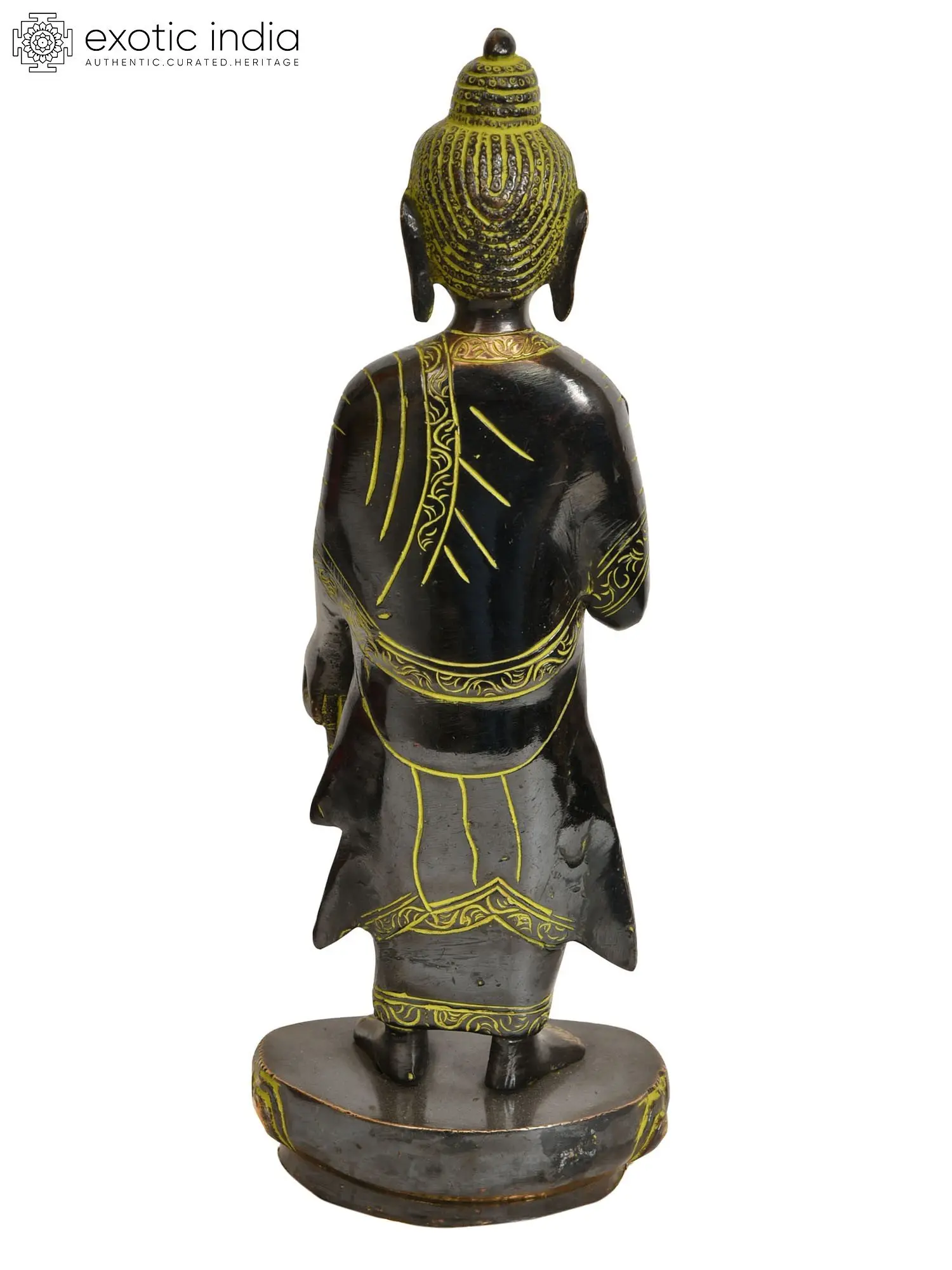 10" Standing Buddha Brass Statue | Handmade Tibetan Buddhist Deity Idols | Made in India