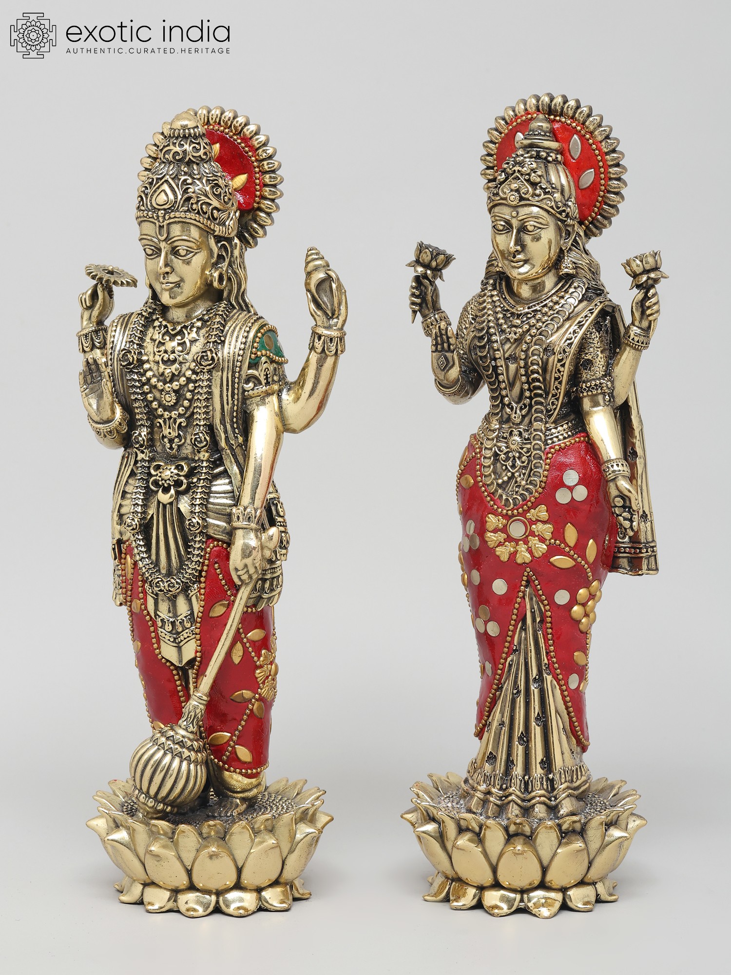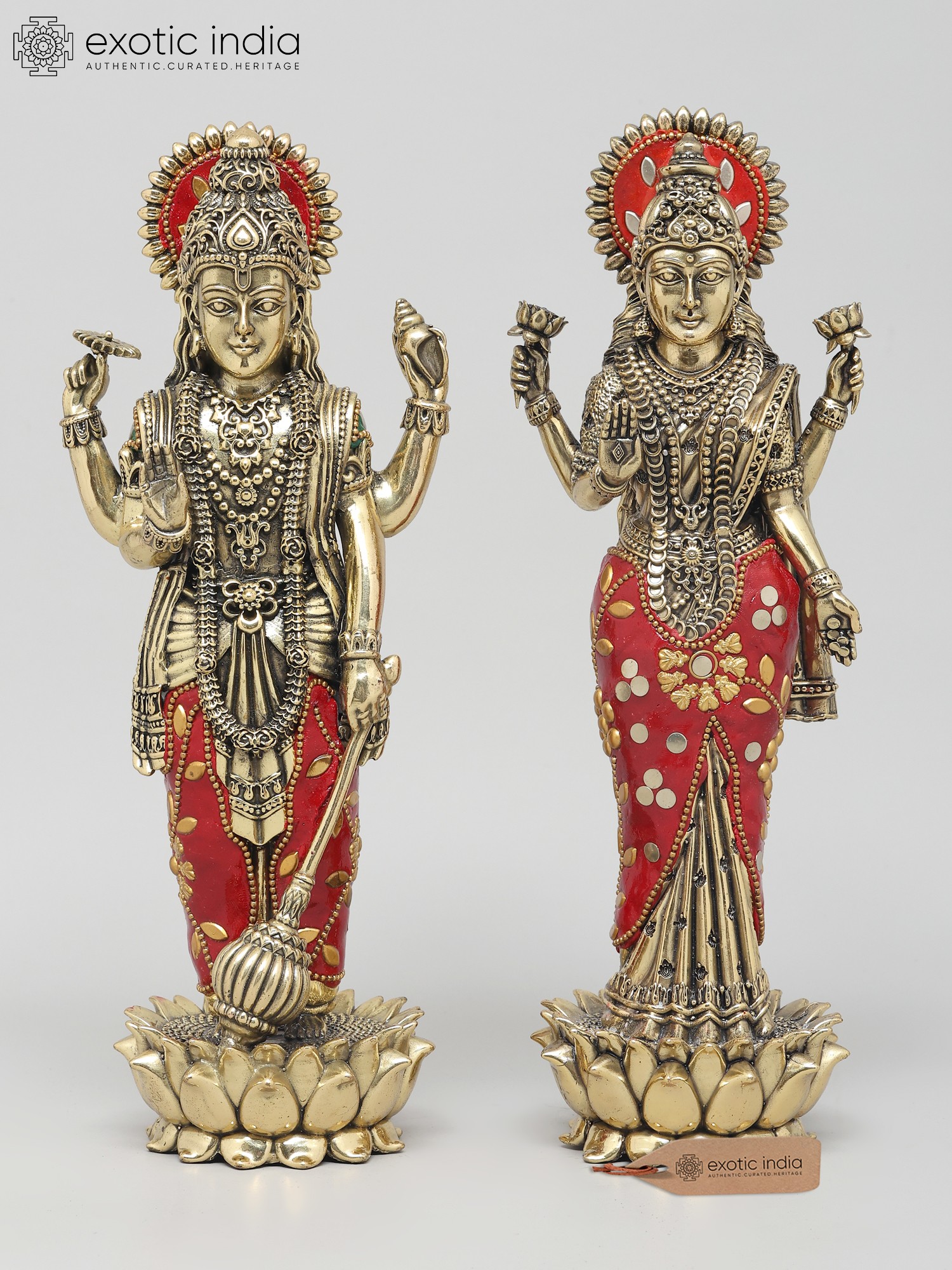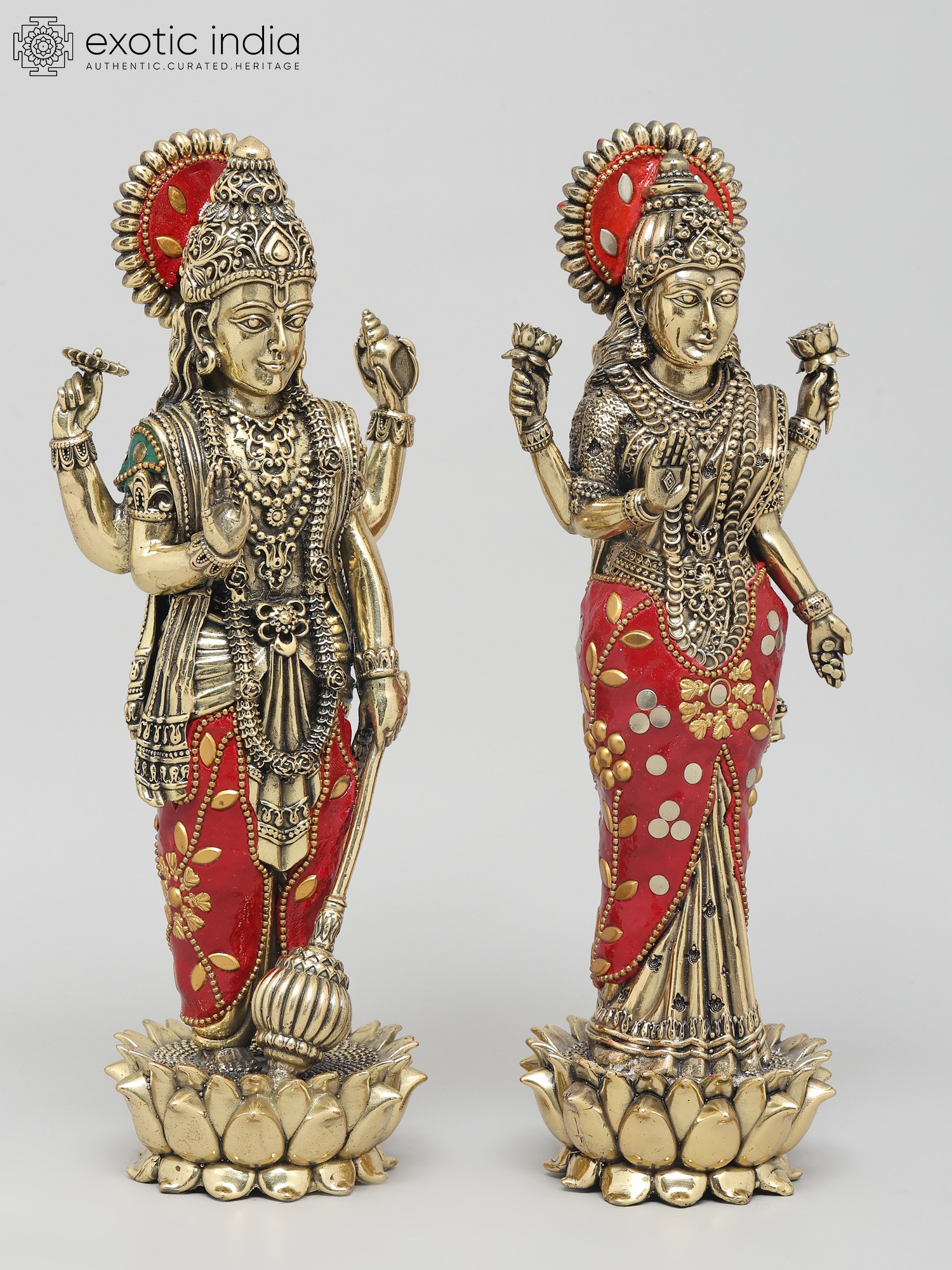18" Lord Vishnu and Lakshmi Ji Inlay Work Brass Statue | Handmade