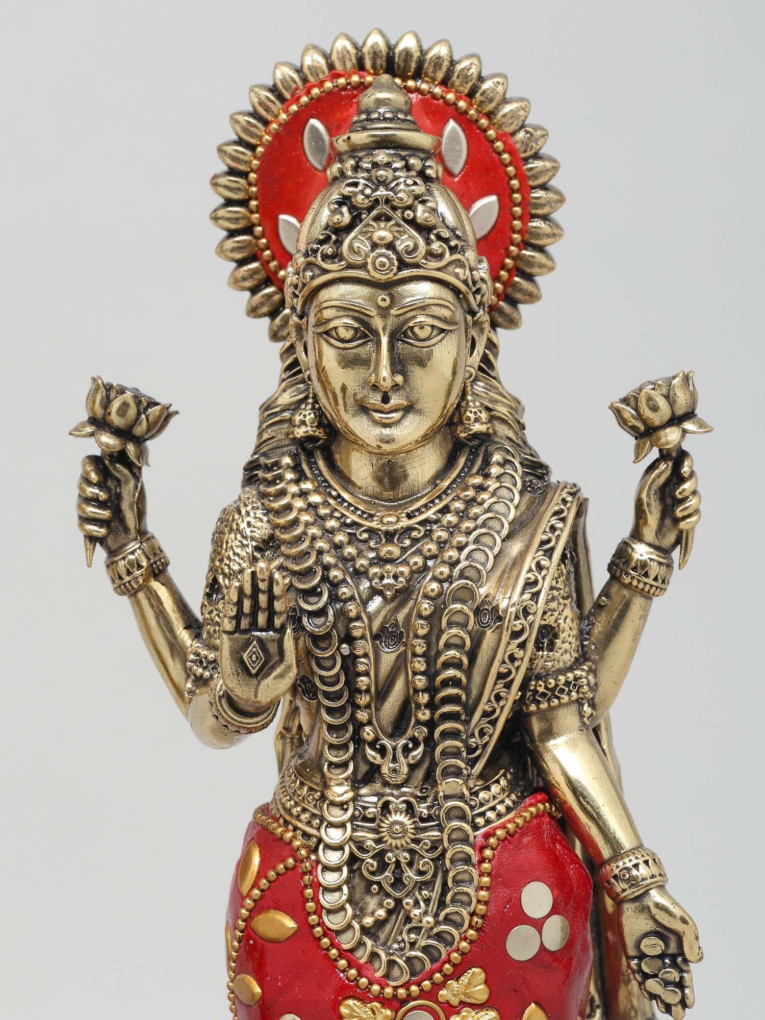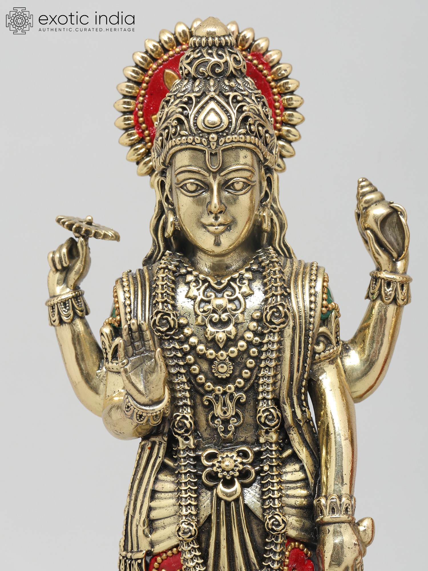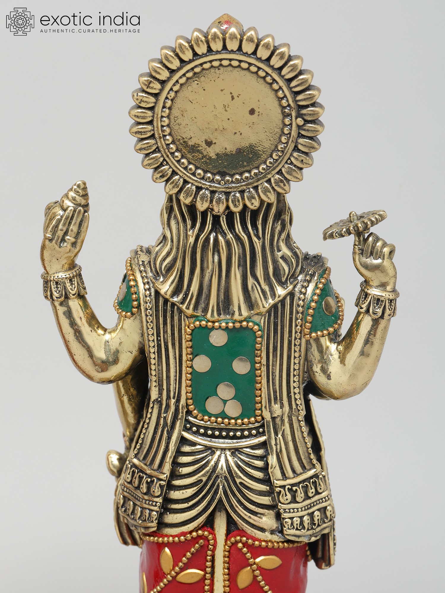 18" Lord Vishnu and Lakshmi Ji Inlay Work Brass Statue | Handmade