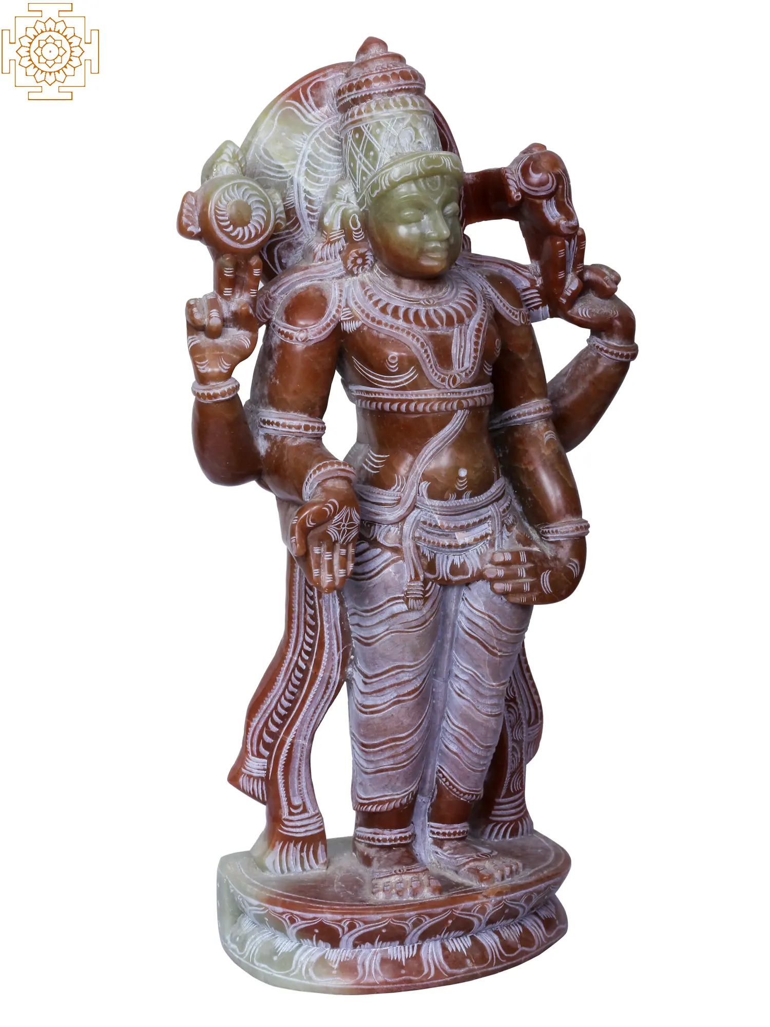 12'' Lord Vishnu Standing With Kaumodaki | Stone Statue