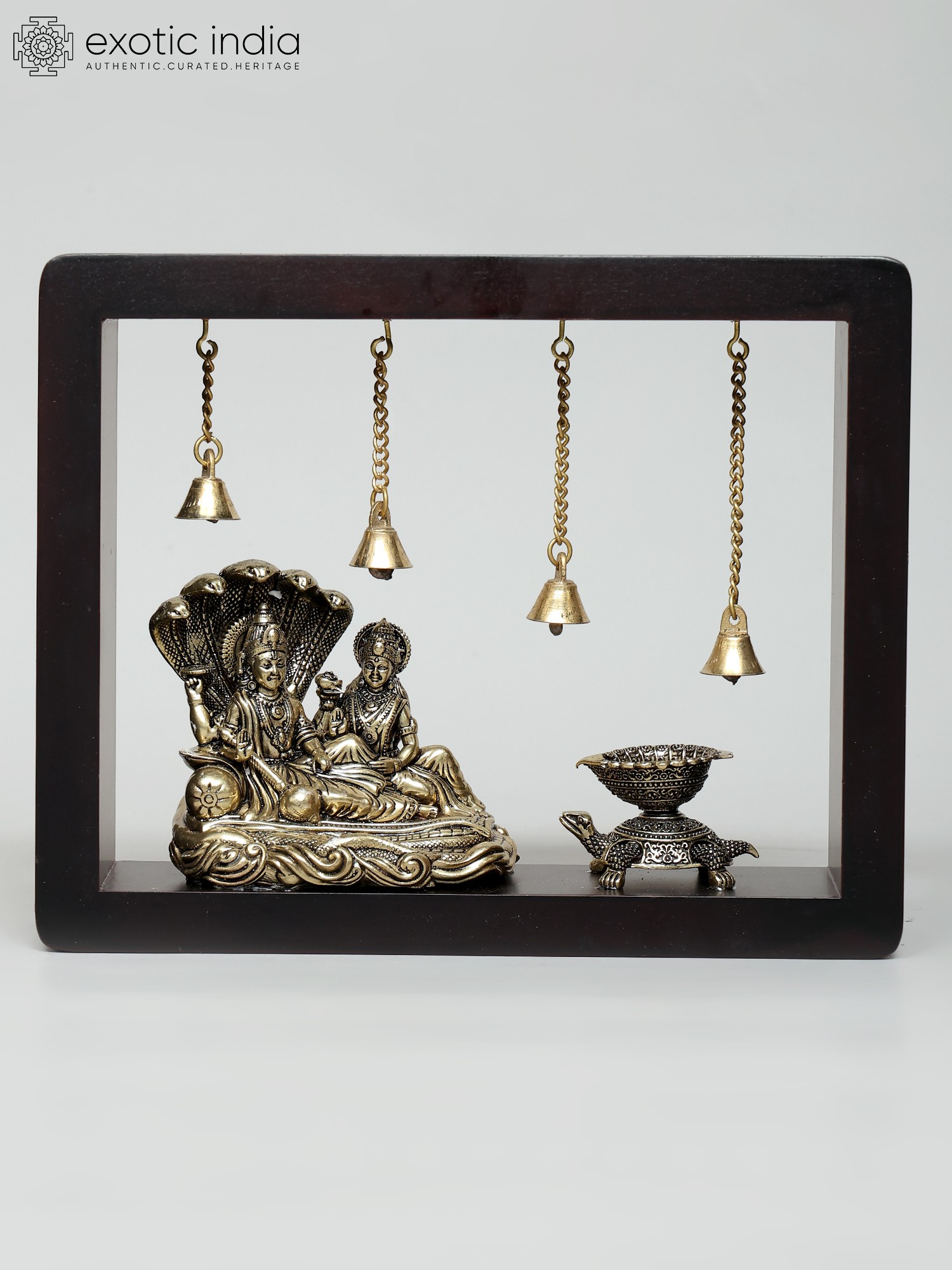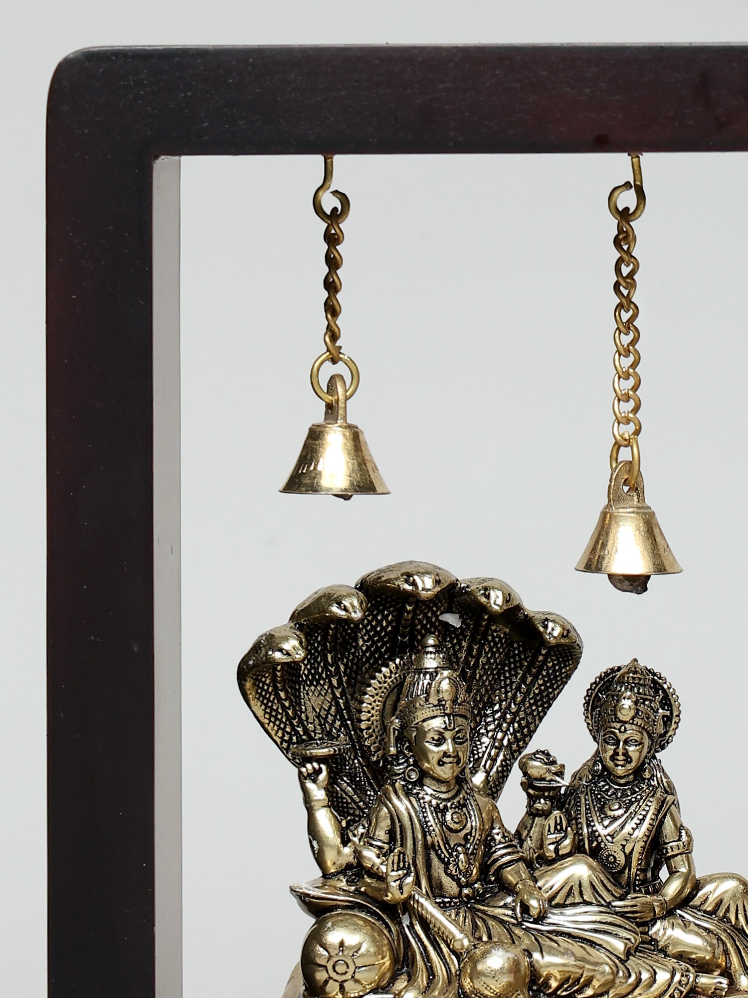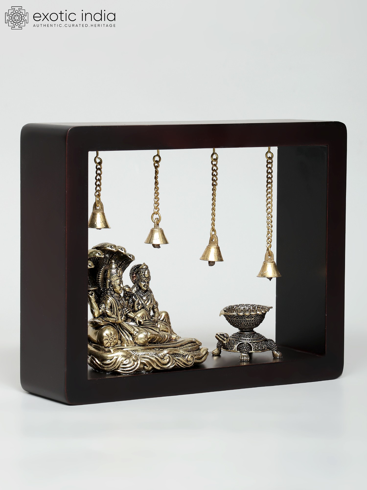 9" Superfine Standing Radha Krishna | Wood Framed Brass Sculptures | Wall Hanging