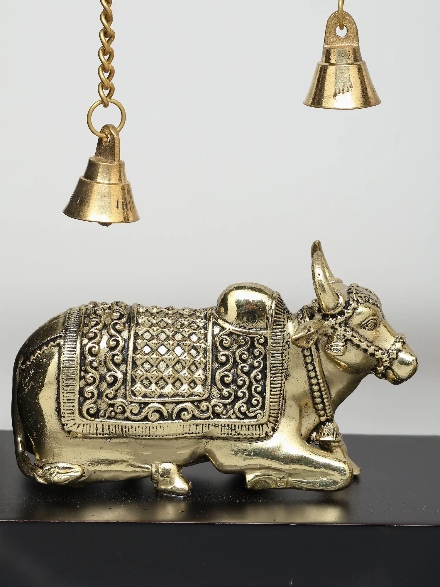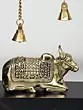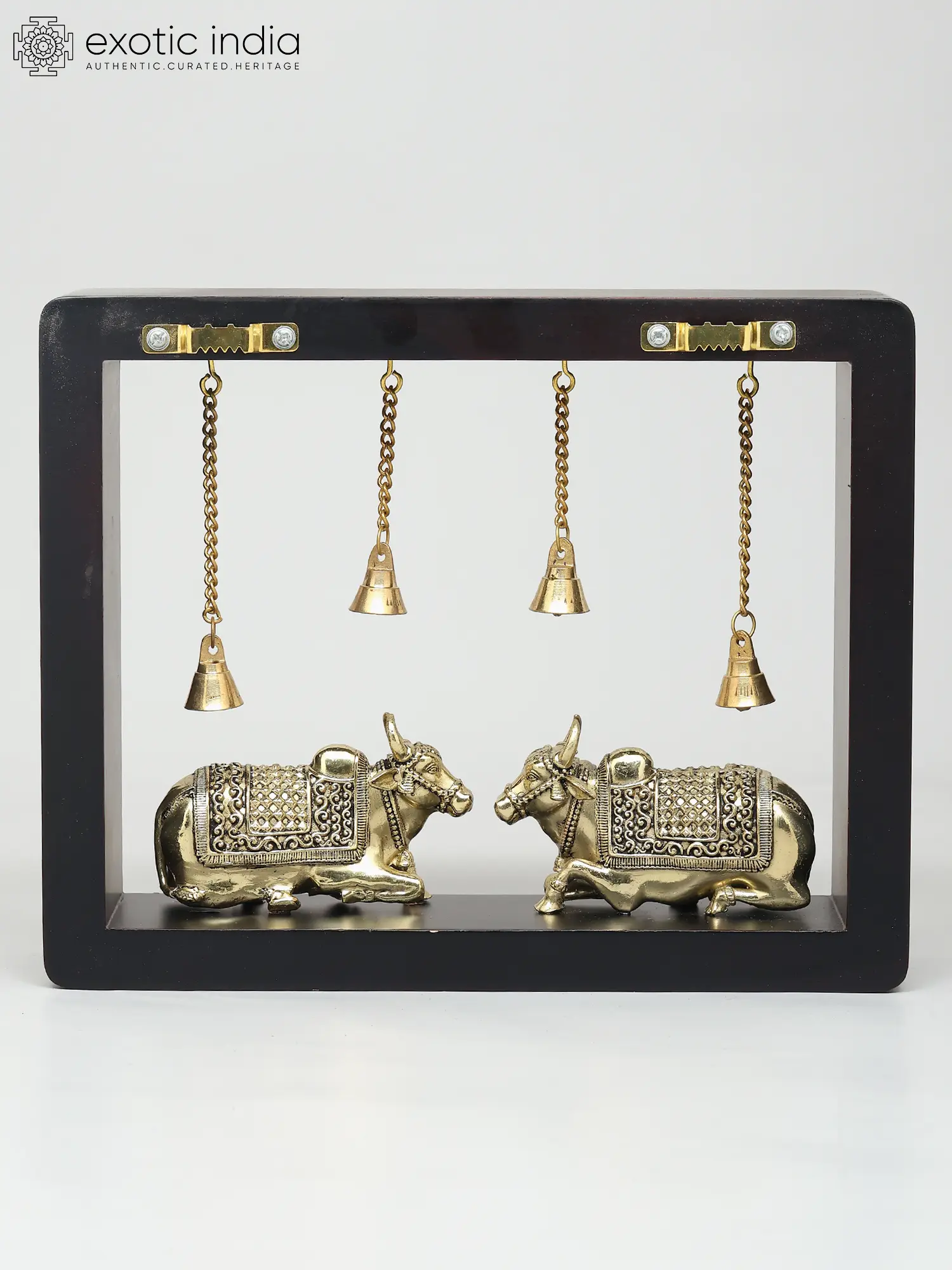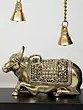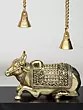 10" Ganesha Dancing Nestled in Trunk of Ganesha: Lamp and Temple Bell Wall-Hanging in Brass