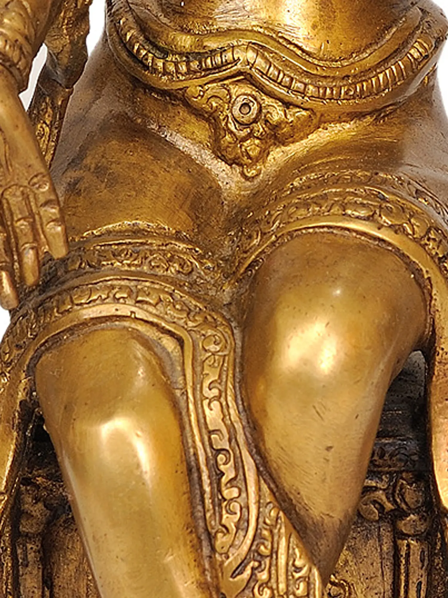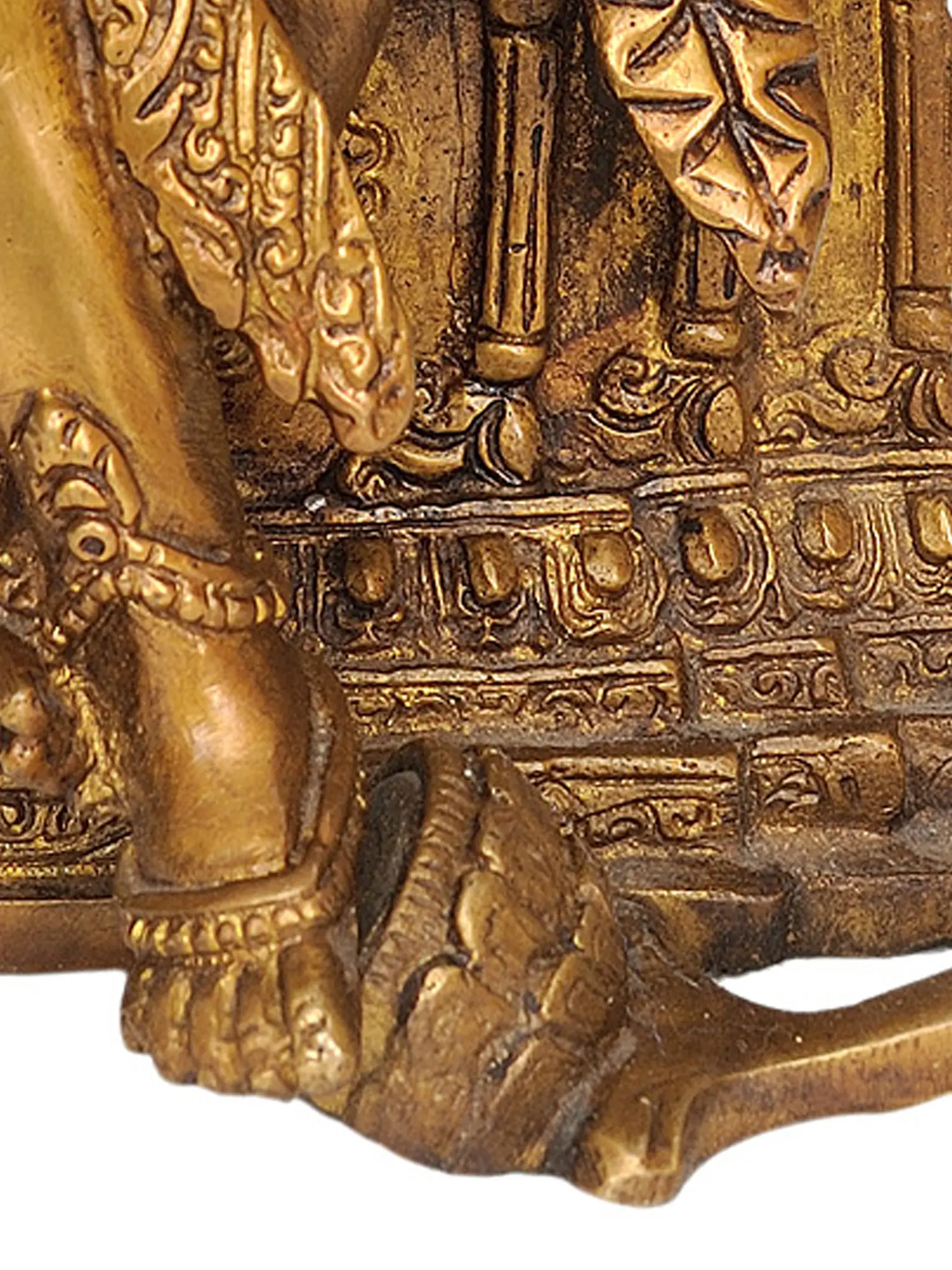 The Goddess Tara, an exquisitely handcrafted brass portrayal of a Tibetan Buddhist deity, is presented here in the center of India's artisanal tradition. This magnificent artwork honors Tara, the personification of wisdom and compassion. Dedicated and expertly crafted, it bears witness to India's illustrious past. Crafted with affection, this work of art not only exudes peace but also infuses any area with a hint of the sacred. Born from the artistic heart of India, the Goddess Tara encourages you to absorb the wisdom and tranquillity of this respected Tibetan deity.