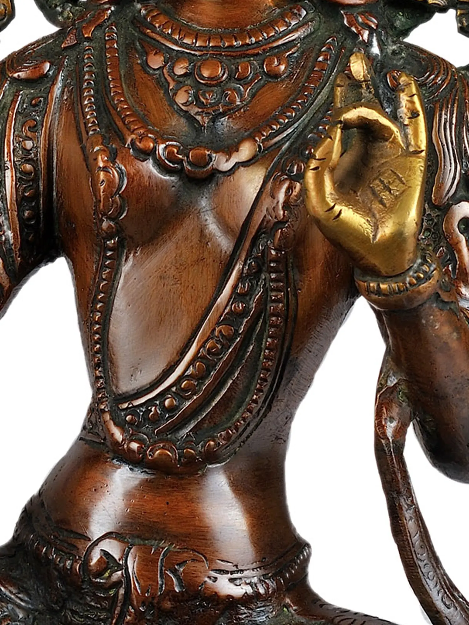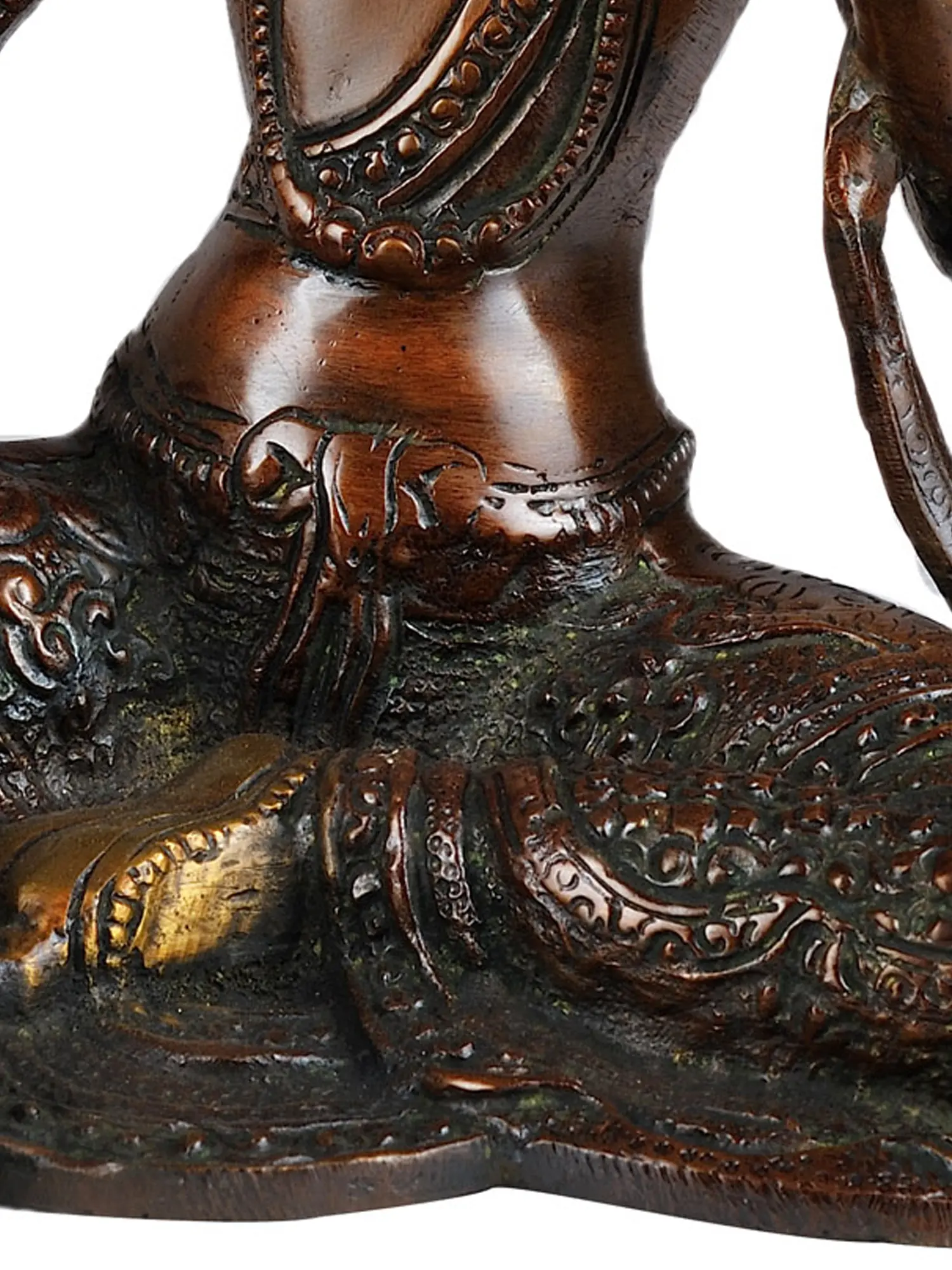 10" Tibetan Buddhist Goddess Green Tara in Brown and Golden Hues In Brass | Handmade | Made In India