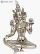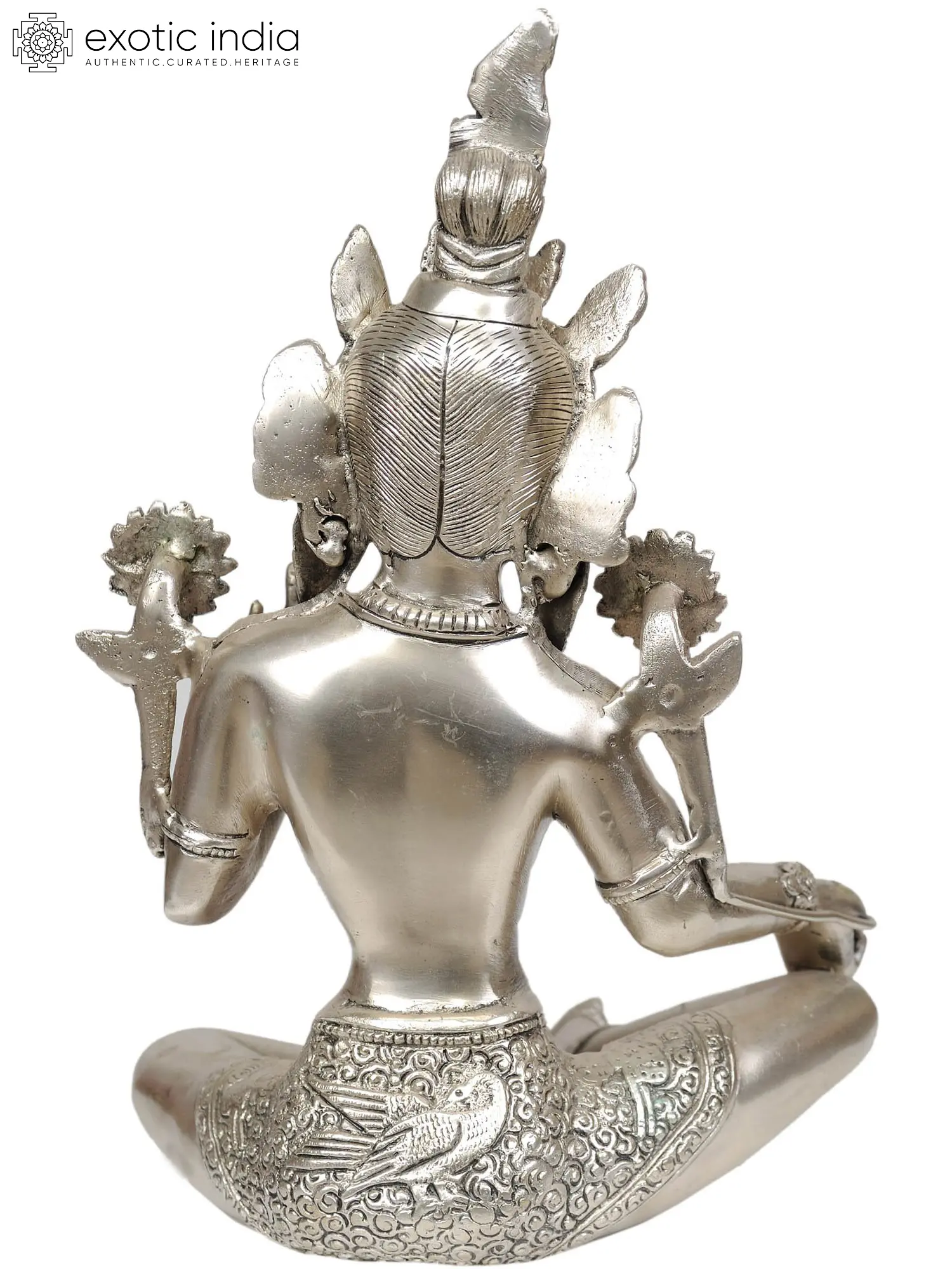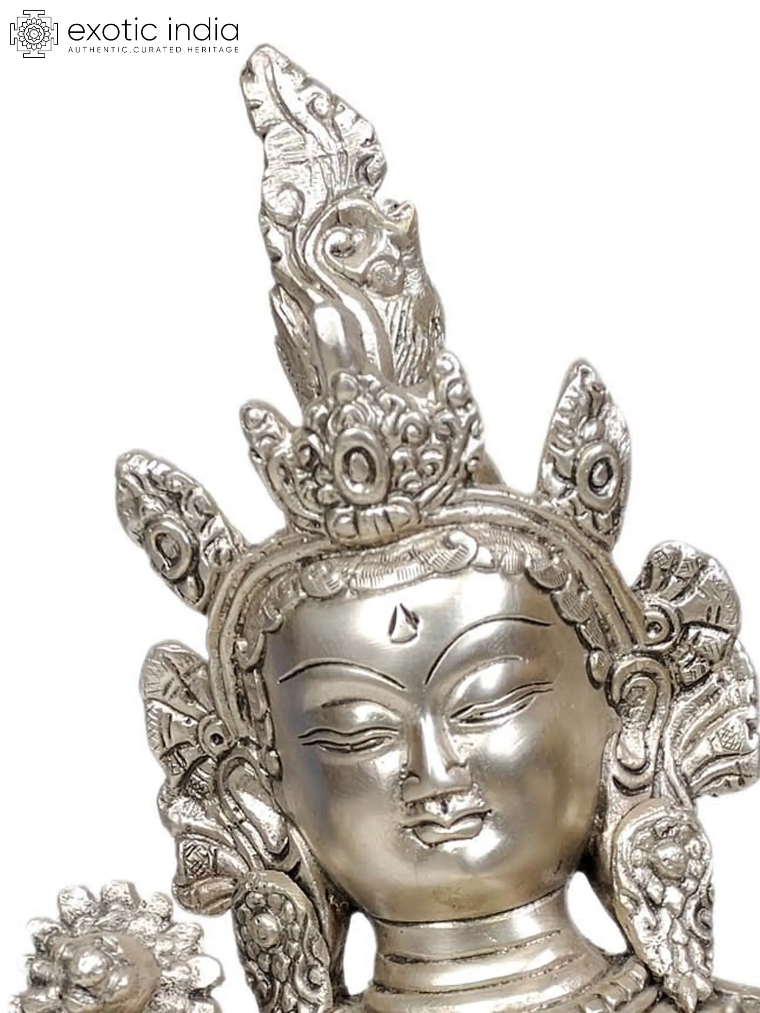 10" Tibetan Buddhist Goddess Green Tara (In Silver Hue) In Brass | Handmade | Made In India