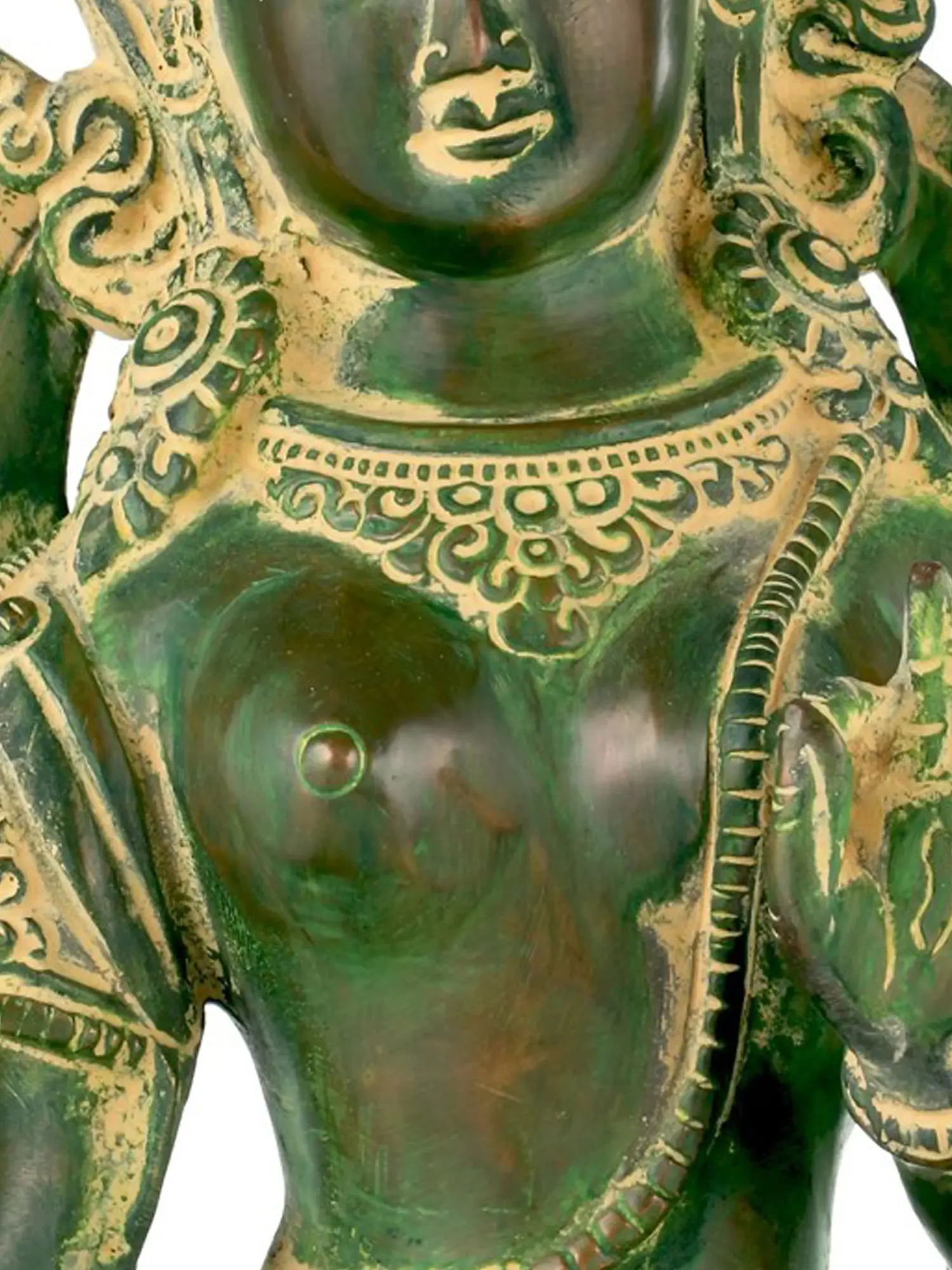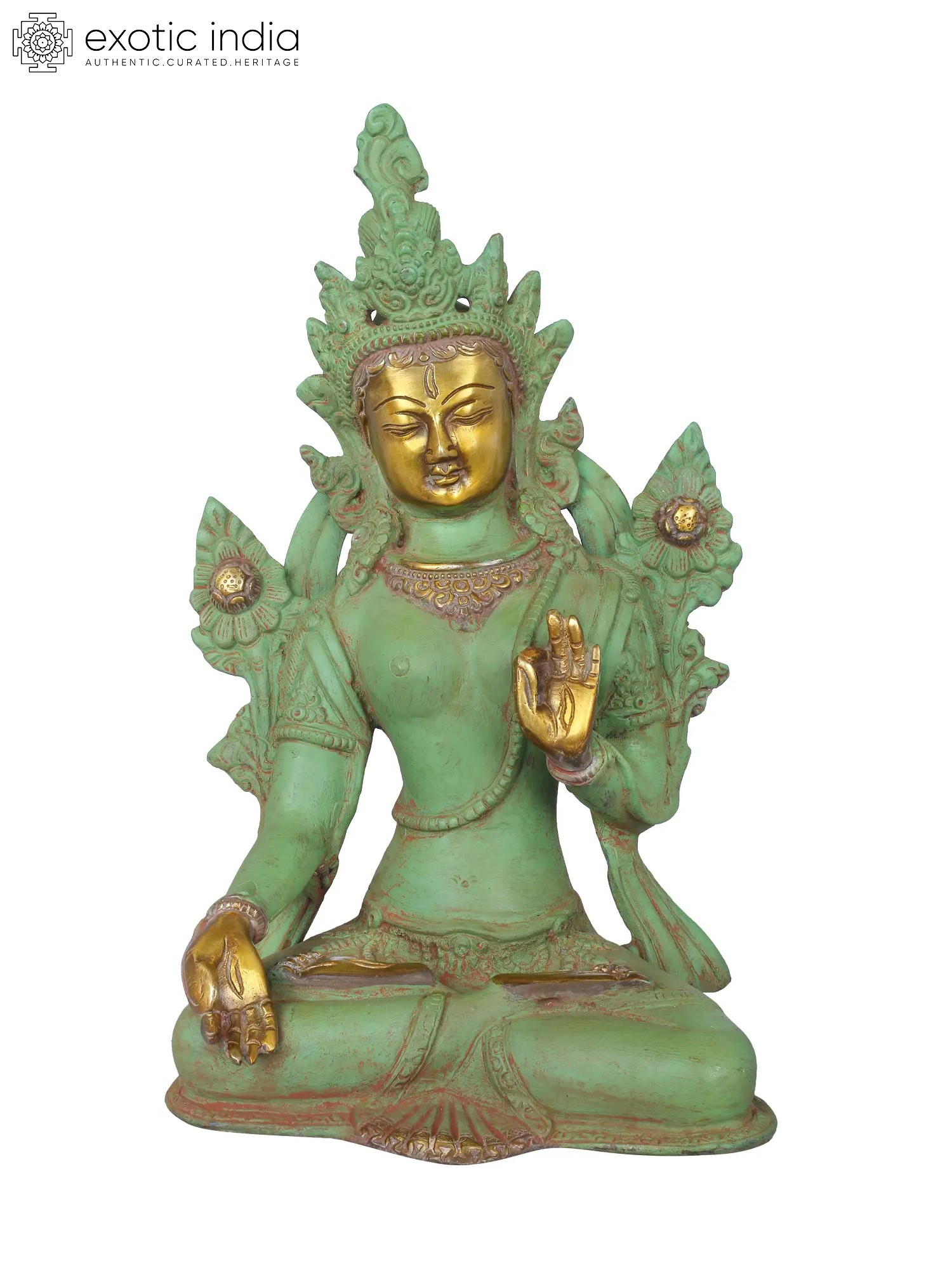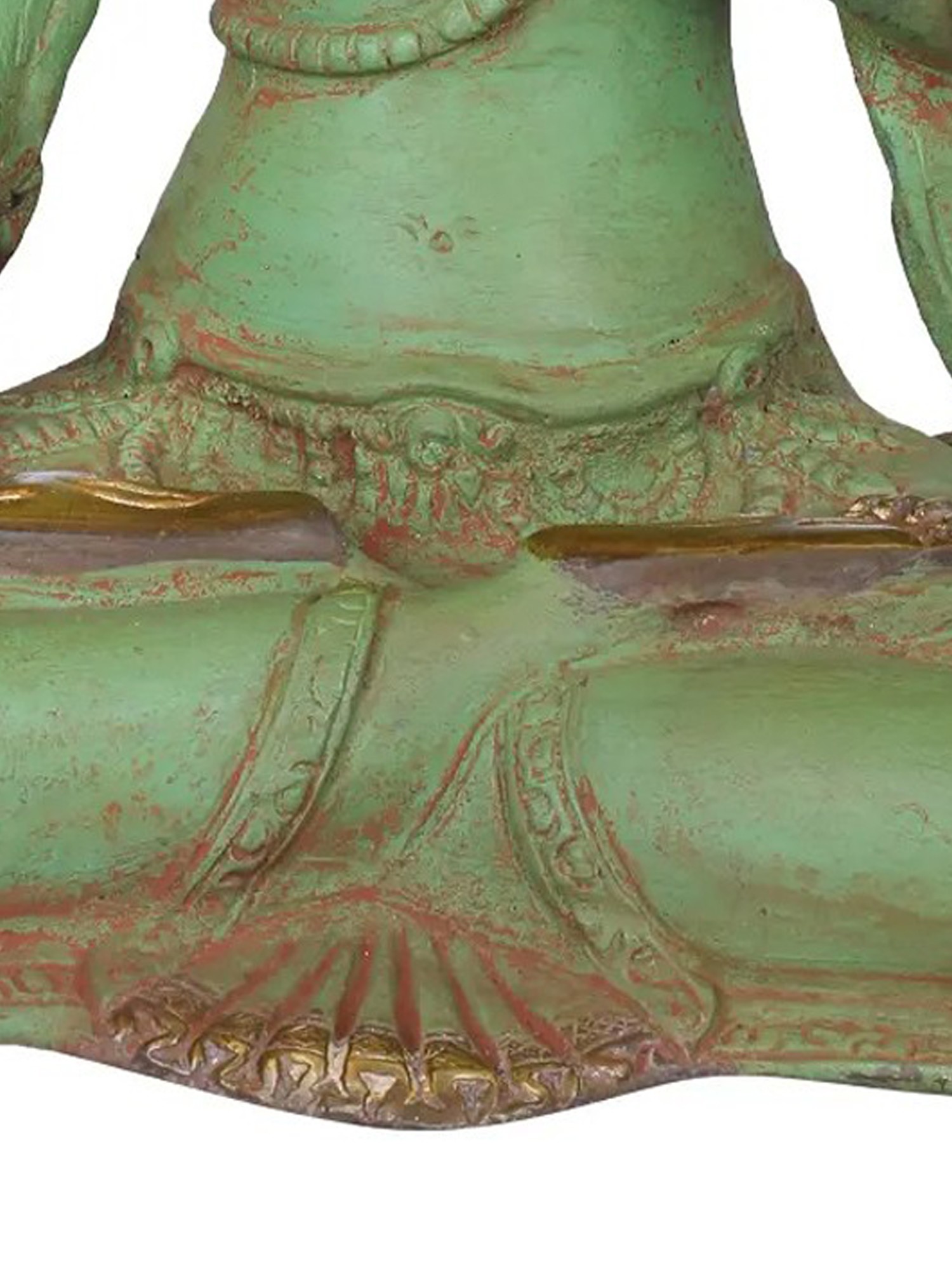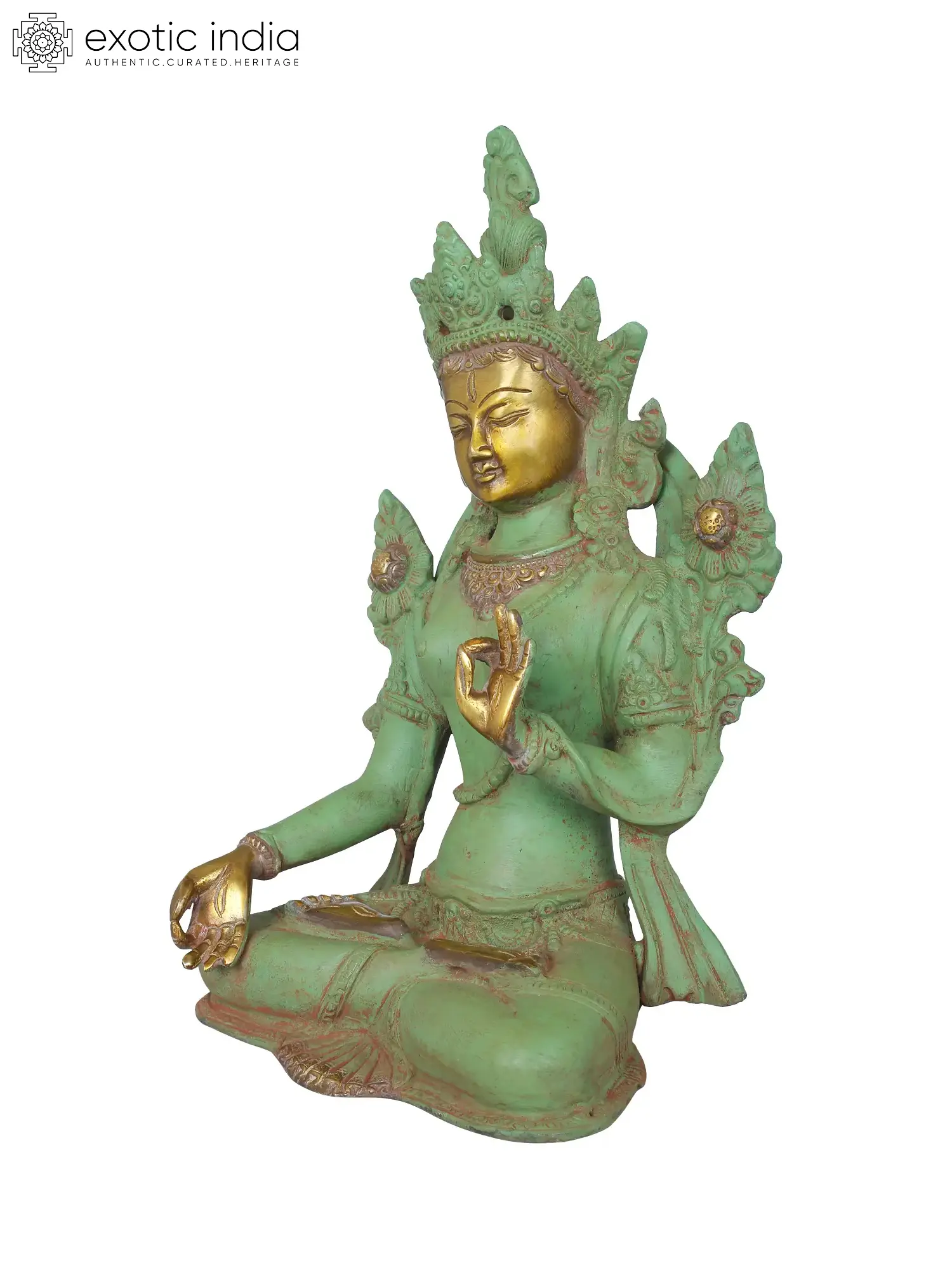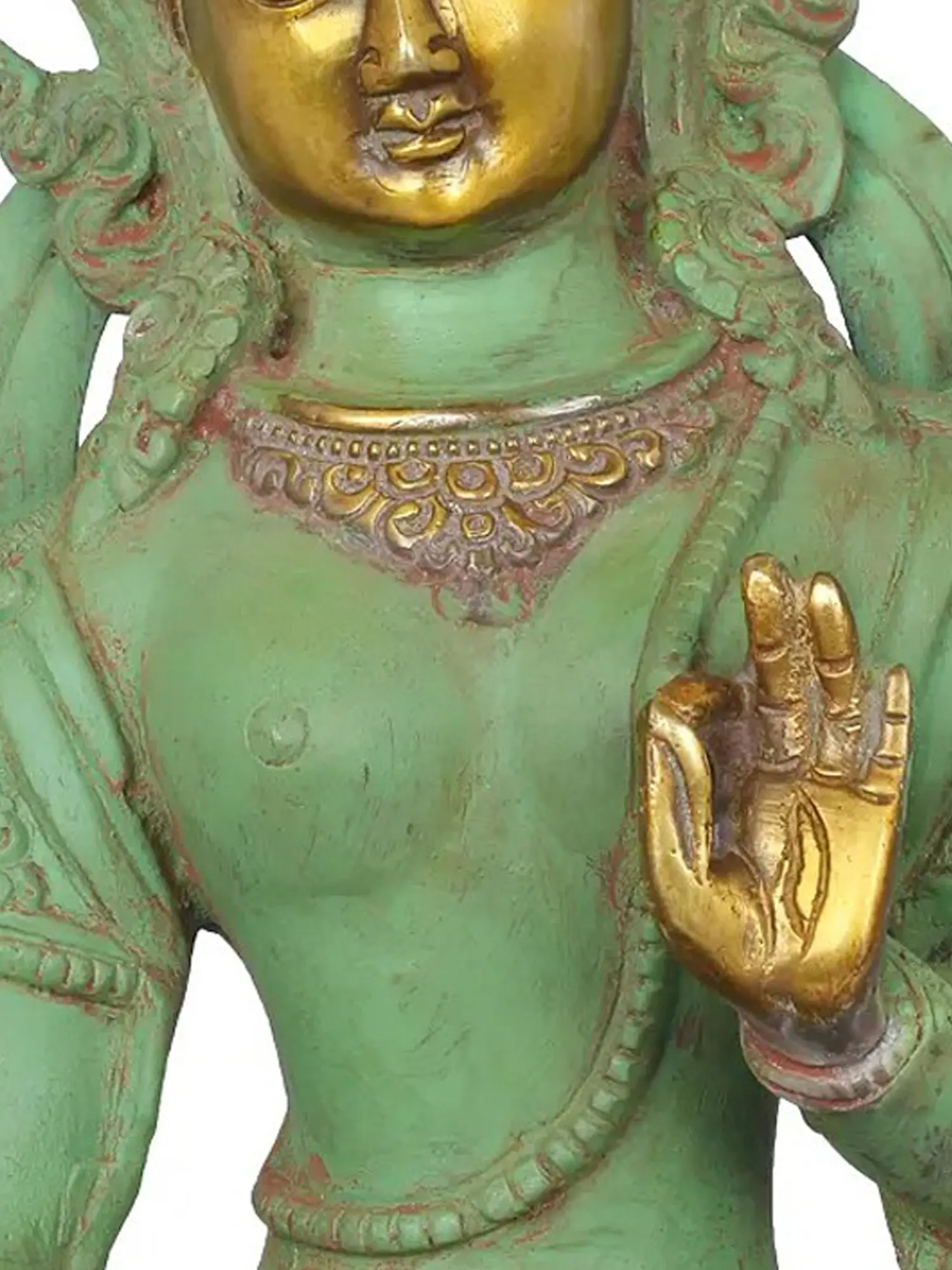 Embrace the tranquillity of Tibetan Buddhist philosophy with this handmade brass statue of White Tara. In Tibetan Buddhism, White Tara is revered as a symbol of compassion, healing, and long life. This beautifully crafted piece, made in India, embodies the essence of Tara's grace and nurturing presence. Display it in your sacred space to invoke her blessings of peace and well-being.