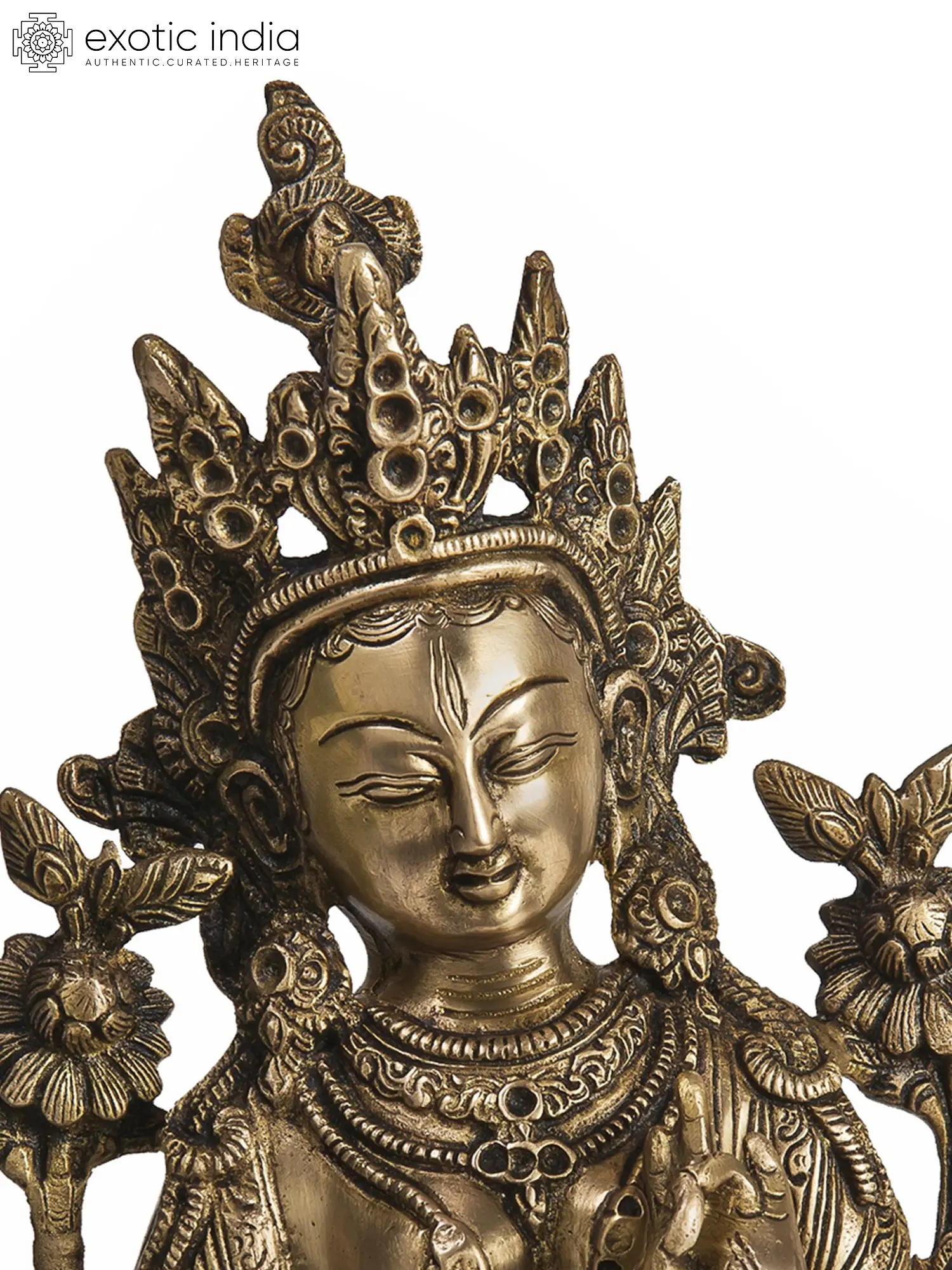 This meticulously crafted brass sculpture depicts White Tara, a revered figure in Tibetan Buddhism known as the goddess of compassion, long life, healing, and serenity. The artistry captures her essence beautifully, offering a tangible connection to her benevolent energy. With her serene expression and graceful posture, she embodies purity, wisdom, and unwavering kindness. Bring the peace and blessings of White Tara into your home or sacred space with this inspiring piece.