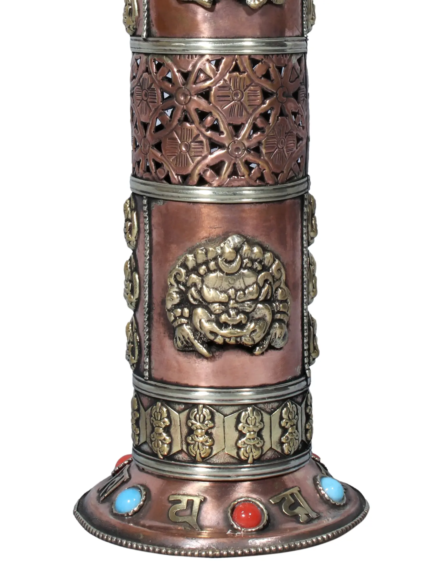 11" Dragon Carved Dorje Incense Burner: Copper, Gold, and Silver Plated