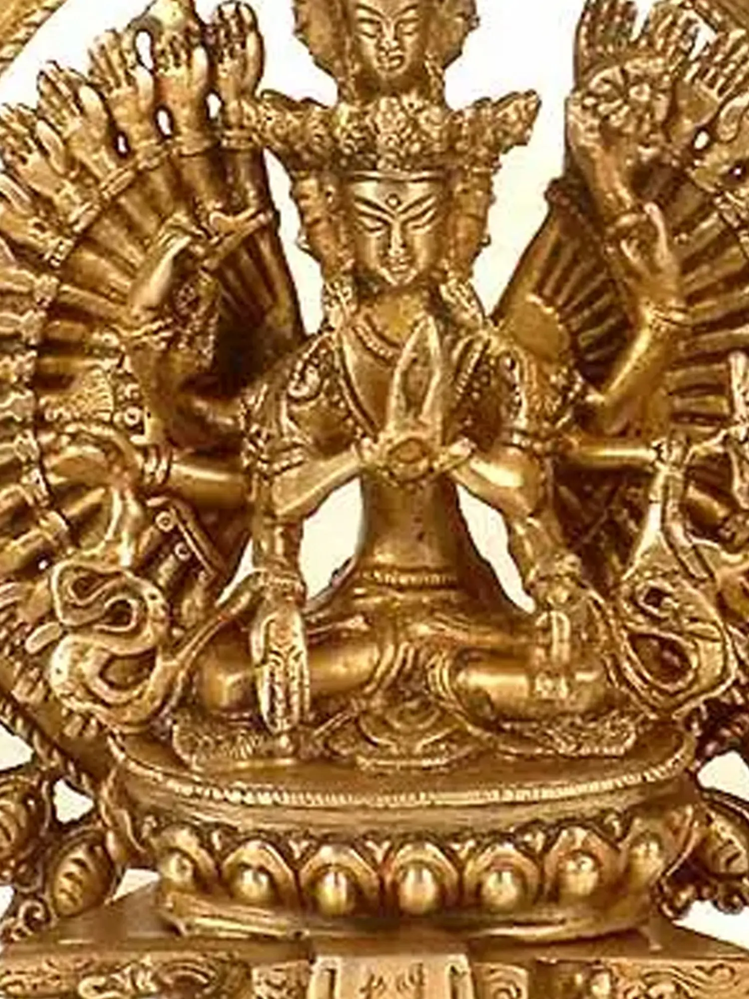 10" Tibetan Buddhist Thousand-Armed Seated Avalokiteshvara In Brass