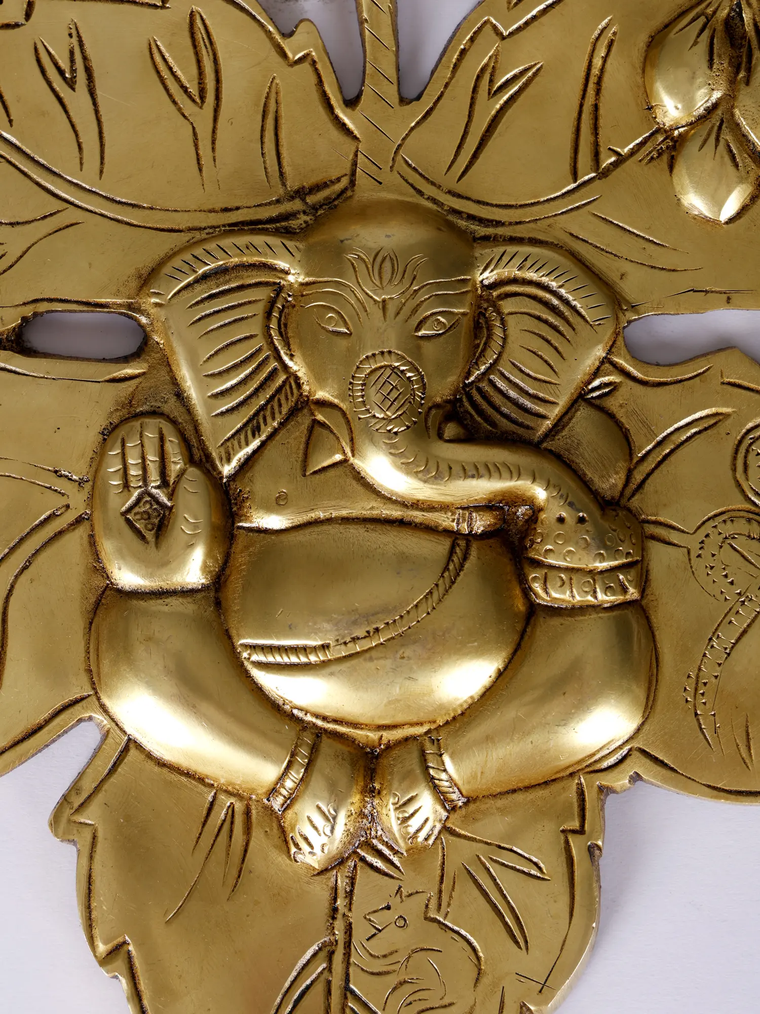 A wall hanging in brass, portraying Lord Ganesha intricately carved from a tree branch, is a captivating fusion of nature and spirituality. Lord Ganesha, the remover of obstacles, finds form within the organic contours of the tree branch, showcasing his profound connection to the natural world. This unique piece of art embodies the harmony between divinity and the environment, making it a delightful addition to spaces seeking both aesthetic appeal and spiritual significance. It serves as a reminder of the unity between the sacred and the natural, celebrating Ganesha's role as the harbinger of blessings and new beginnings.