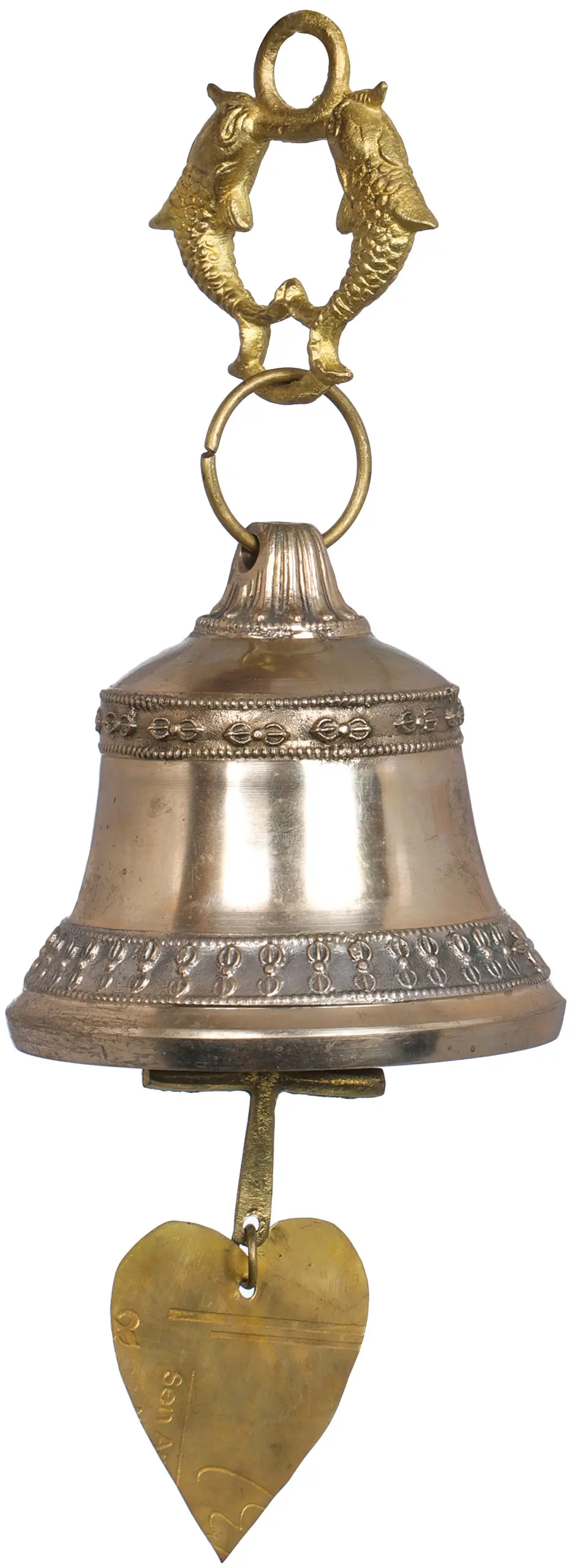 10" Twin Fishes Tibetan Buddhist Hanging Bell with Leaf In Brass | Handmade | Made In India