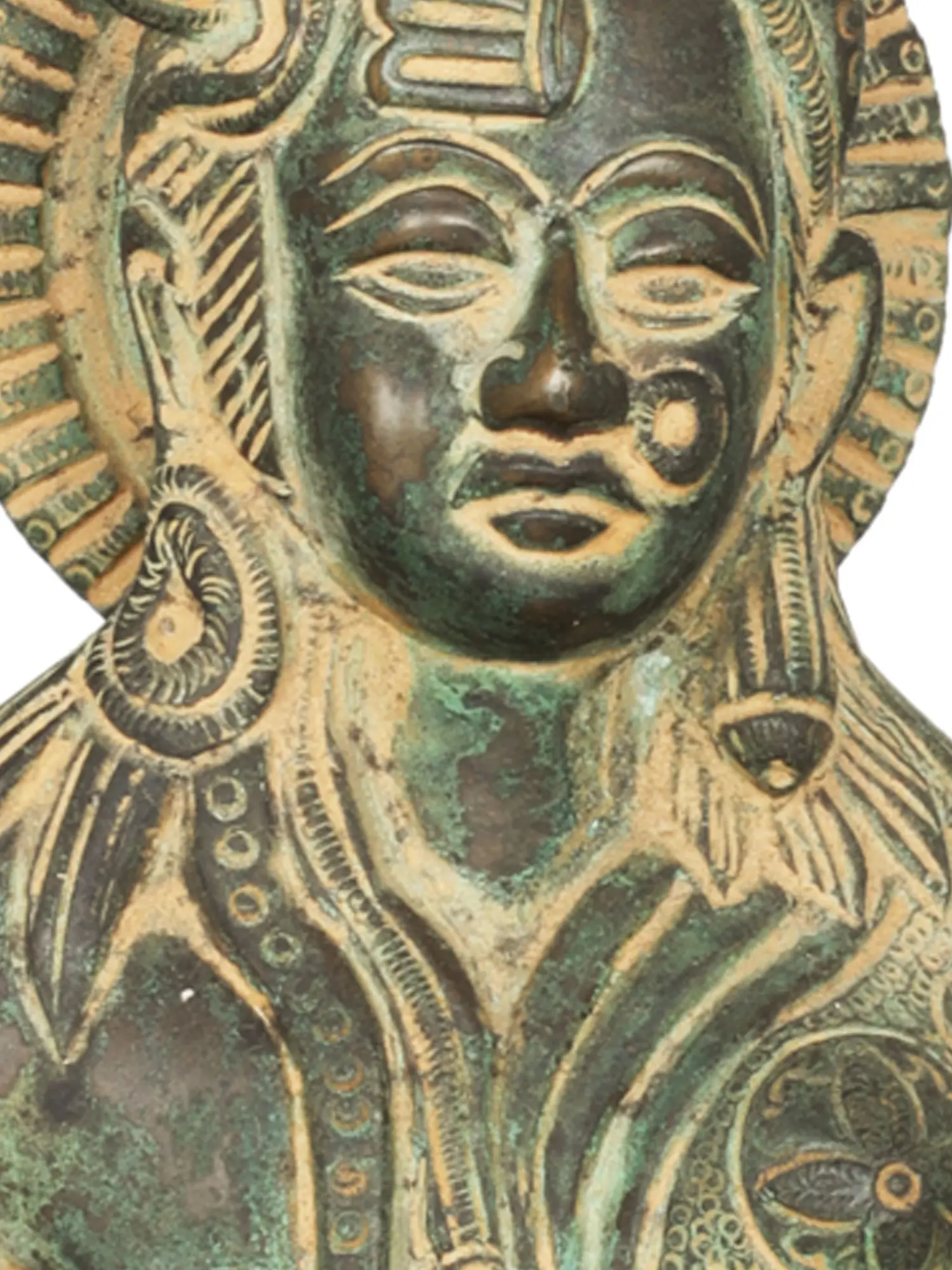 Crafted from brass, a metal traditionally associated with divine figures and auspiciousness, this statue possesses a timeless appeal. The patina acquired over time adds to its character and visual depth, hinting at the stories and devotion it has witnessed. The "twin-hued" aspect likely refers to the subtle variations in the brass's color, brought about by the casting and finishing process, which enhance the dimensionality and spiritual aura of the deity. Each element, from the serene expression to the posture and the symbolic regalia, has been meticulously shaped by hand by skilled artisans in India, carrying forward centuries of artistic heritage. This handmade quality ensures that each piece is unique, imbued with the spirit of its maker and the sacred traditions it represents. This Ardhanarishvara statue is not merely an object of art but a powerful conduit for spiritual reflection, a tangible representation of the divine union that sustains the universe, and a testament to the enduring artistry of India.