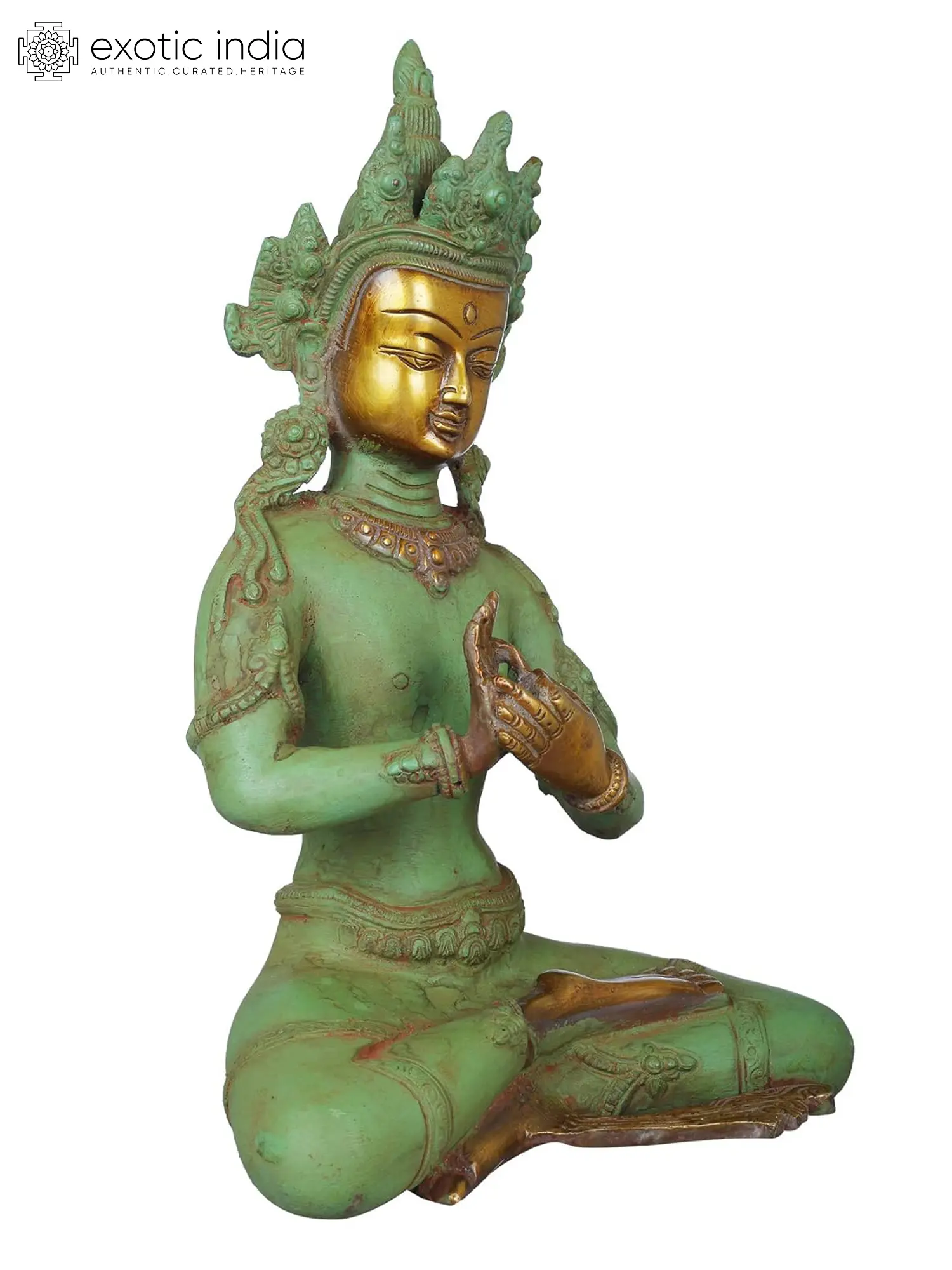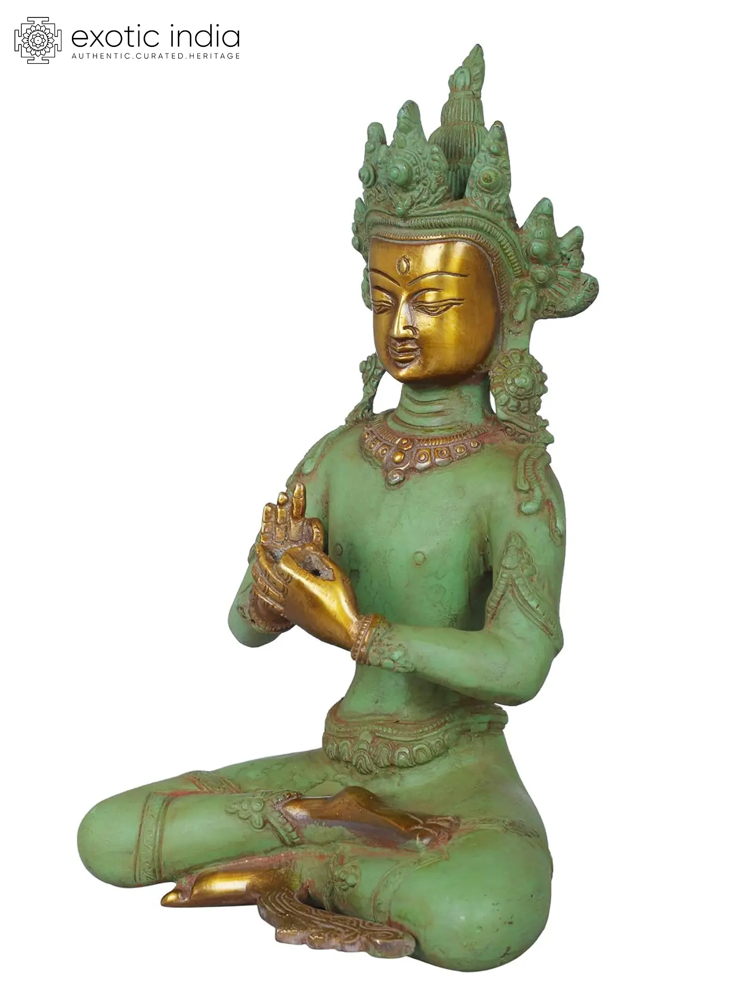 Adorned with intricate details and adorned with sacred motifs, this brass statue captures the essence of Vairocana’s boundless compassion and illuminating presence. His serene expression and poised demeanor excuse a sense of inner peace and tranquility, inspiring all who gaze upon him to embark on their journey of spiritual awakening.